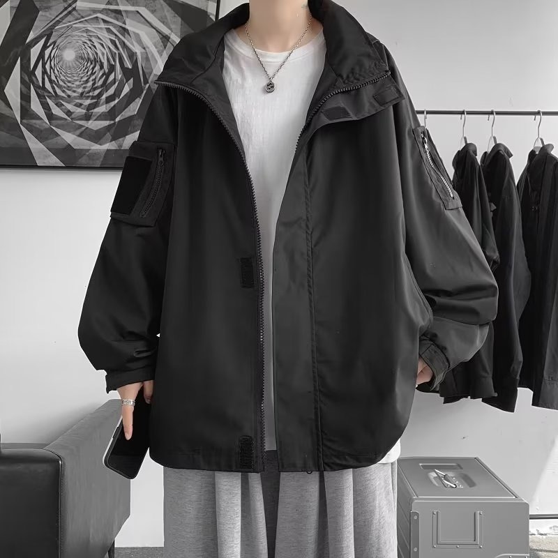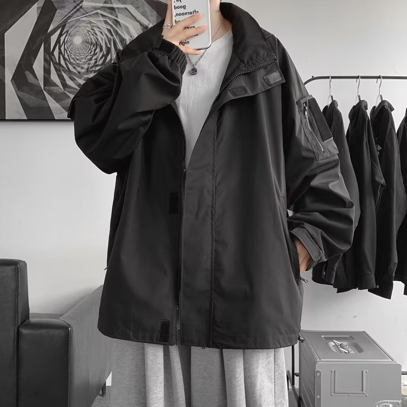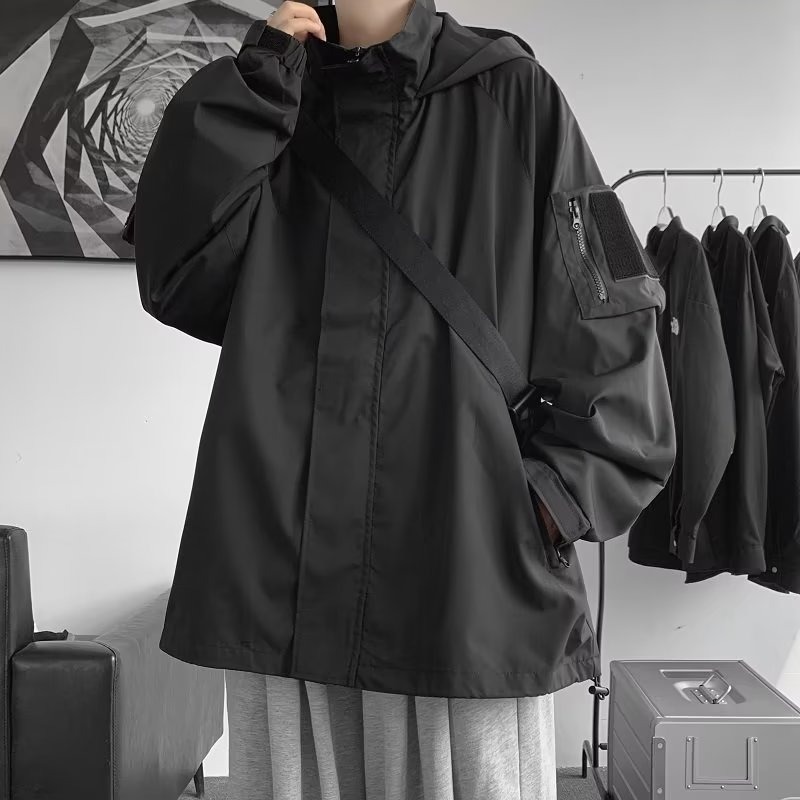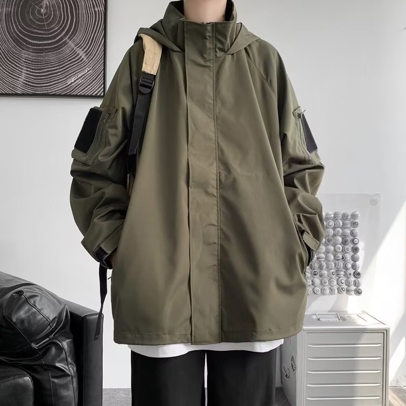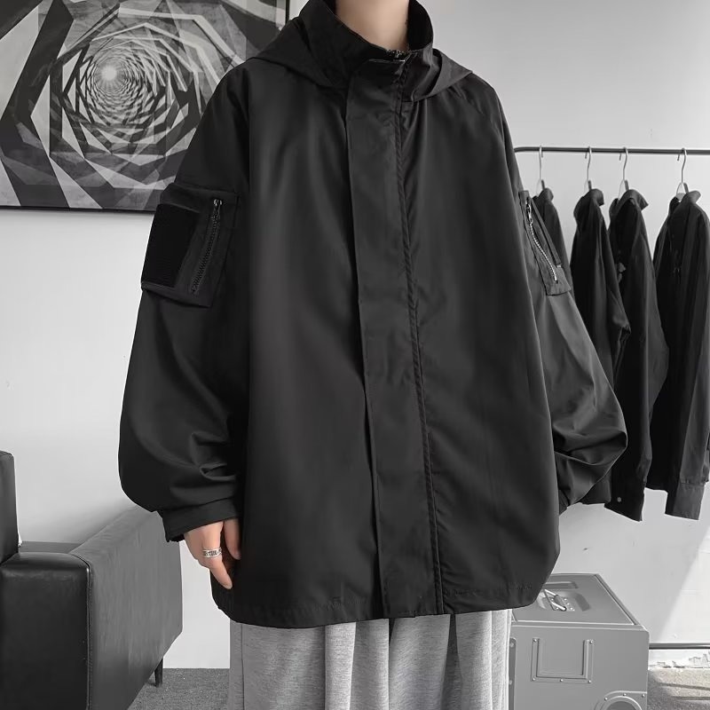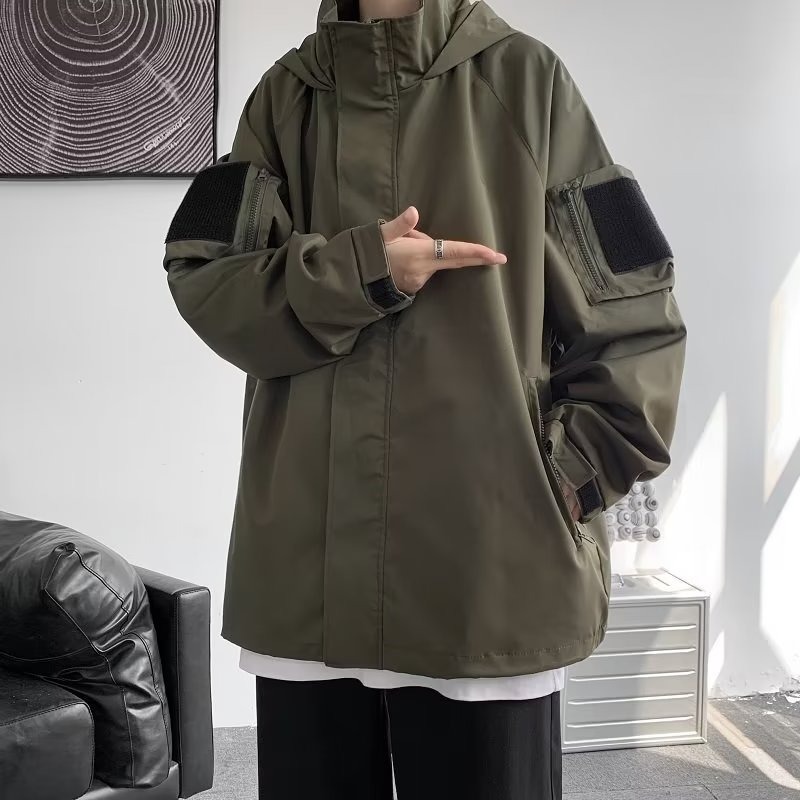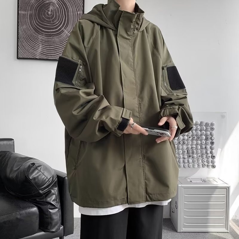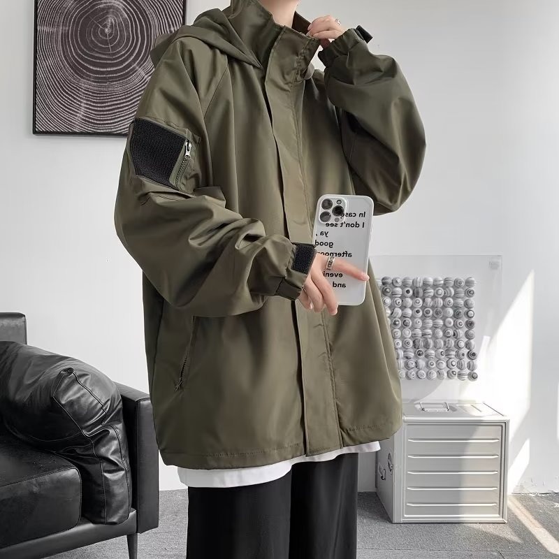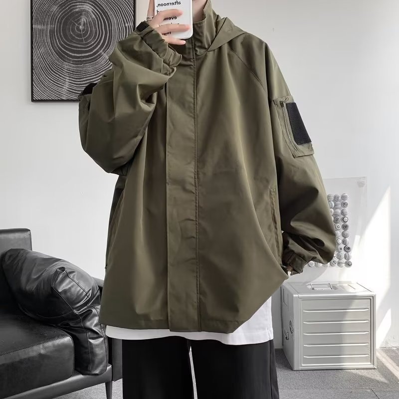 봄과 가을 벨크로 후드 자켓 남성 자켓 트렌디 브랜드 루즈 캐주얼 의류 남성용 학생 작업복 자켓스토어 가기