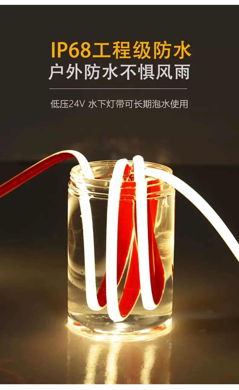 Cob 방수 24V 야외 안뜰 야외 분위기 수중 조명 스트립 수영장 물고기 연못 계단 단계 접착제 IP68