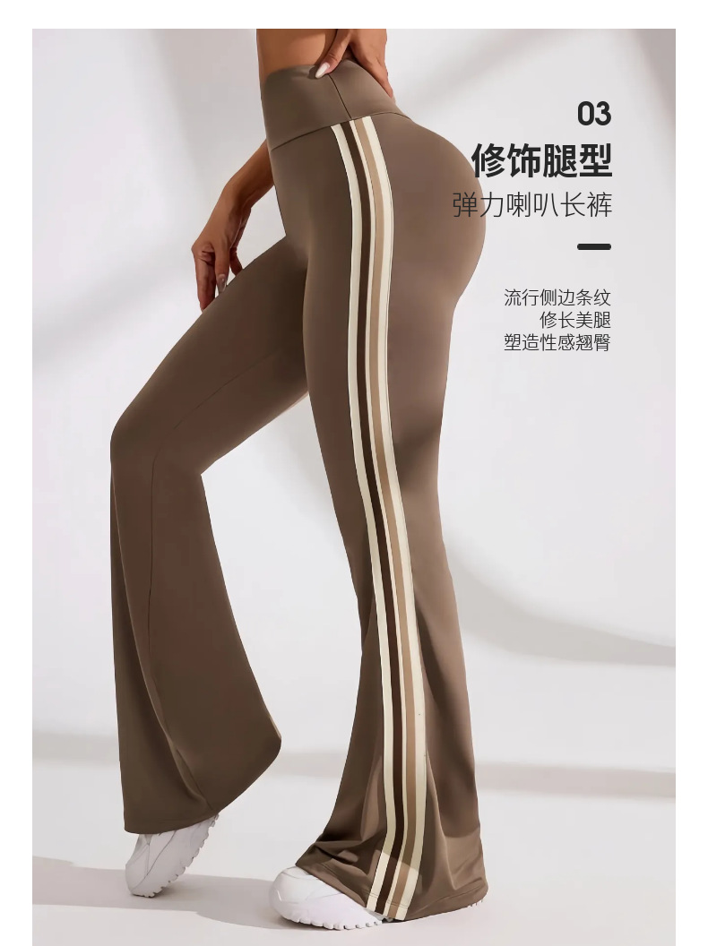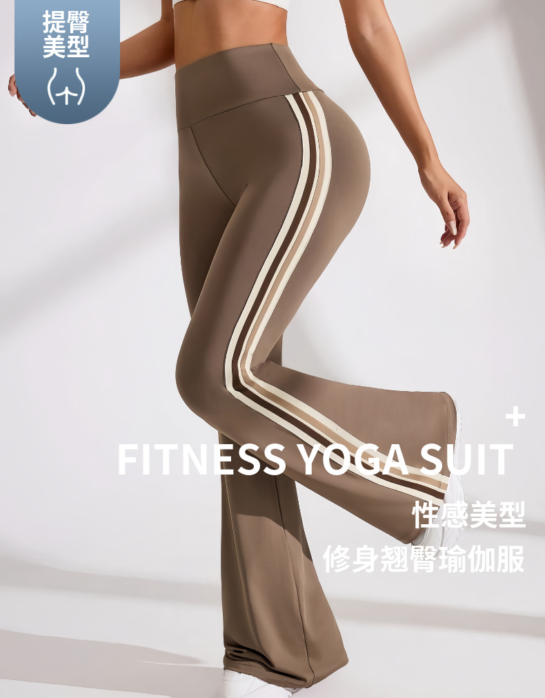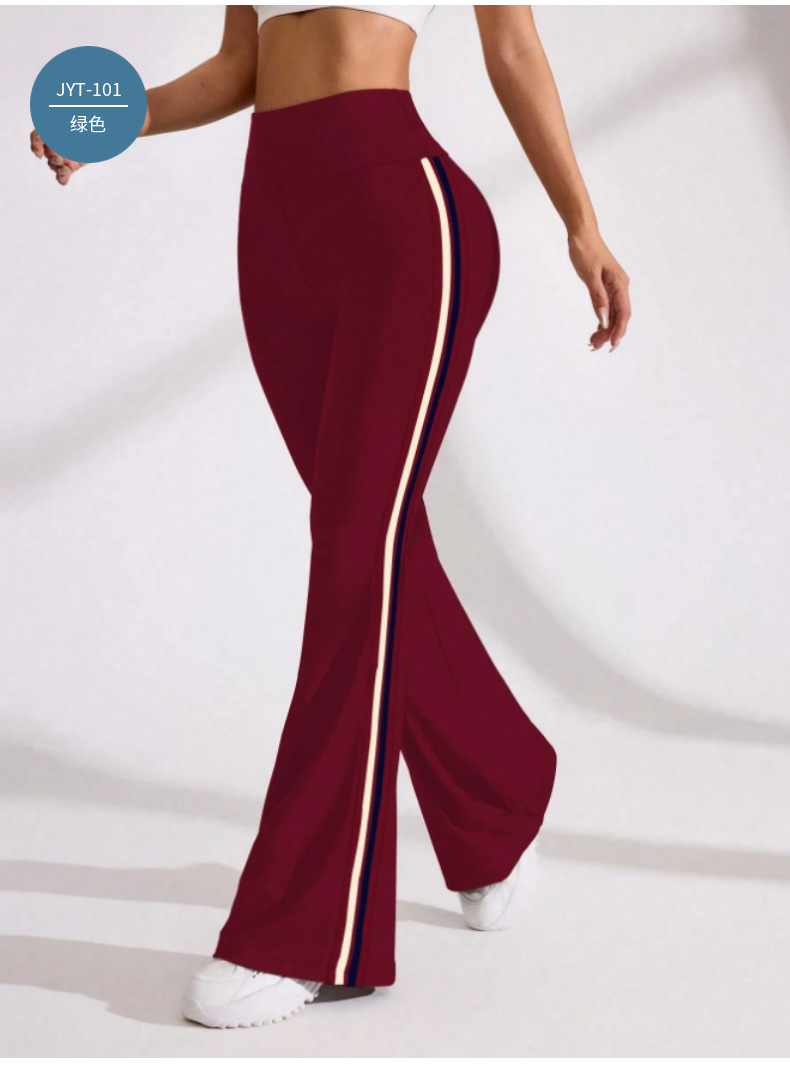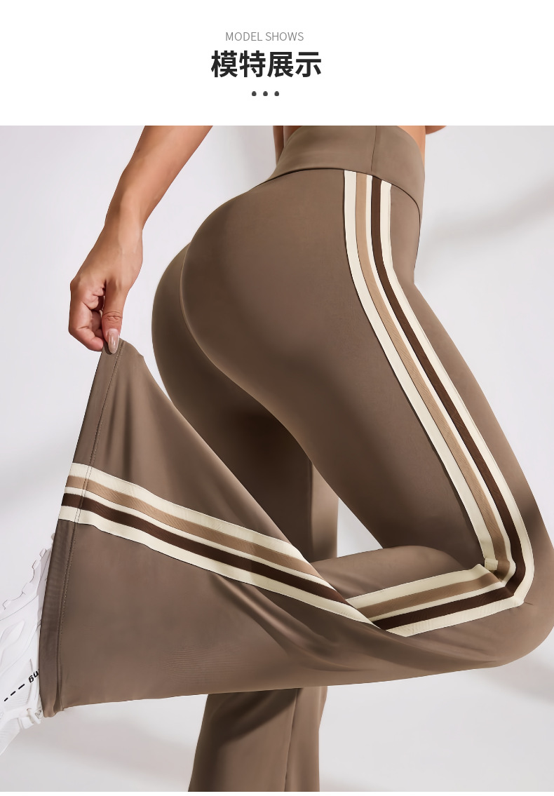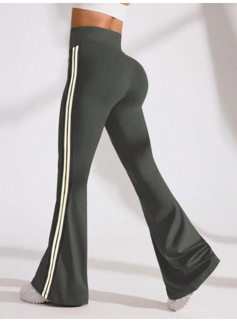 국경을 넘나드는 새로운 캐주얼 마이크로 플레어 요가 팬츠, 하이 웨이스트, 신축성 있는 필라테스 스포츠, 복부 조절, 다리 길이, 속건성 플레어 팬츠