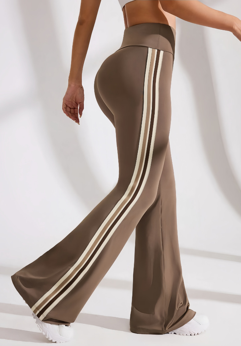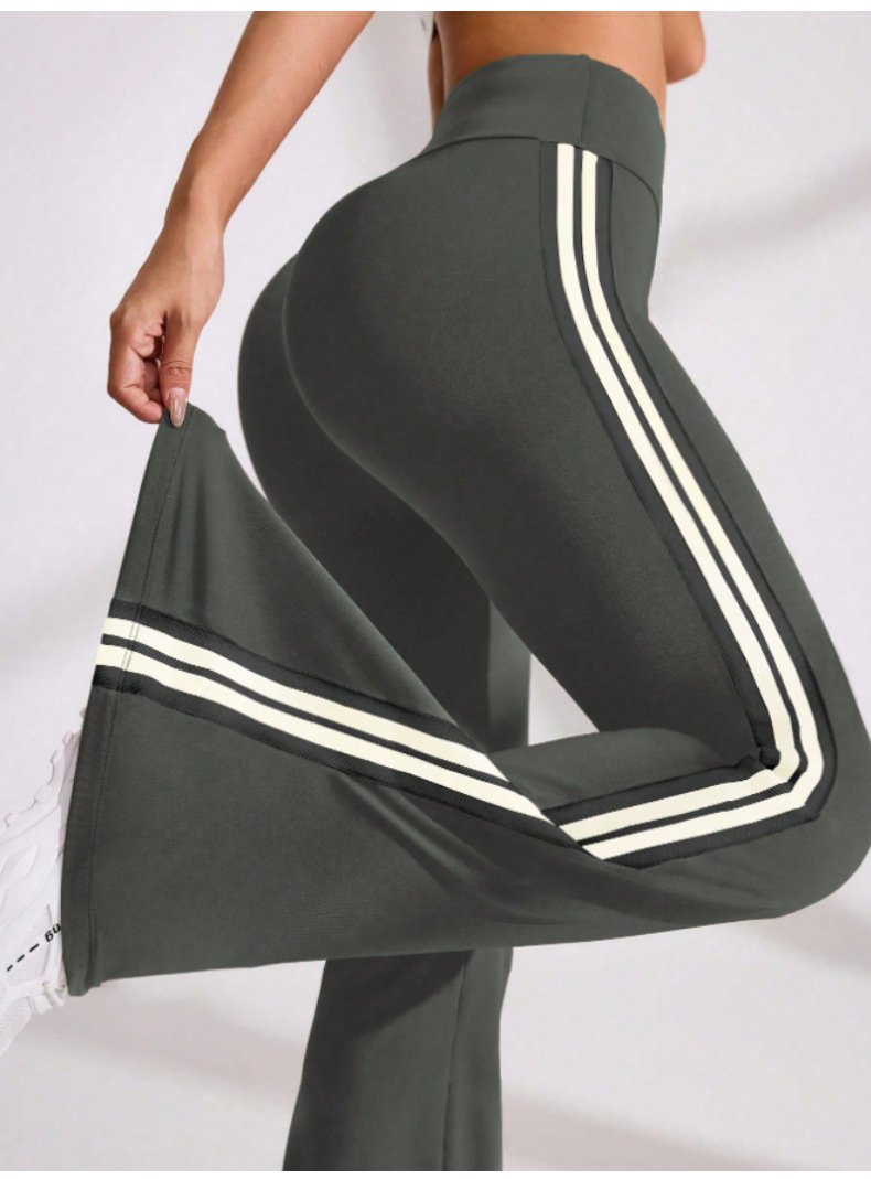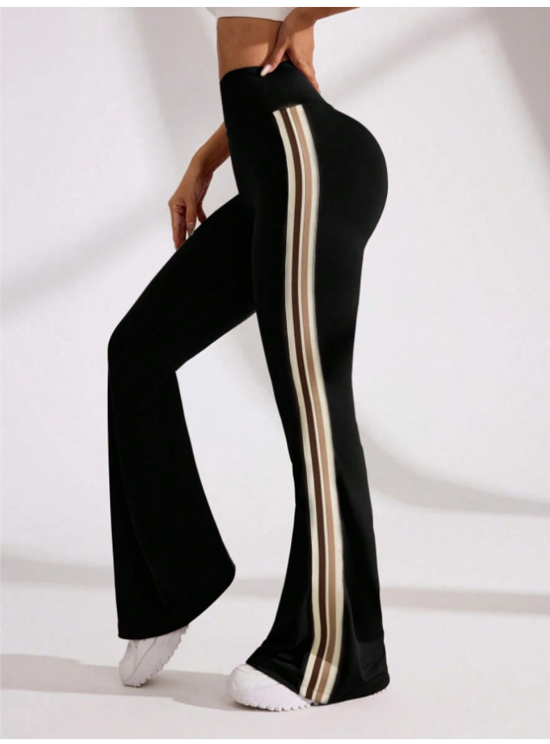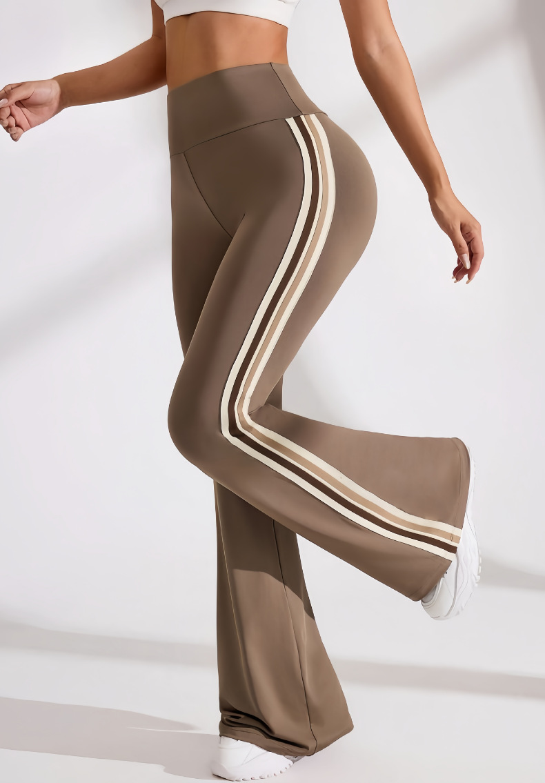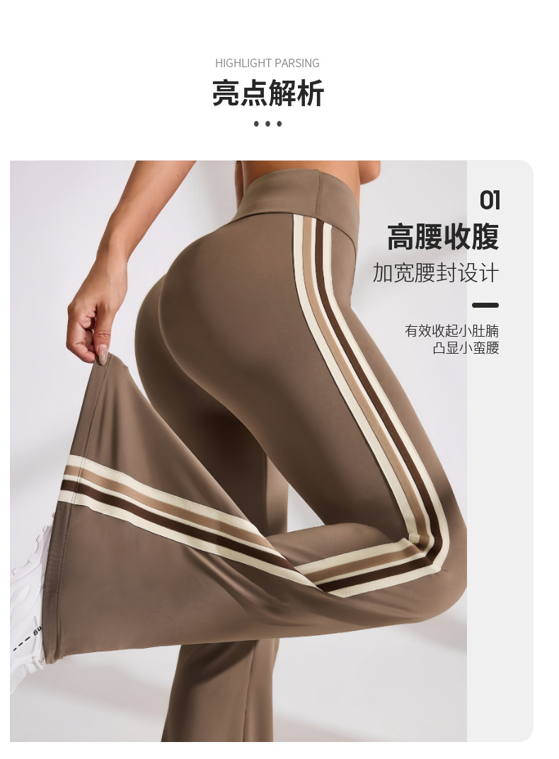 국경을 넘나드는 새로운 캐주얼 마이크로 플레어 요가 팬츠, 하이 웨이스트, 신축성 있는 필라테스 스포츠, 복부 조절, 다리 길이, 속건성 플레어 팬츠
