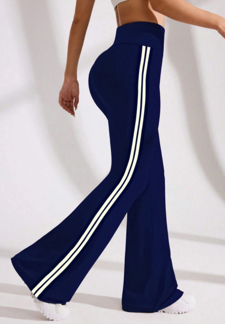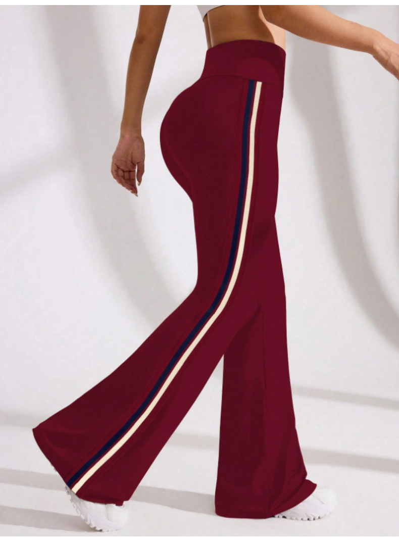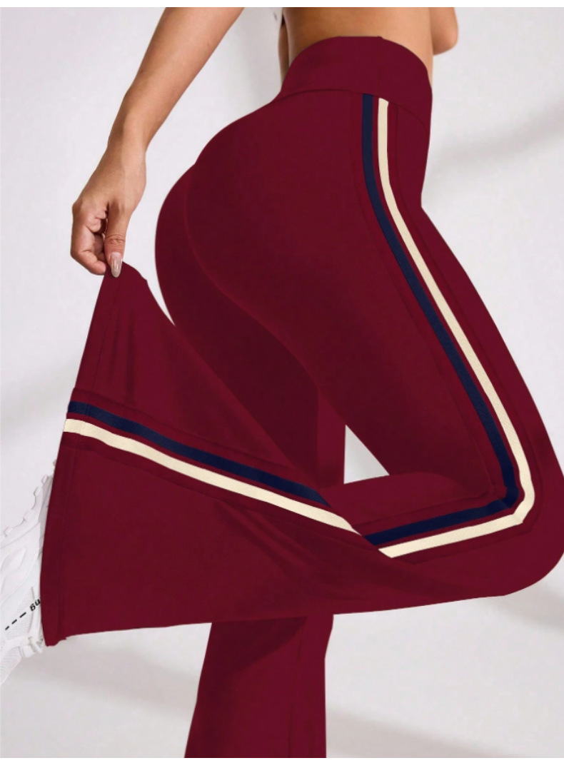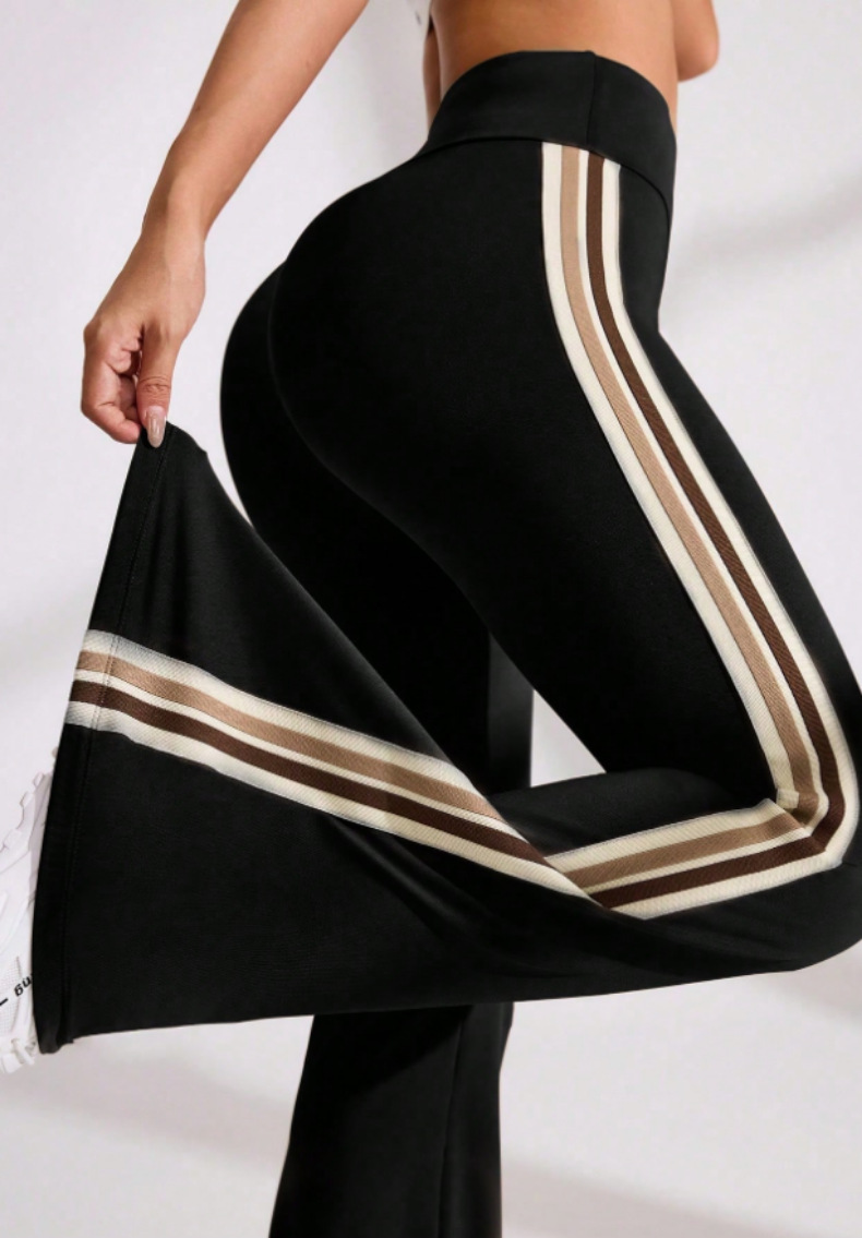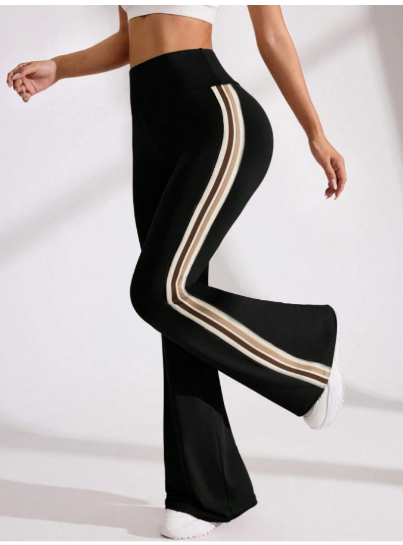 국경을 넘나드는 새로운 캐주얼 마이크로 플레어 요가 팬츠, 하이 웨이스트, 신축성 있는 필라테스 스포츠, 복부 조절, 다리 길이, 속건성 플레어 팬츠