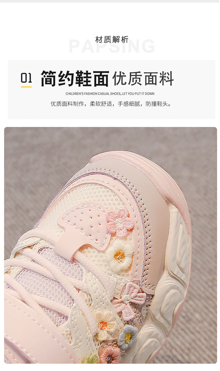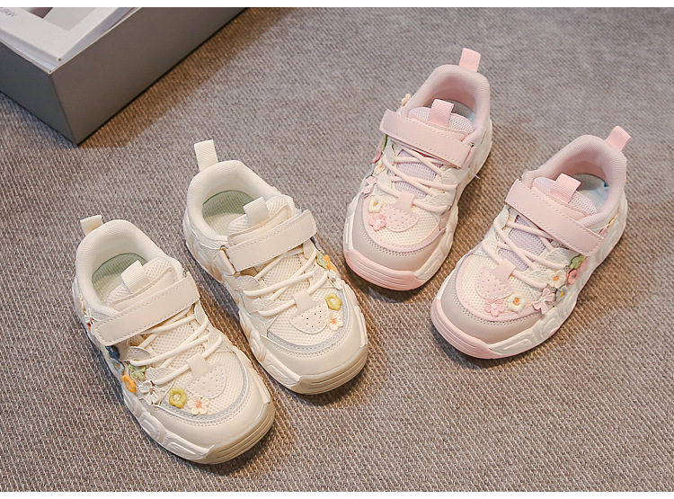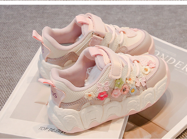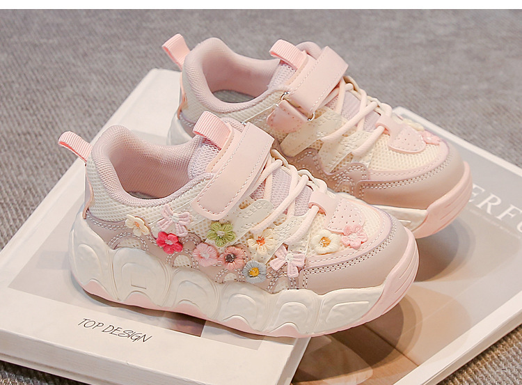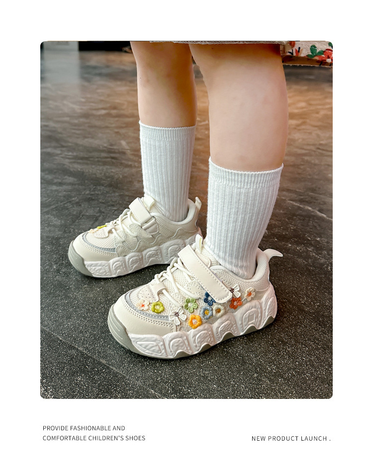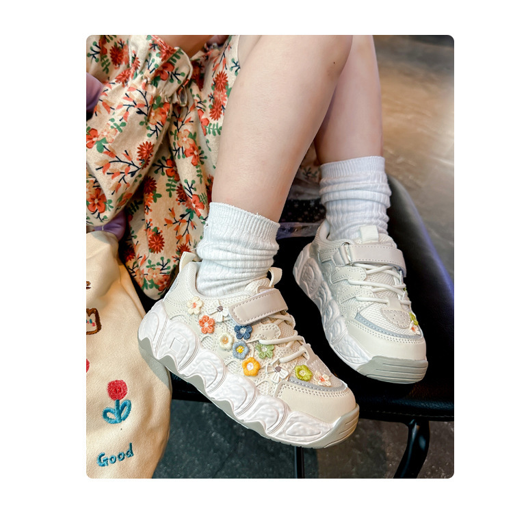 2025 봄 신작 아빠 신발 어린 소녀 꽃 장식 스포츠 캐주얼 신발 한국 스타일 패션 다재다능한 소녀스토어 가기