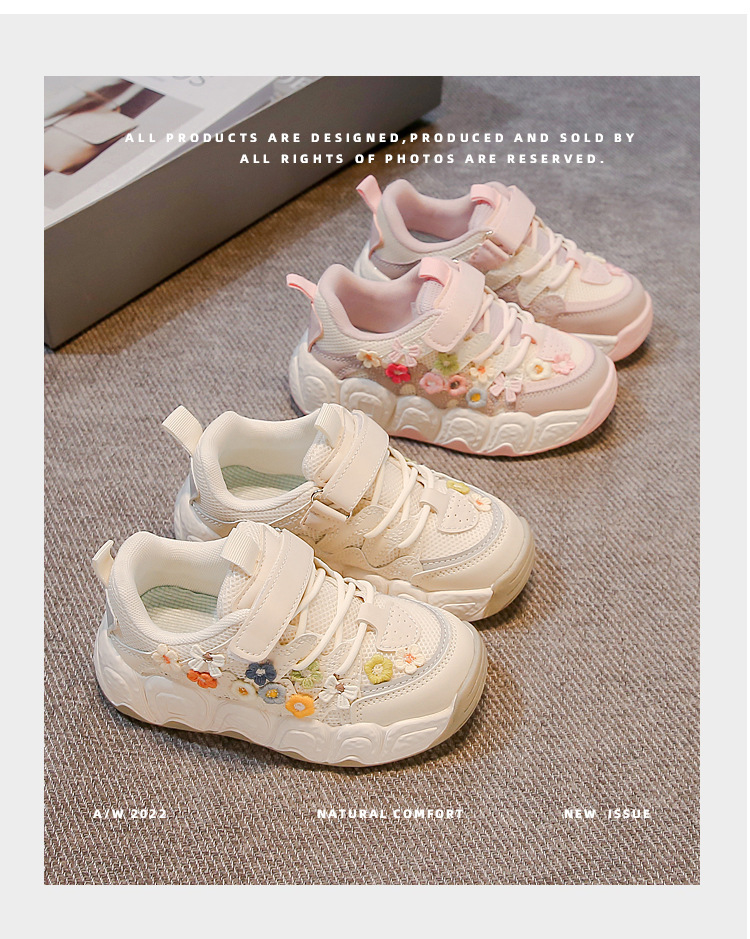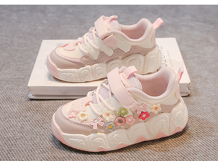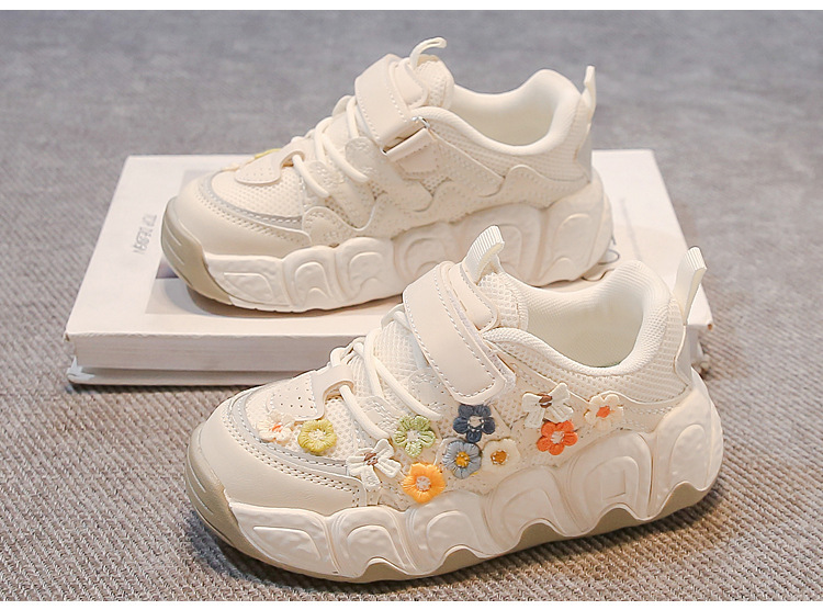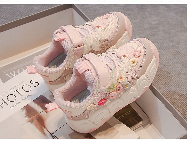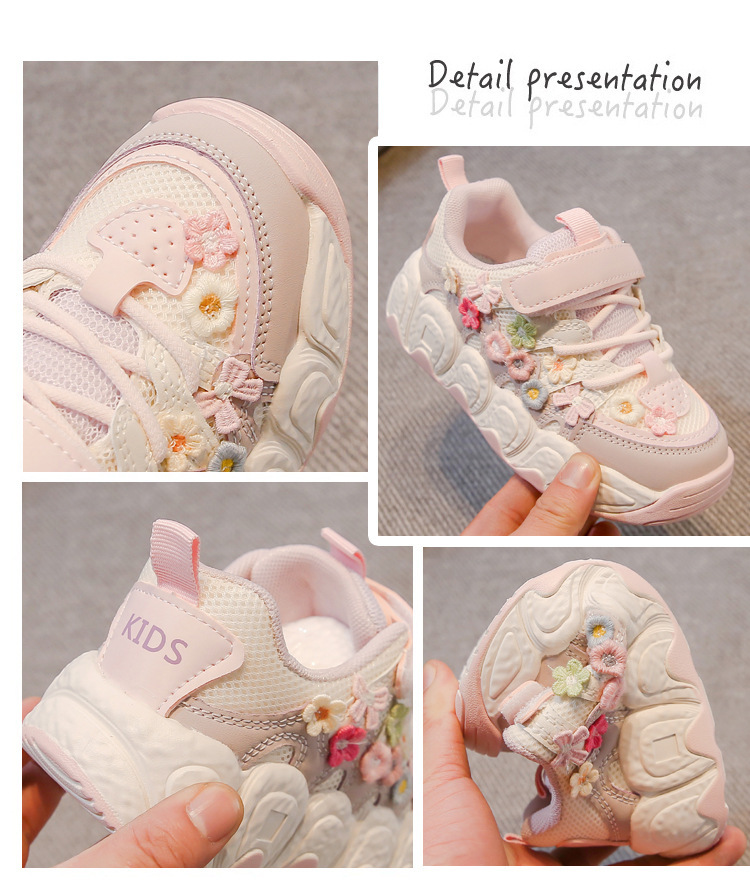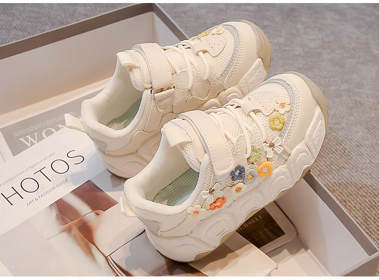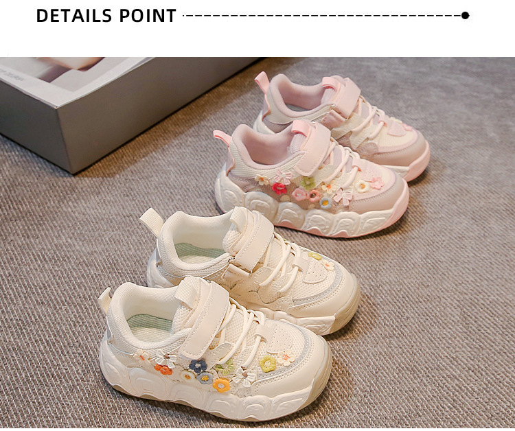 2025 봄 신작 아빠 신발 어린 소녀 꽃 장식 스포츠 캐주얼 신발 한국 스타일 패션 다재다능한 소녀스토어 가기