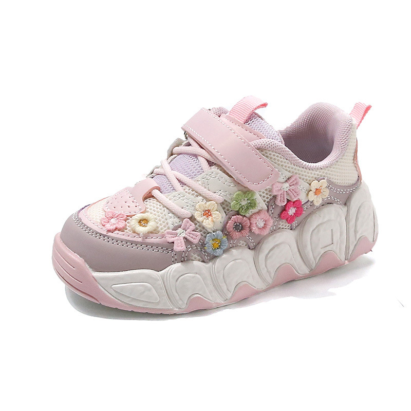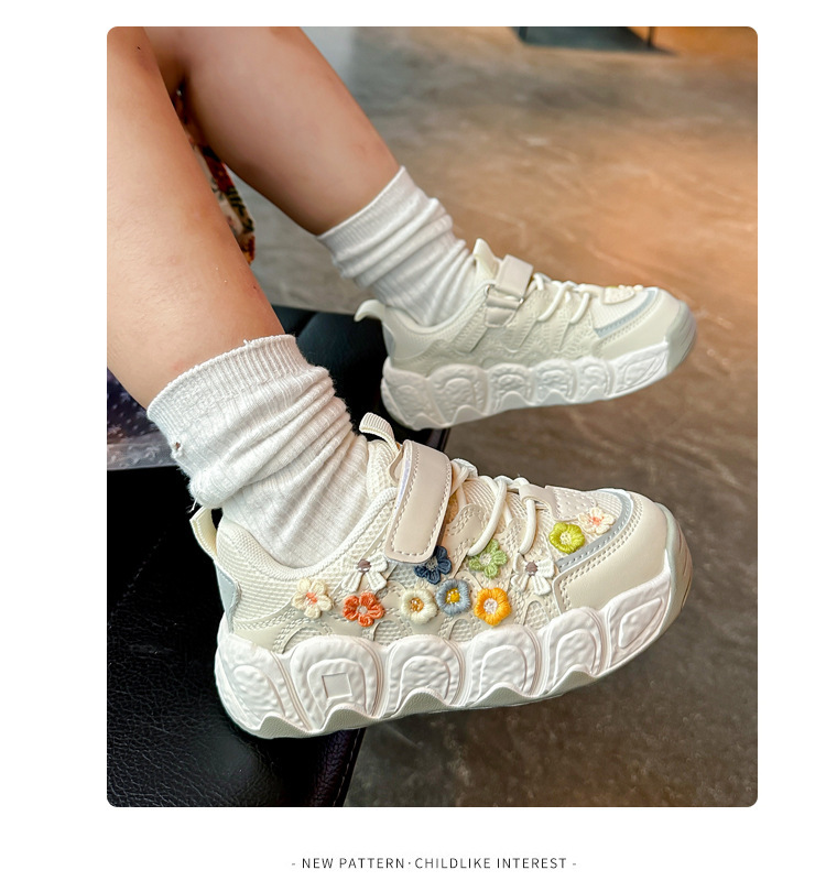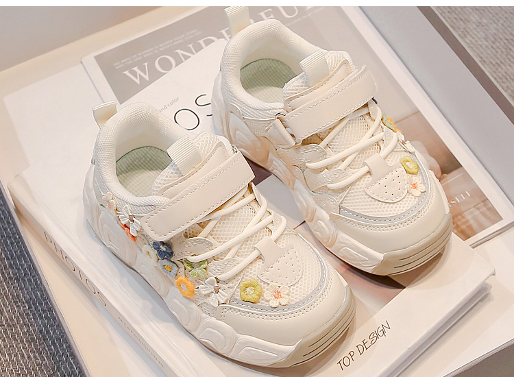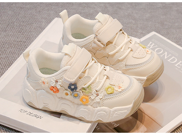 2025 봄 신작 아빠 신발 어린 소녀 꽃 장식 스포츠 캐주얼 신발 한국 스타일 패션 다재다능한 소녀