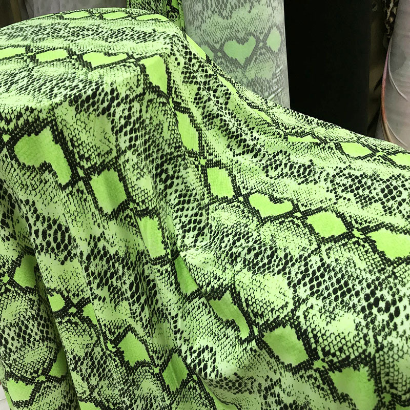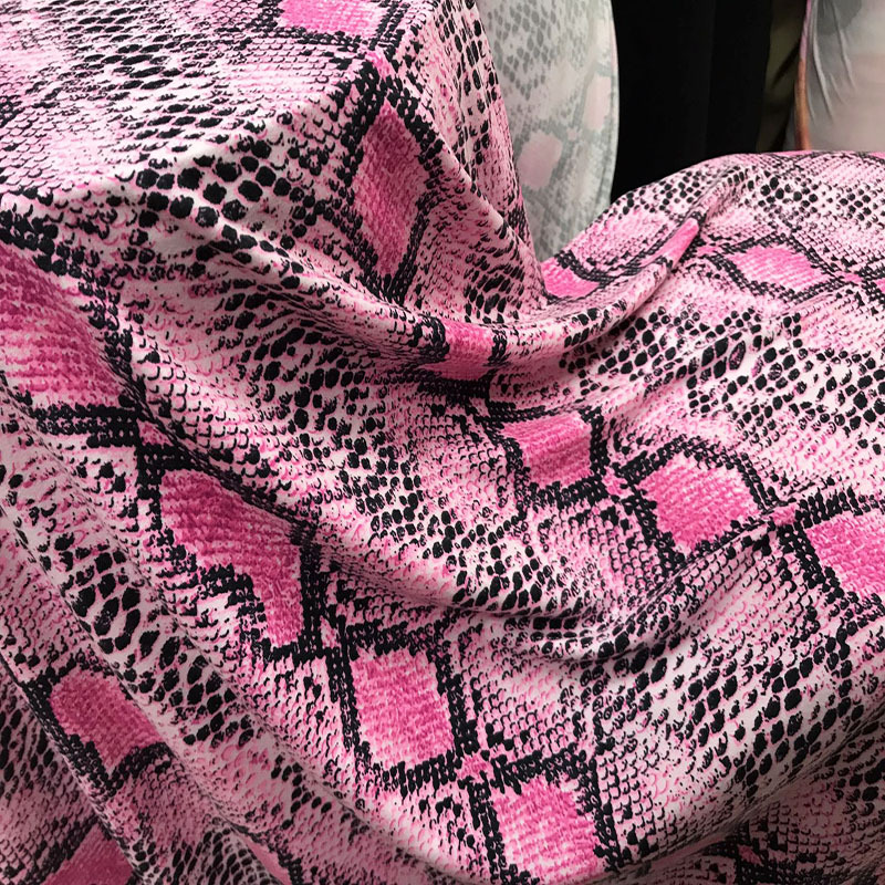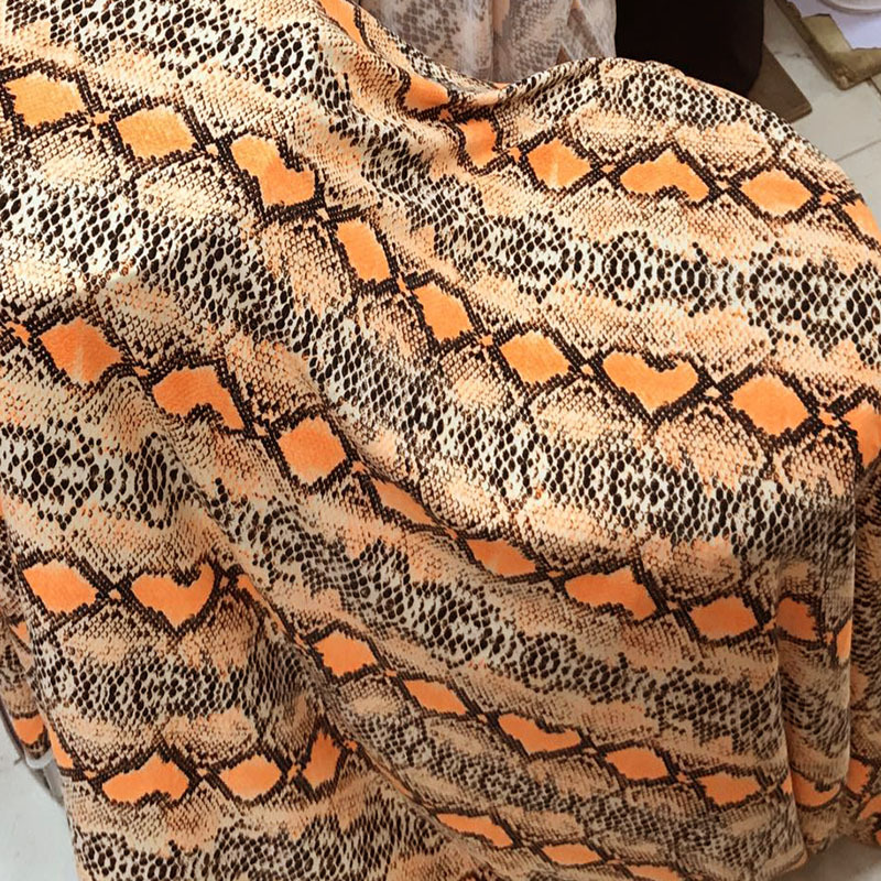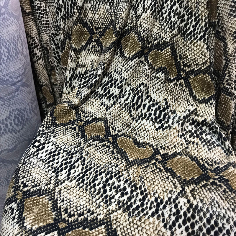 니트 뱀 패턴 인쇄 우유 실크 직물 4 방향 대형 스트레치 요가 레깅스 라틴 댄스 직물 도매스토어 가기