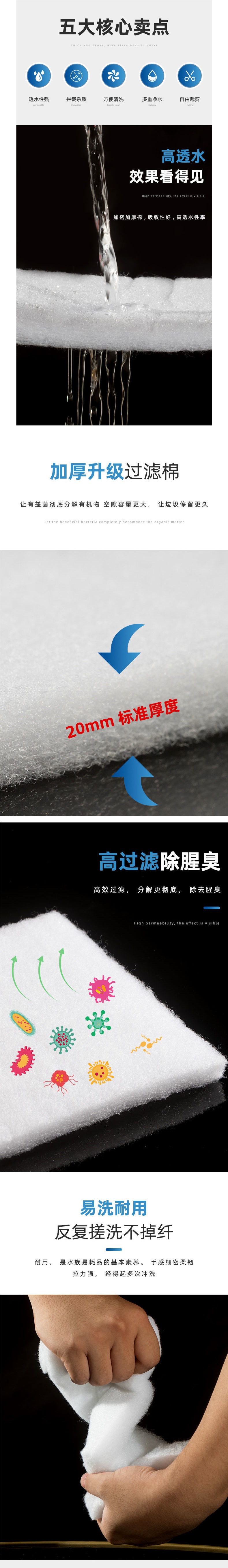 물고기 탱크 필터 면화 정화 재료 고밀도 흰색 스폰지 수족관 필터 수질 생화학