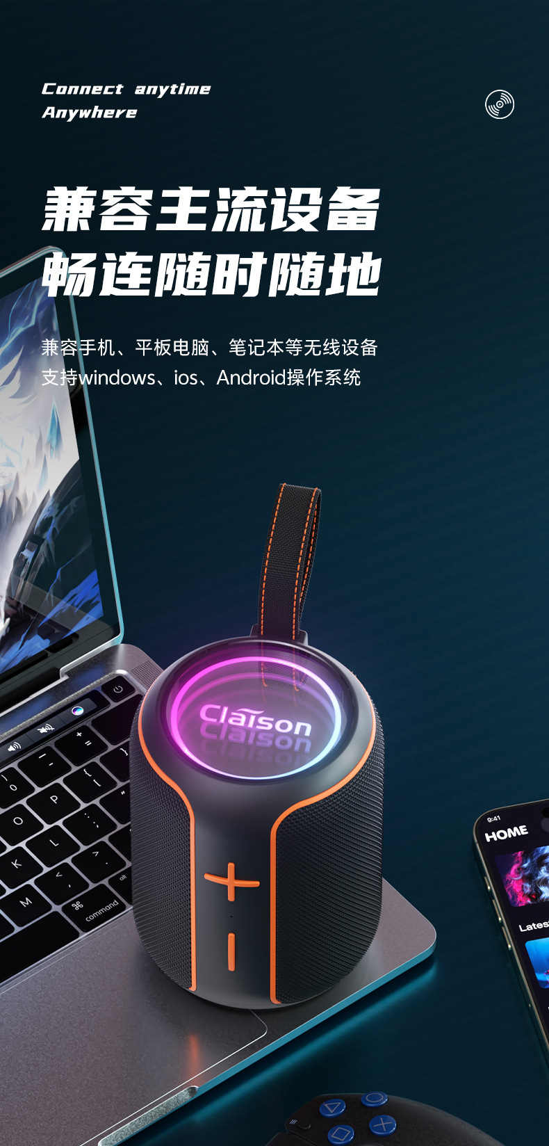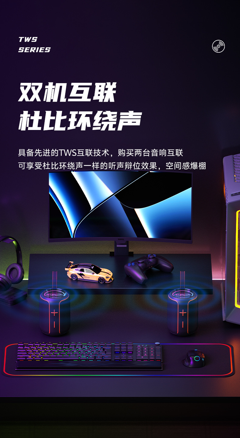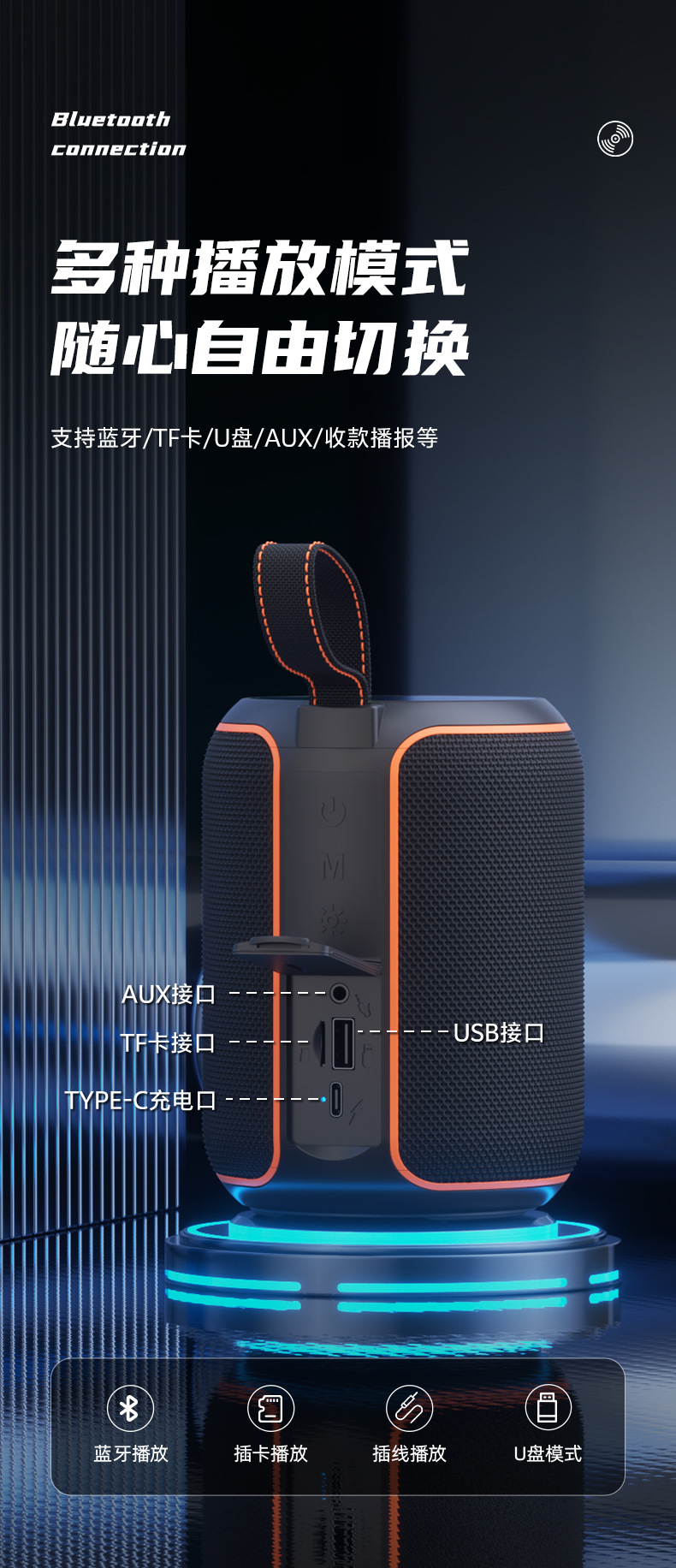 야외 휴대용 무선 블루투스 방수 스피커 오로라 분위기 조명 TWS 선물 중저음 강화 휴대용 스피커스토어 가기