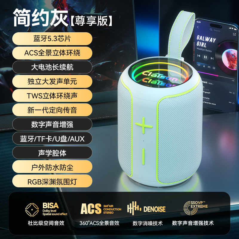 야외 휴대용 무선 블루투스 방수 스피커 오로라 분위기 조명 TWS 선물 중저음 강화 휴대용 스피커