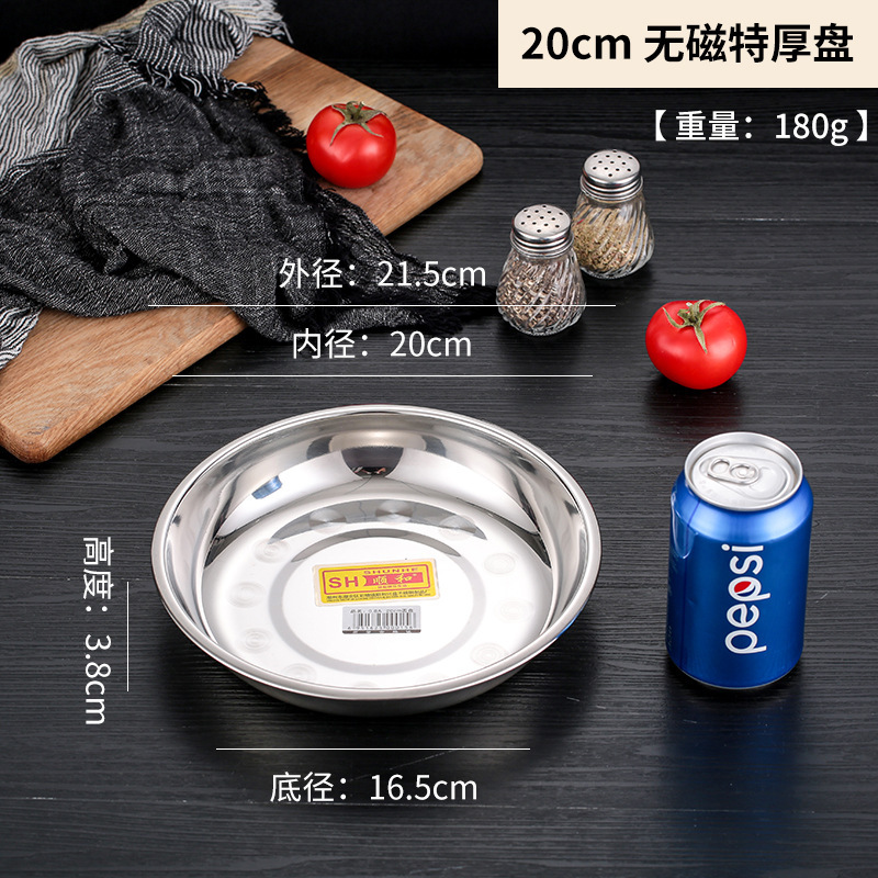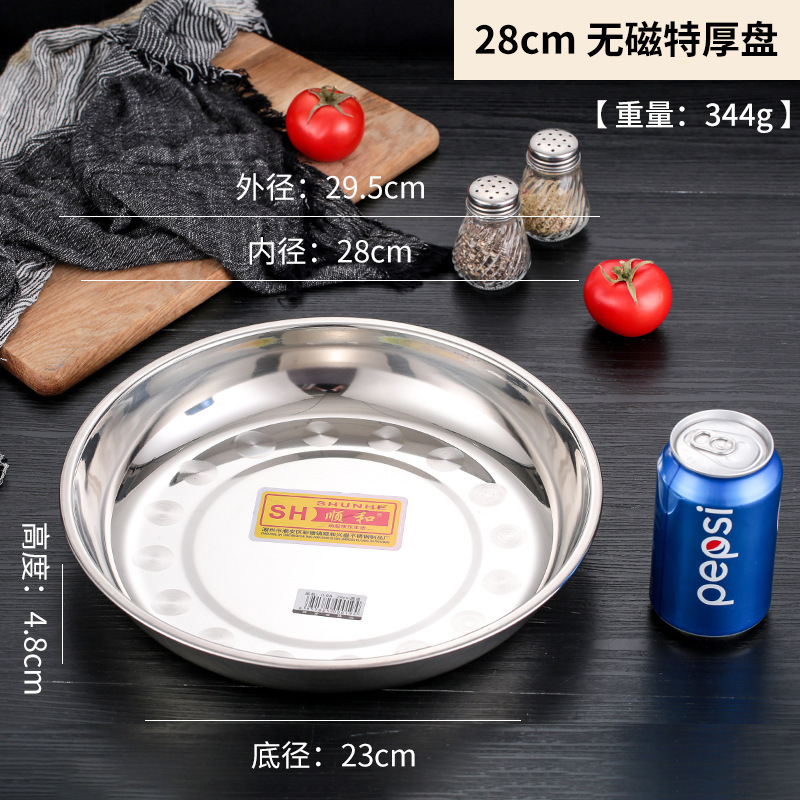 Shunhe 1.2cm 두꺼운 스테인레스 스틸 접시 둥근 대형 접시 얕은 접시 바베큐 접시 작은 접시 가정용 상업용 접시스토어 가기