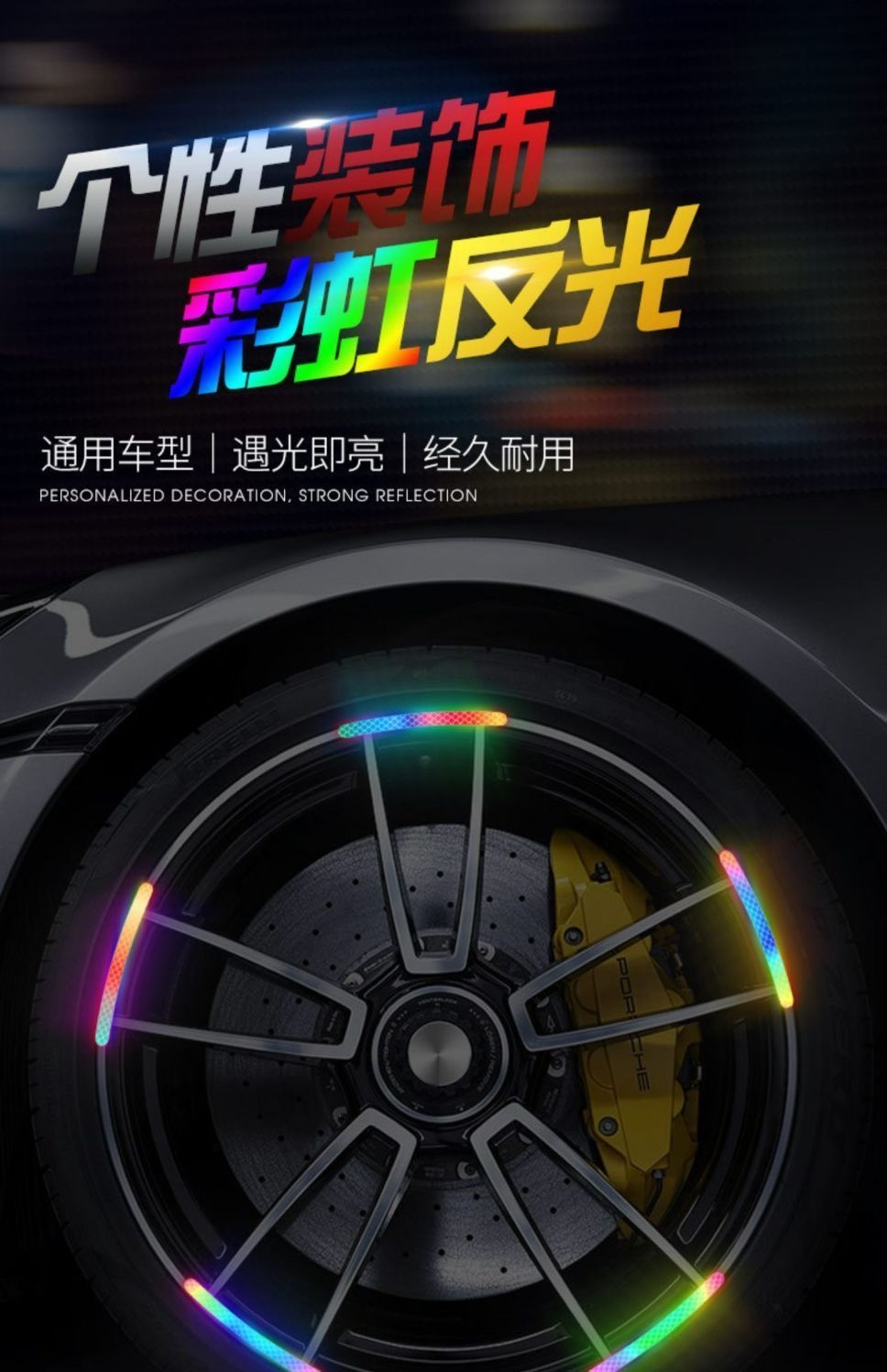 경고 스티커 만화 맞춤형 타이어 전기 자동차 액세서리 휠 허브 반사 스티커 자동차 자전거 반사 경고 스티커스토어 가기