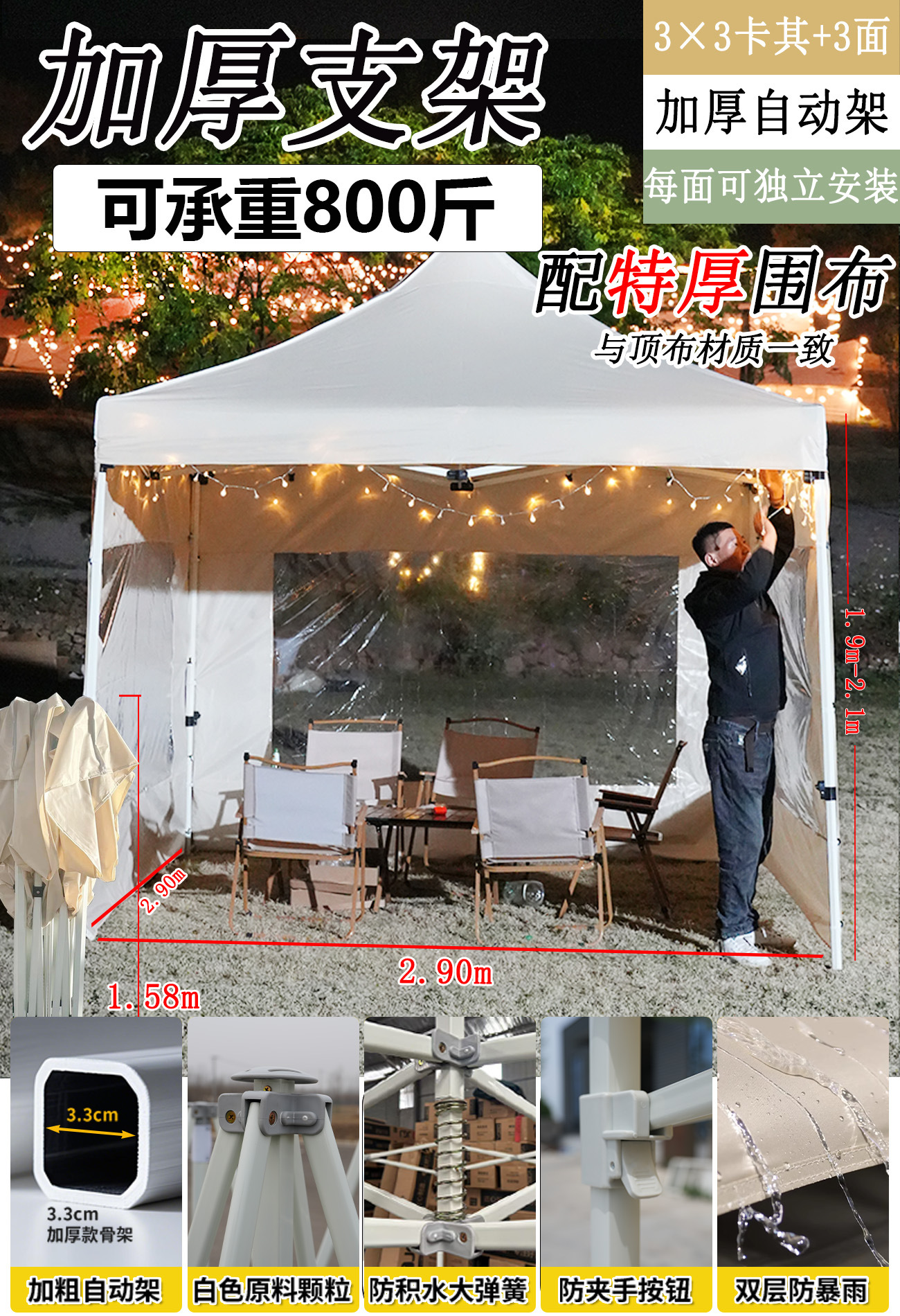 • 대형 육각형 4면 천 - 레드/블루/카키 3가지 색상 가능, 주문 시 색상을 참고하세요. [기본 카키색]