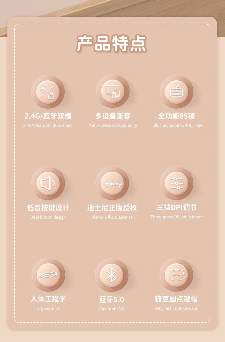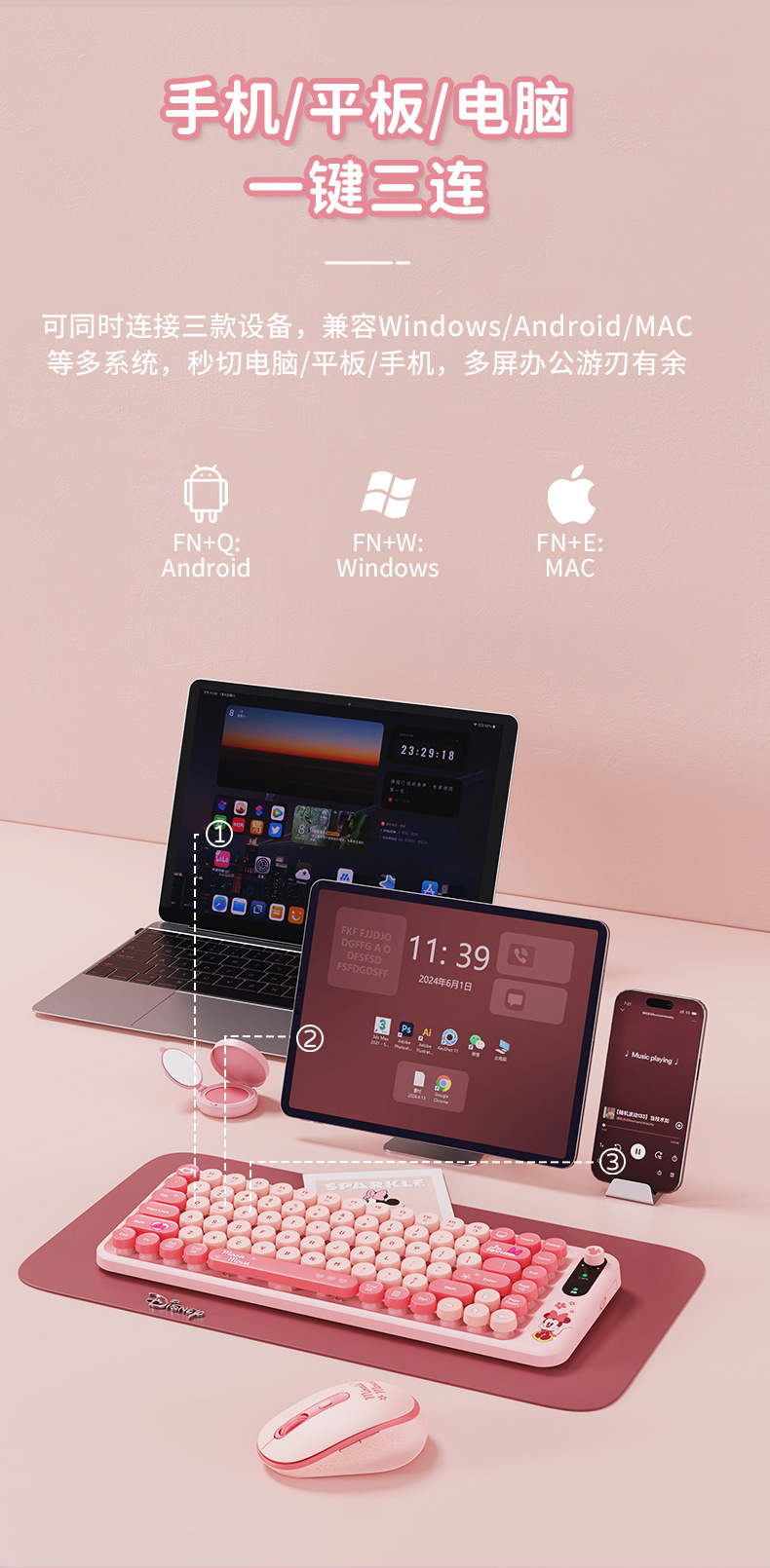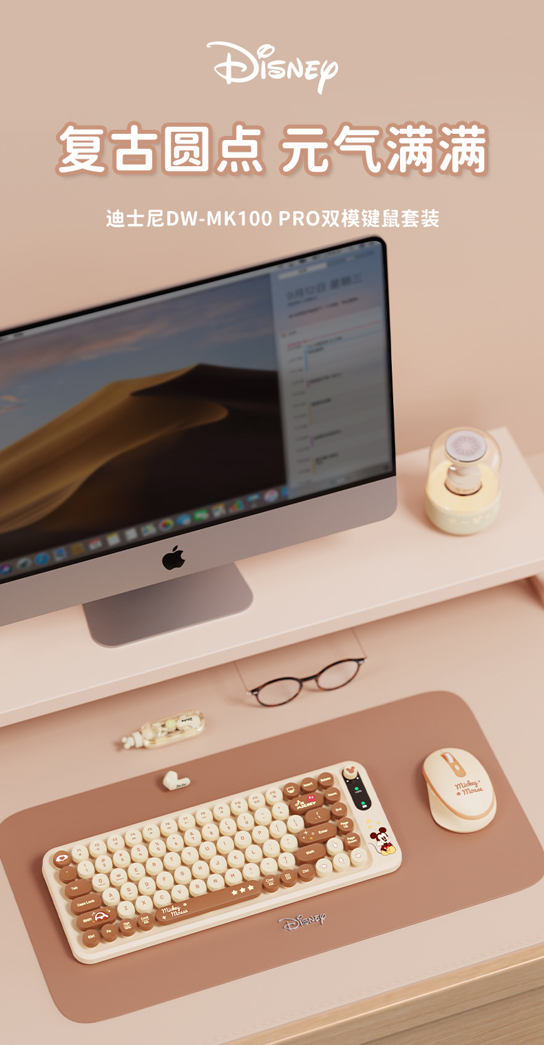 디즈니 태블릿 컴퓨터 키보드 및 마우스 MK100 새로운 듀얼 모드 85키 작고 귀엽고 조용하며 멋집니다.스토어 가기