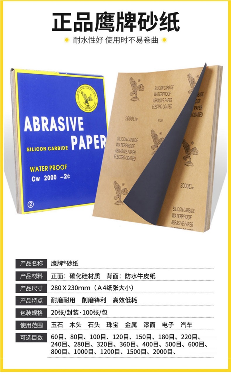 정품 이글 브랜드 사포, 수성 사포, 60-7000 메쉬 자동차 밀랍 문화 연마 및 연마 Junxia스토어 가기