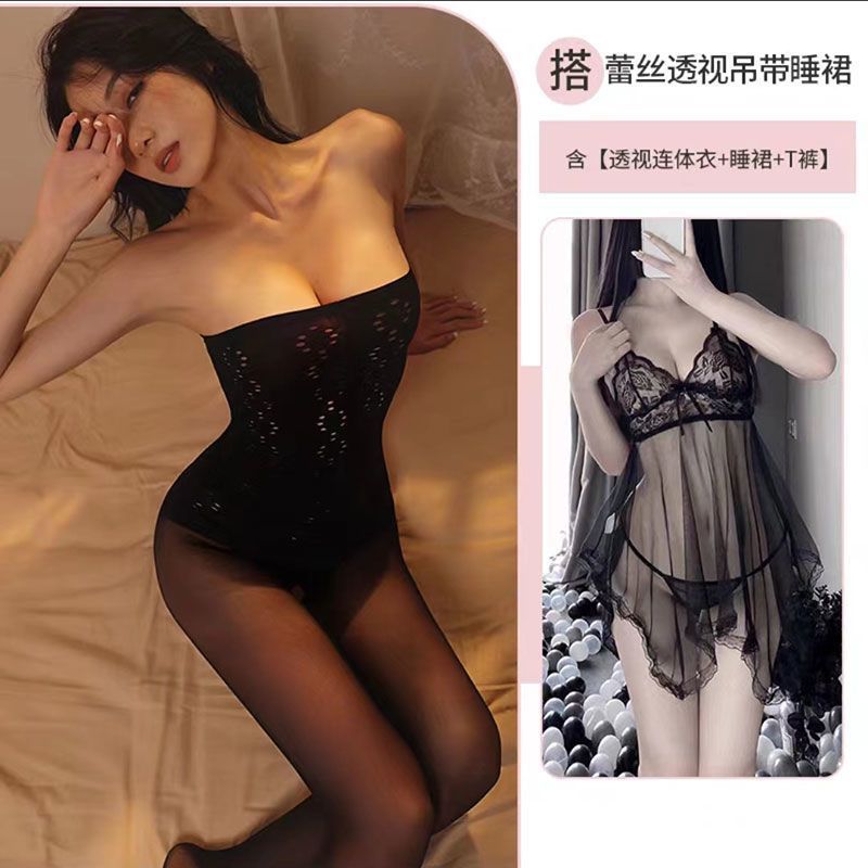 3가지 색상 선택 가능, 스플라이스 튜브탑, 오픈핏, 탈착 불가, 유혹, 미드나잇 참, 유혹, 블랙 실크 투명 망사 스타킹