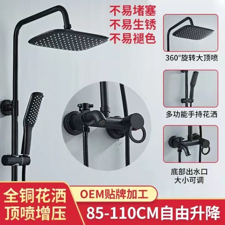 유럽식 블랙 샤워기 세트 가정용 앤틱풍 전체 구리 욕실 샤워기 화장실 가압식 샤워기스토어 가기