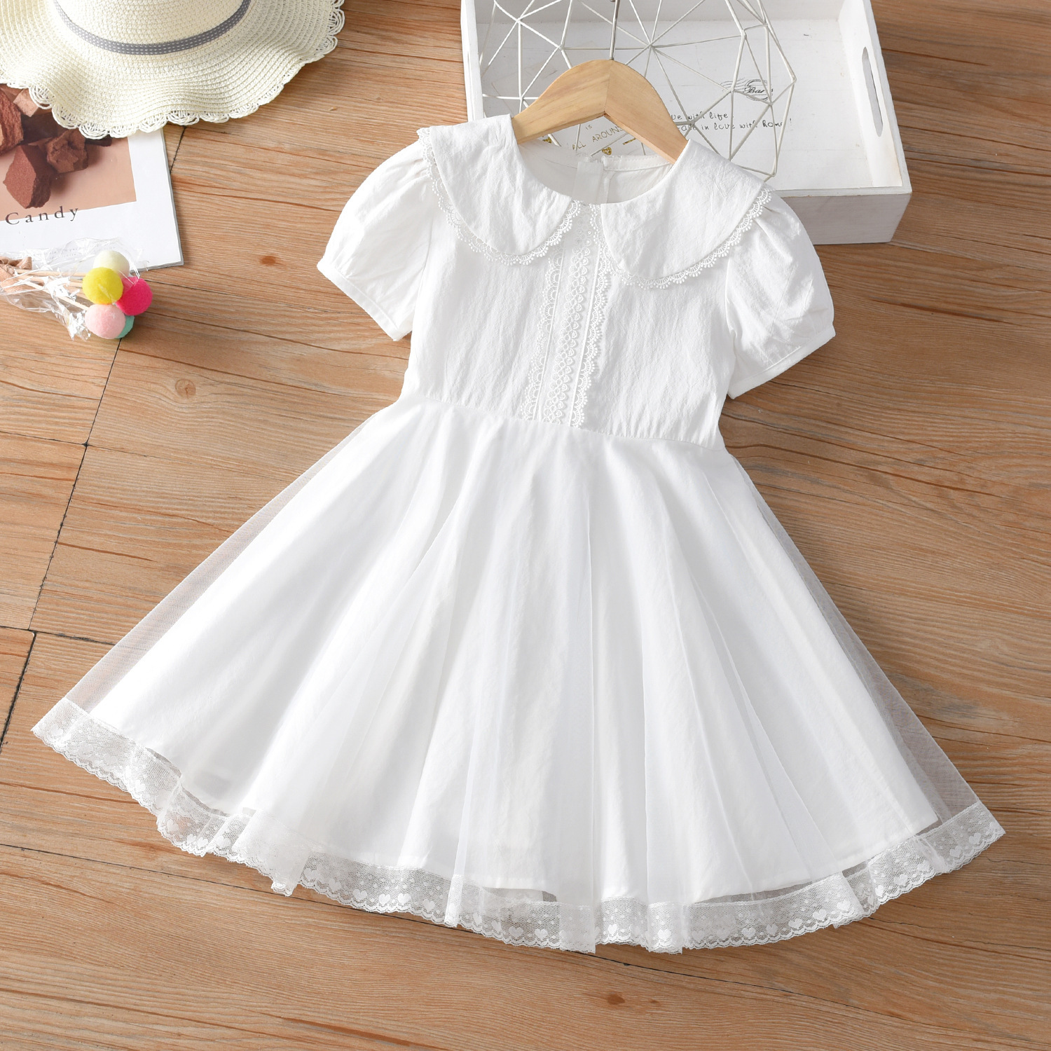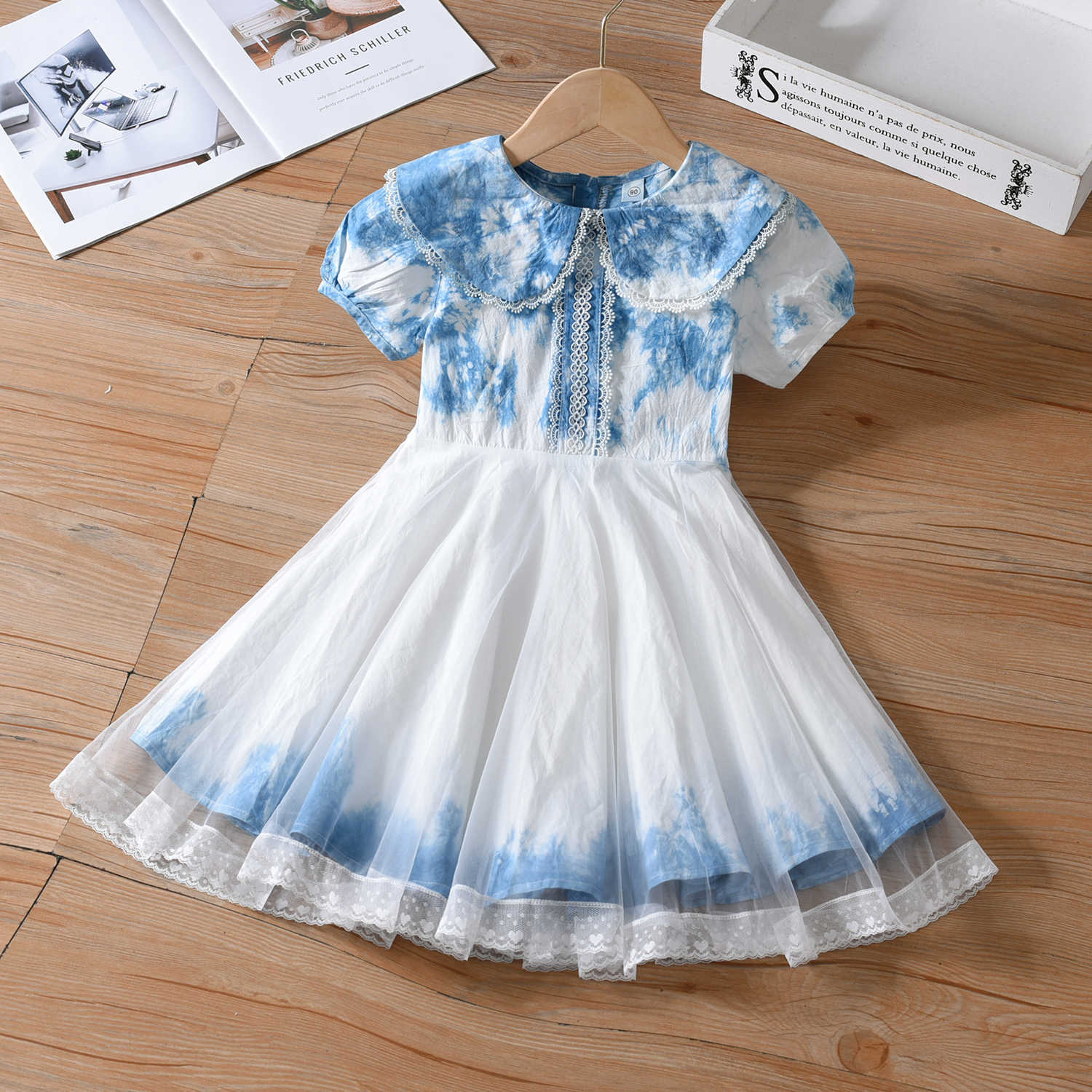 운남 고대 수제 식물 타이 염색 어린이 레이스 스플 라이스 드레스 소녀 반팔 여름 소녀 공주 드레스스토어 가기