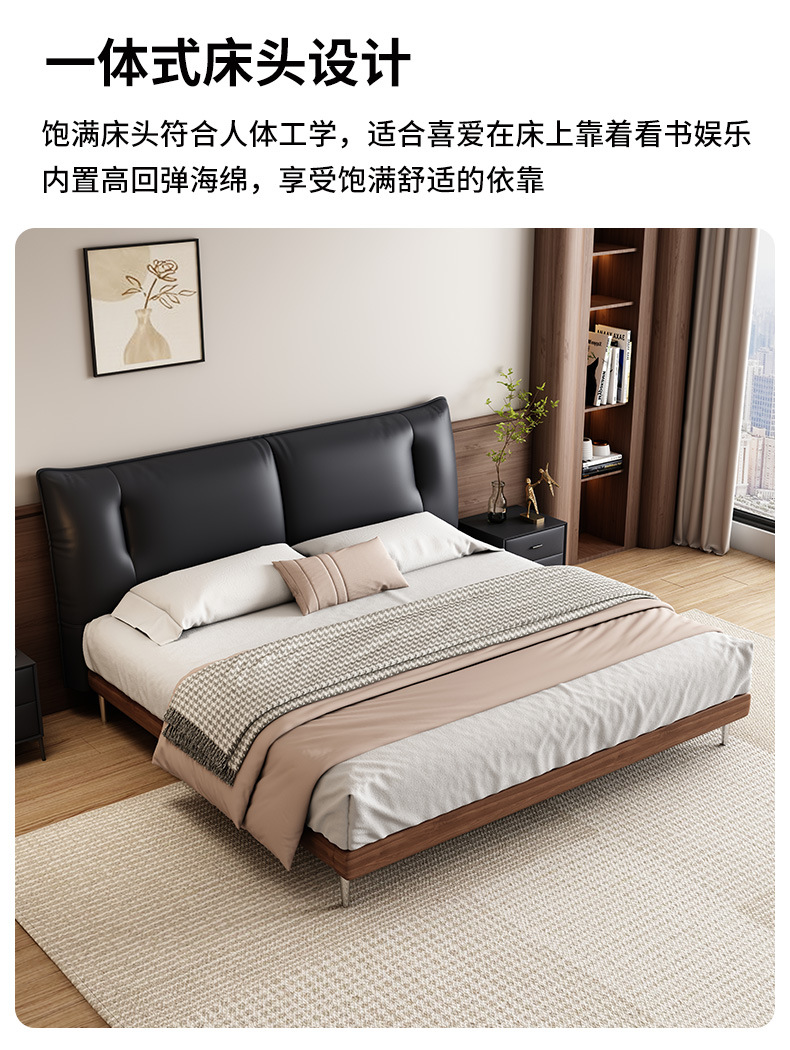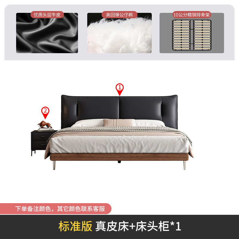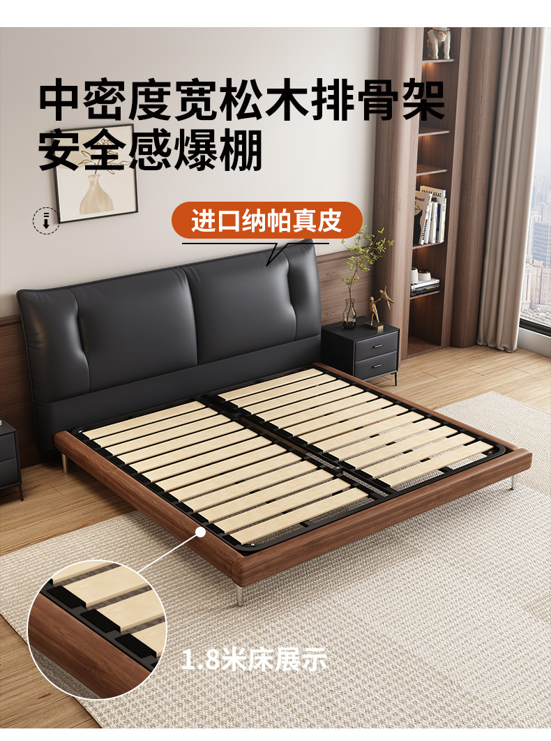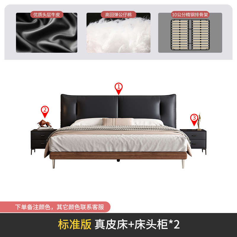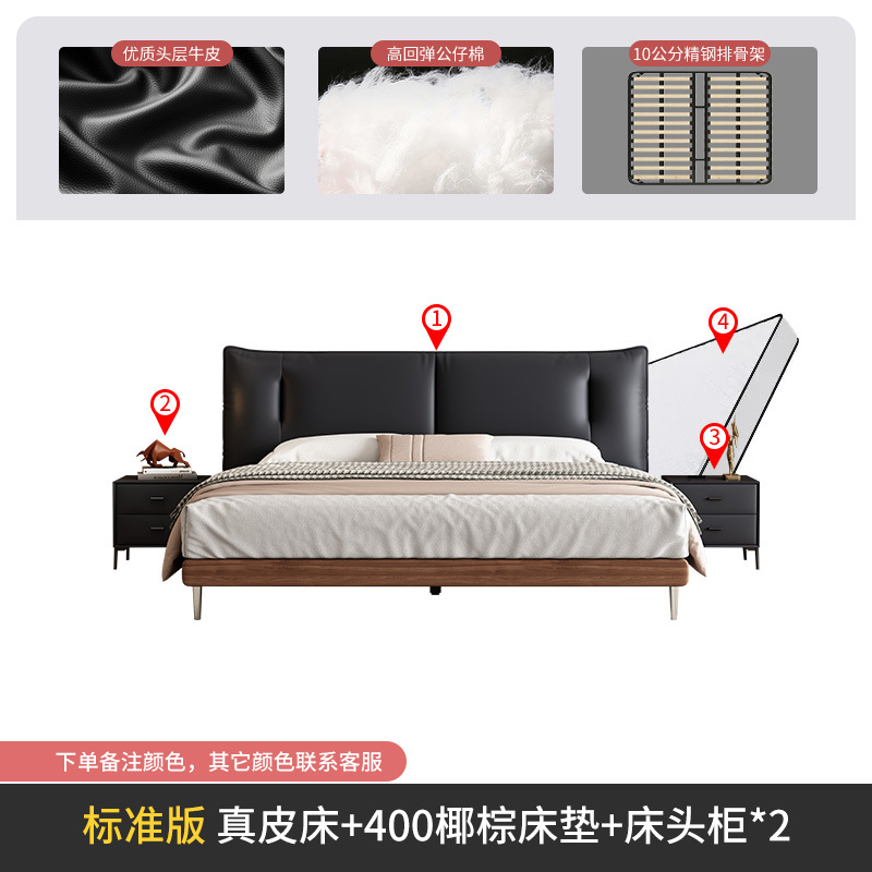 중세 스타일 가죽 침대 복고풍 마스터 침실 단단한 나무 더블 침대 1.95m 현대 간단한 더블 침대 웨딩 침대 가죽 침대스토어 가기