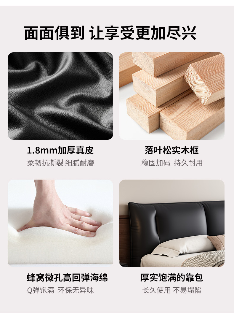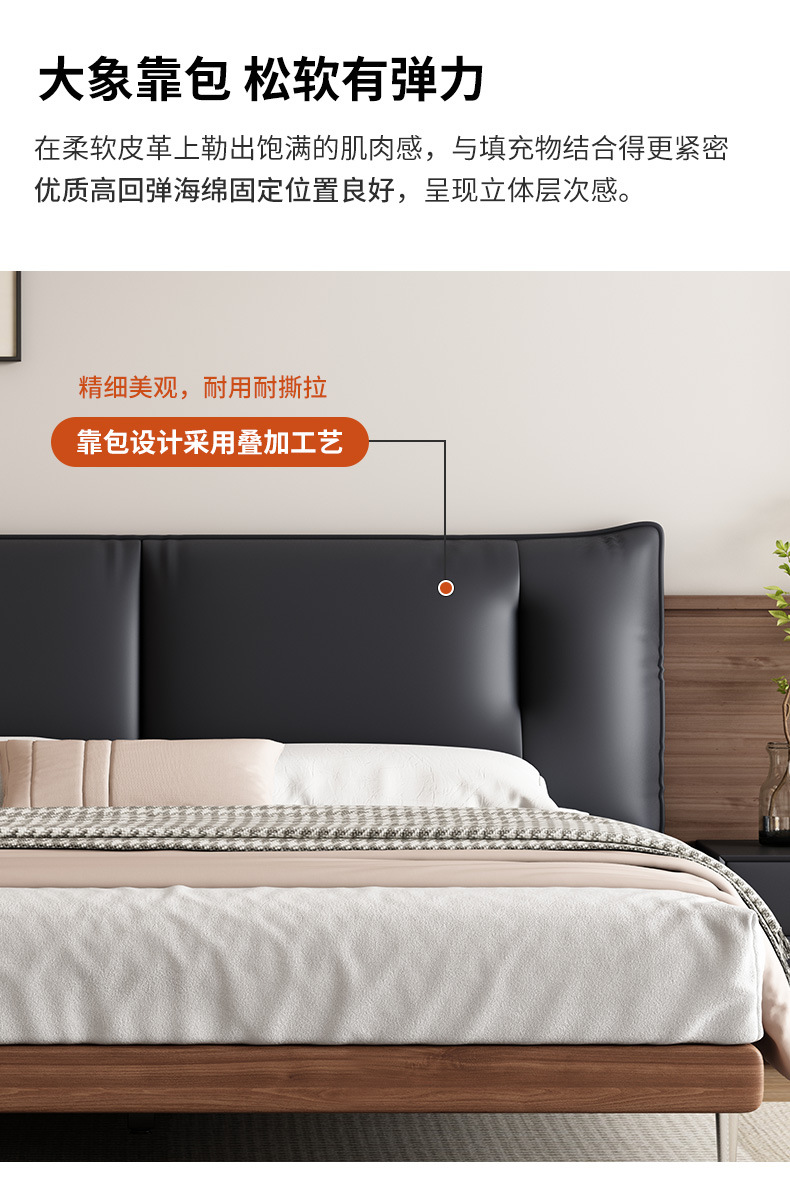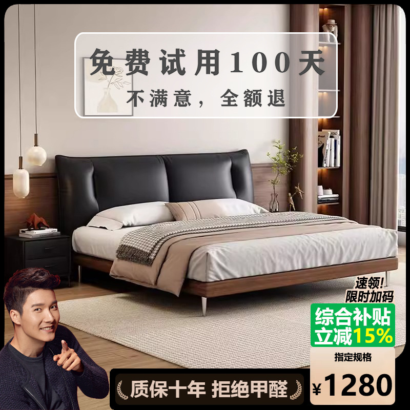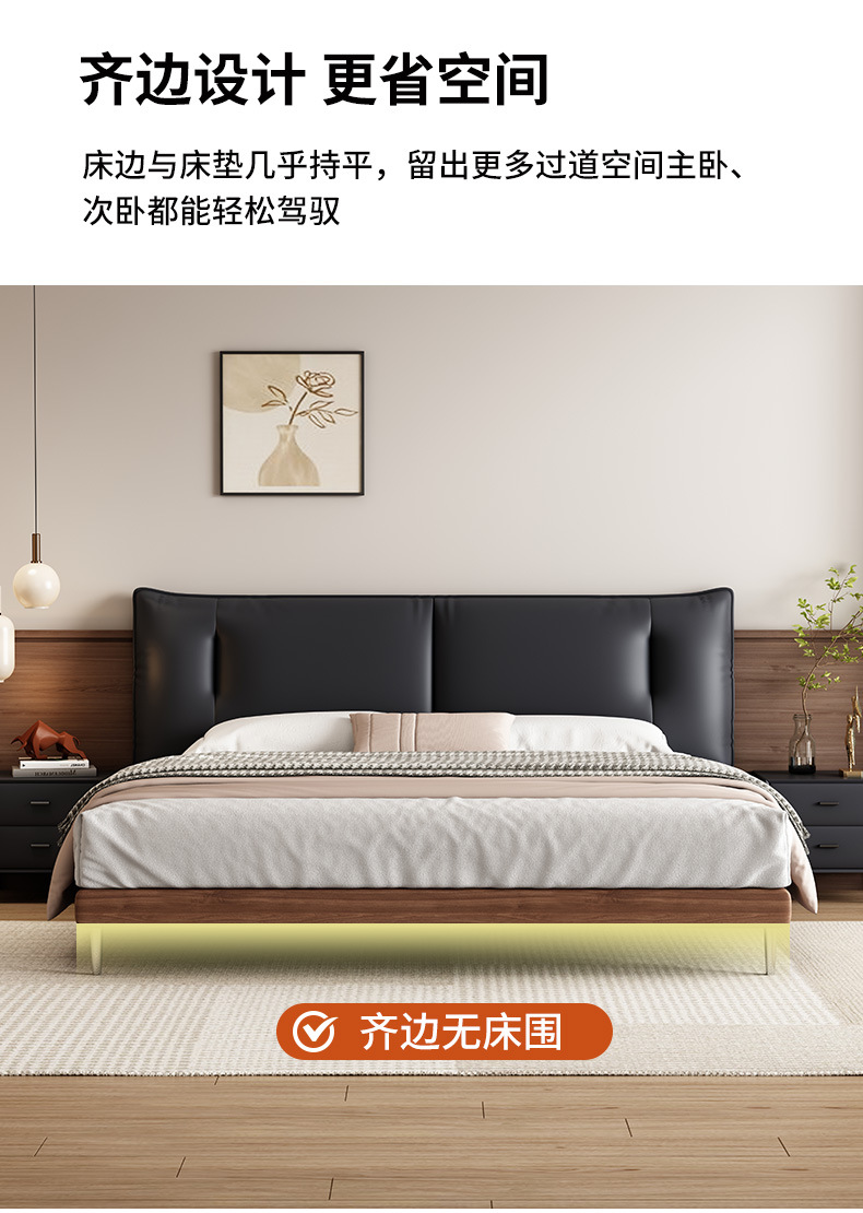 중세 스타일 가죽 침대 복고풍 마스터 침실 단단한 나무 더블 침대 1.95m 현대 간단한 더블 침대 웨딩 침대 가죽 침대스토어 가기