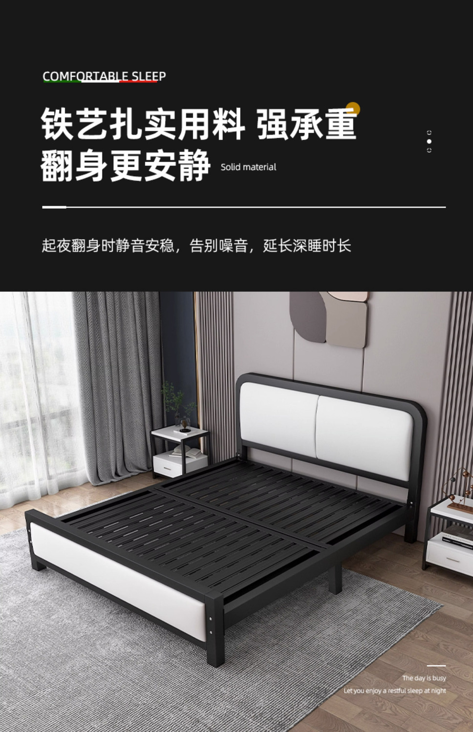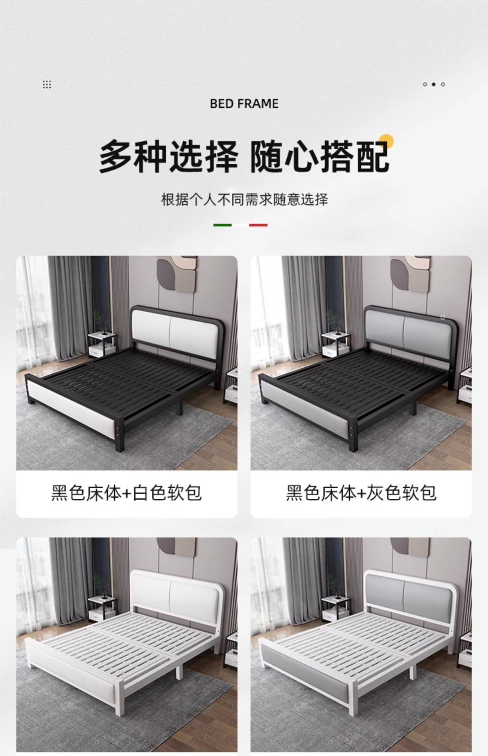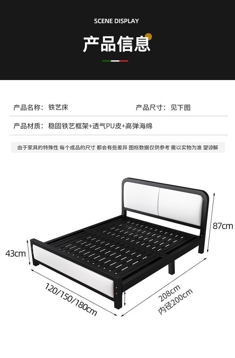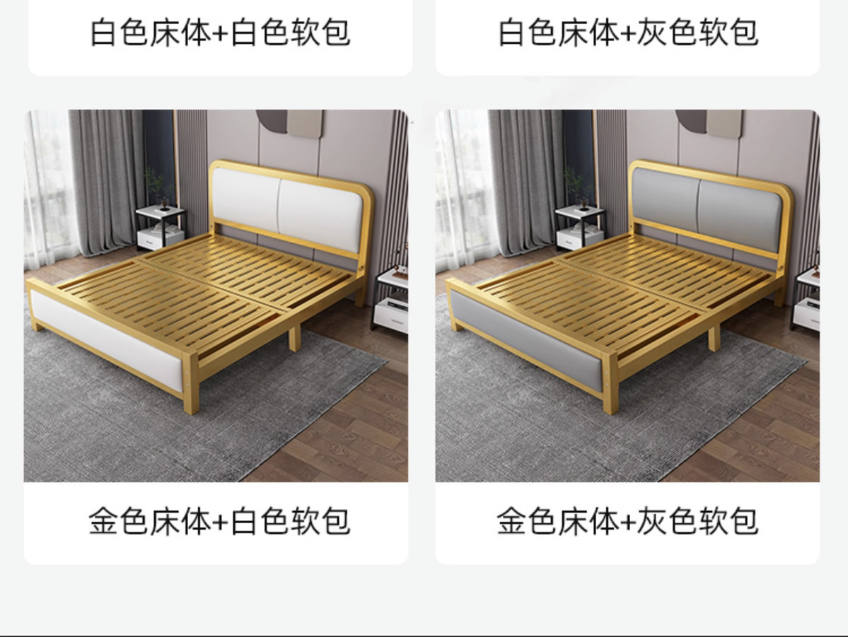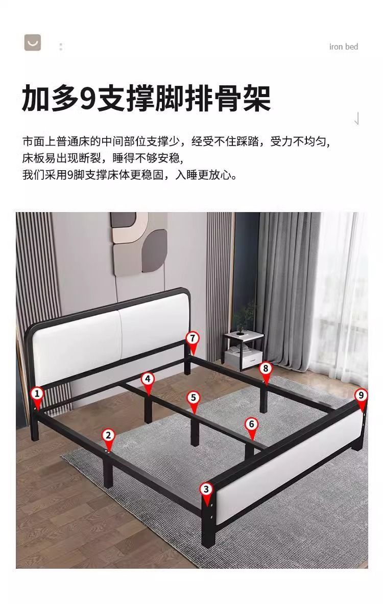 현대적인 미니멀리스트 철제 침대 1.8m 더블 1.2m 싱글 철제 침대 임대실 소프트 팩 침대 경제적 1.5m스토어 가기
