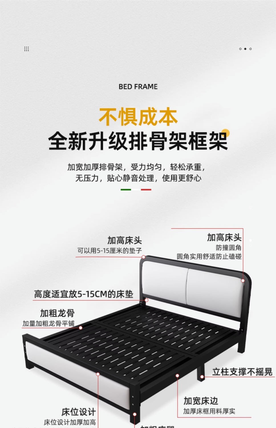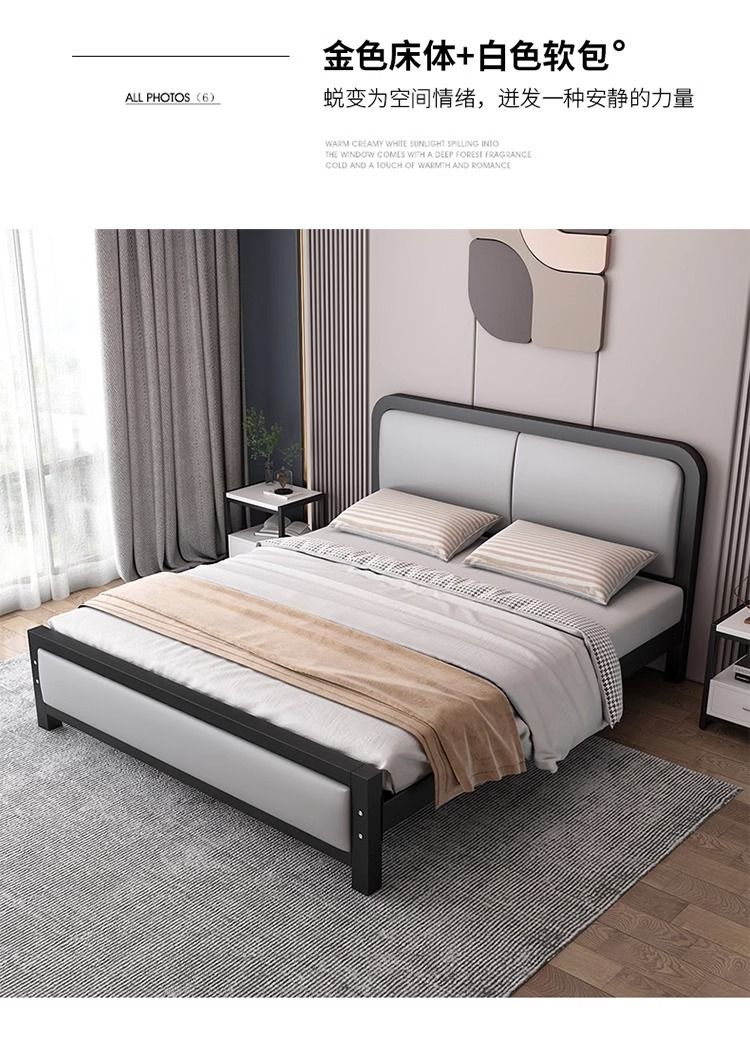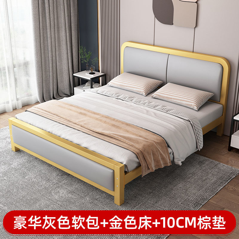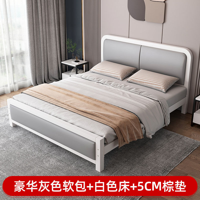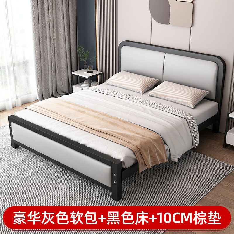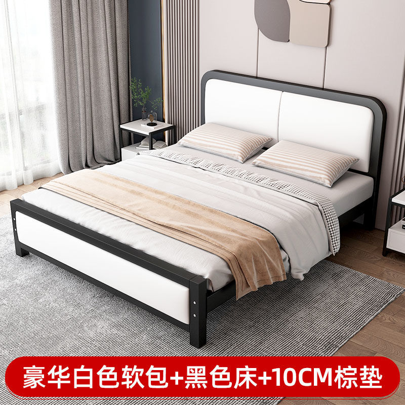 현대적인 미니멀리스트 철제 침대 1.8m 더블 1.2m 싱글 철제 침대 임대실 소프트 팩 침대 경제적 1.5m
