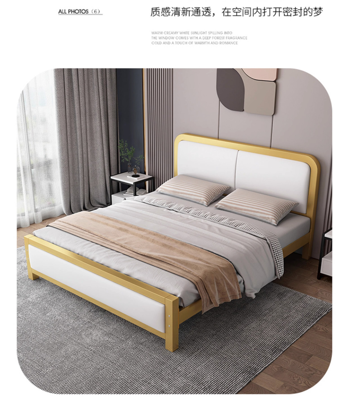 • 고급스러운 황금색 침대 + 흰색 소프트백 + 5cm 매트리스