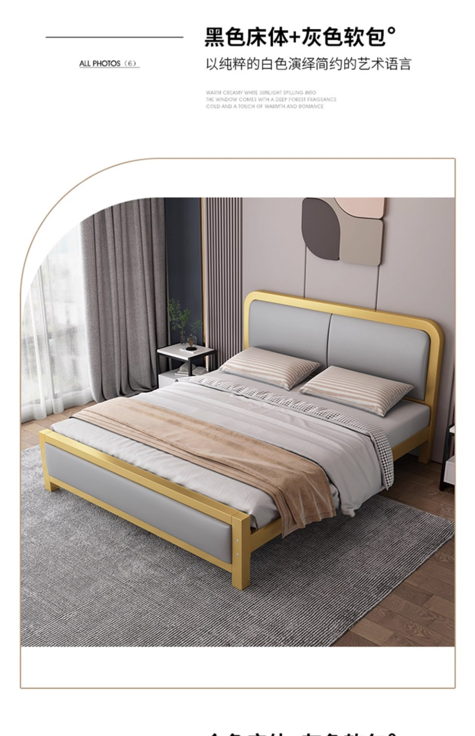 • 고급스러운 황금색 침대 + 그레이 소프트백 + 20cm 매트리스
