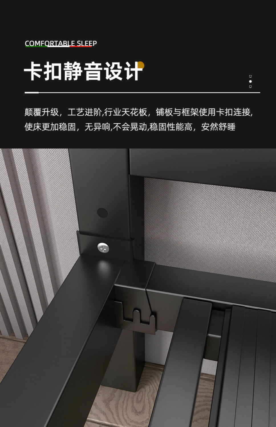 • 고급스러운 블랙 침대 + 그레이 소프트백 + 10cm 매트리스