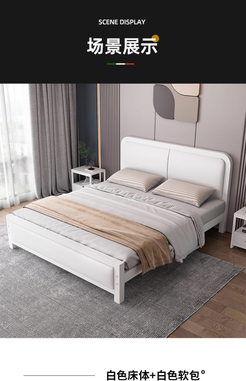 • 고급스러운 흰색 침대 + 흰색 소프트백 + 10cm 매트리스