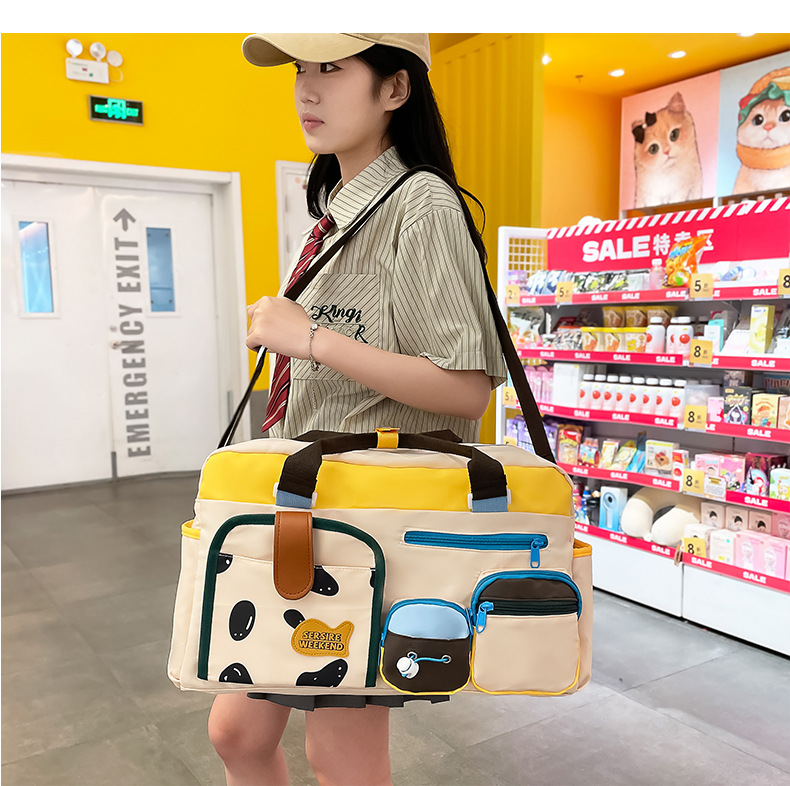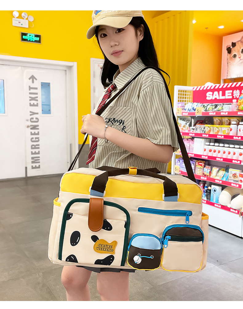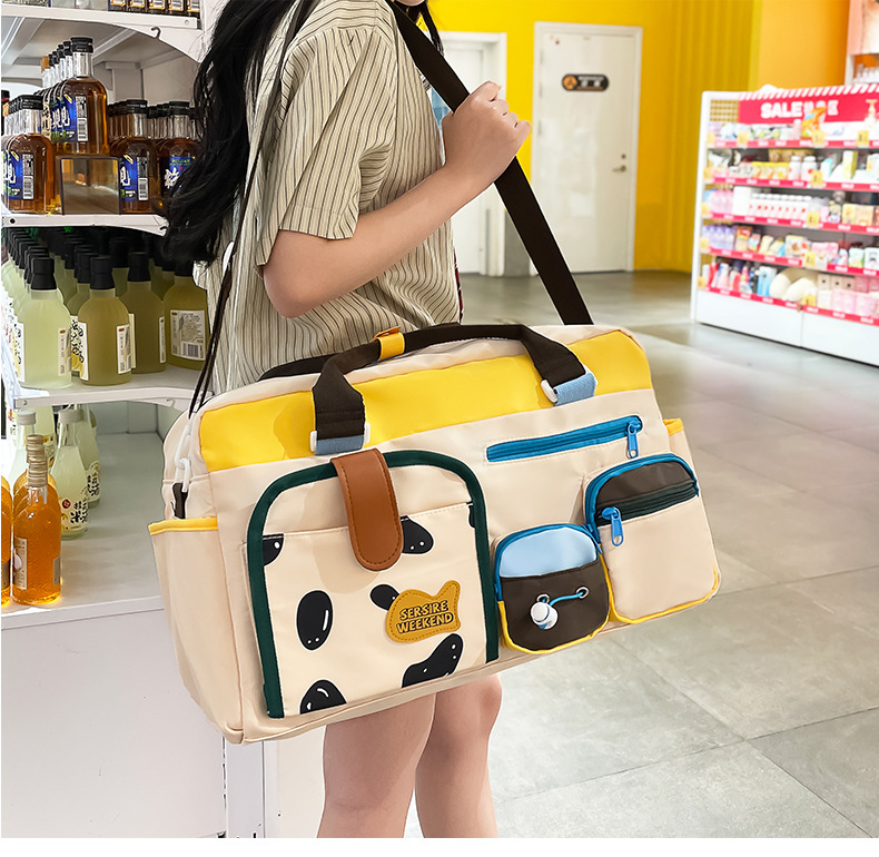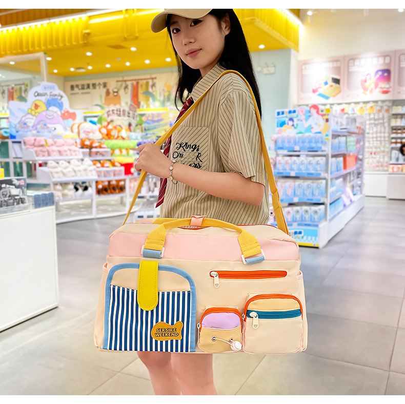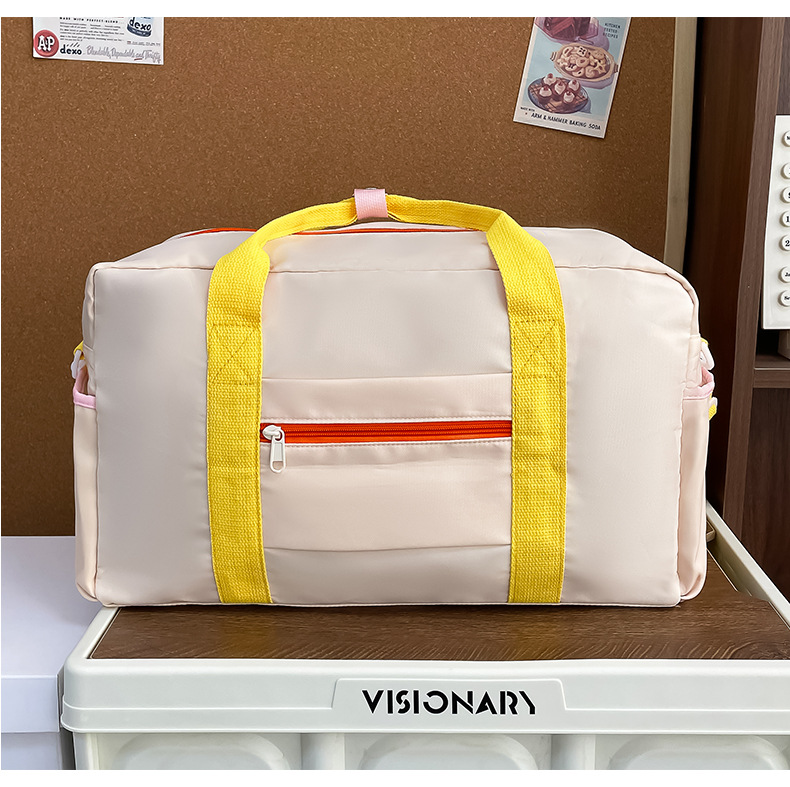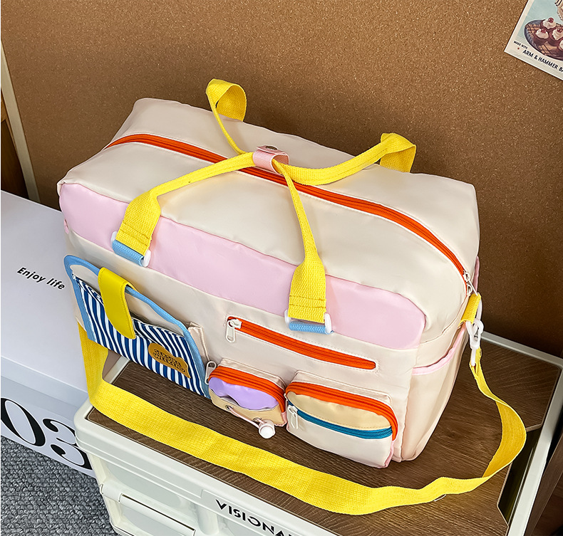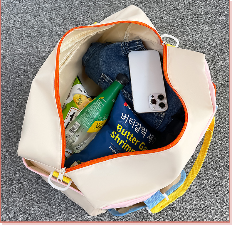 패셔너블한 대비색 여행가방, 대용량, 귀여운 피트니스 가방, 야외 스포츠 가방, 생방송 인기 도파민 출산 가방스토어 가기