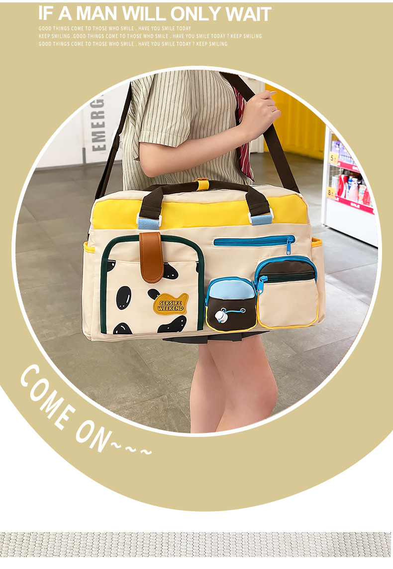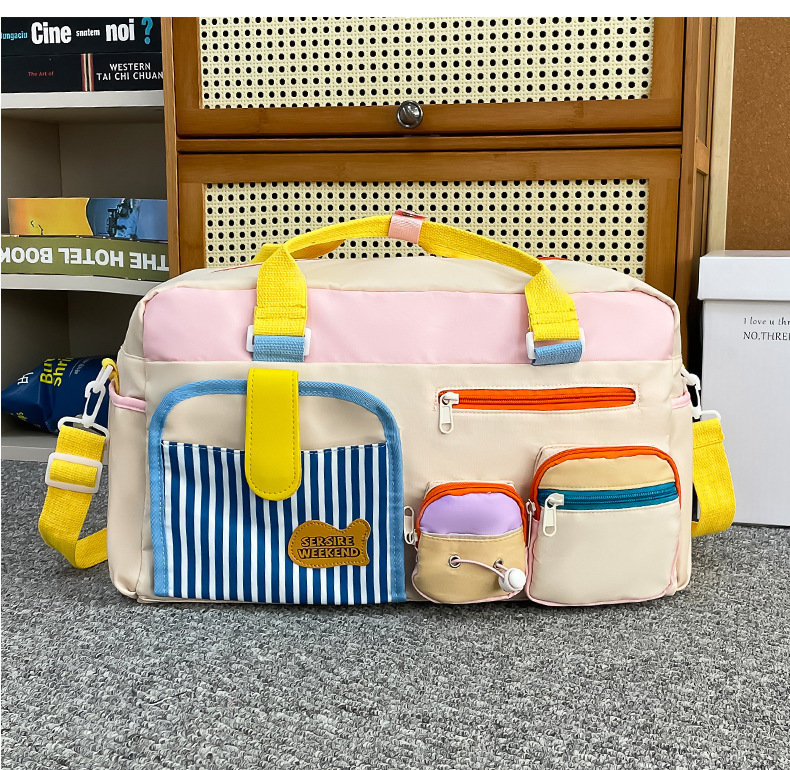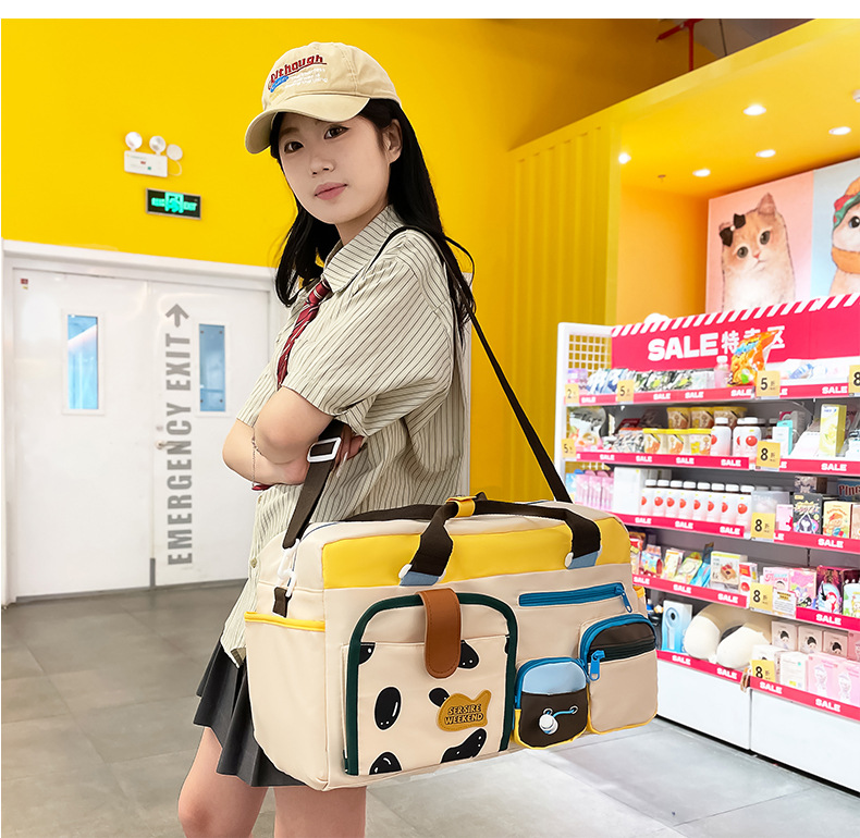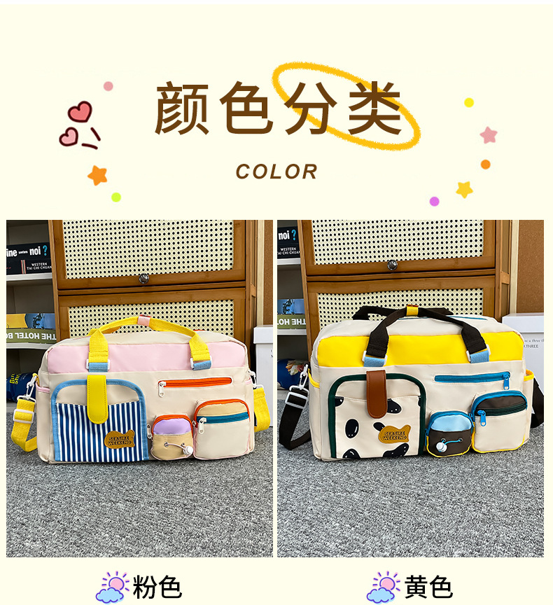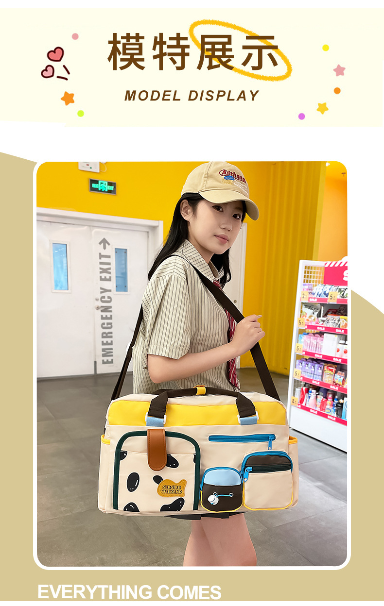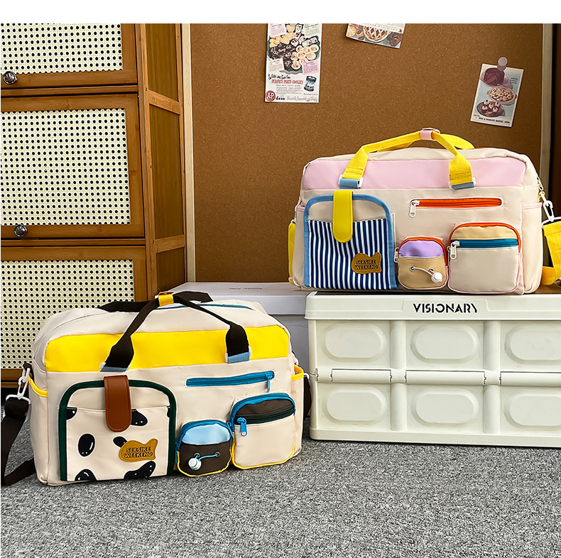 패셔너블한 대비색 여행가방, 대용량, 귀여운 피트니스 가방, 야외 스포츠 가방, 생방송 인기 도파민 출산 가방스토어 가기