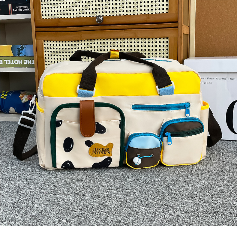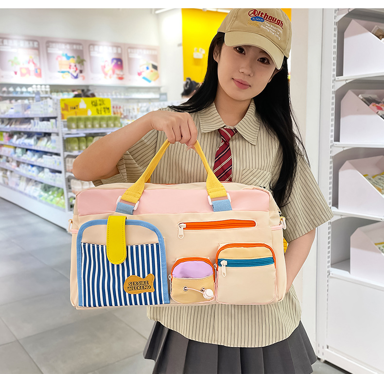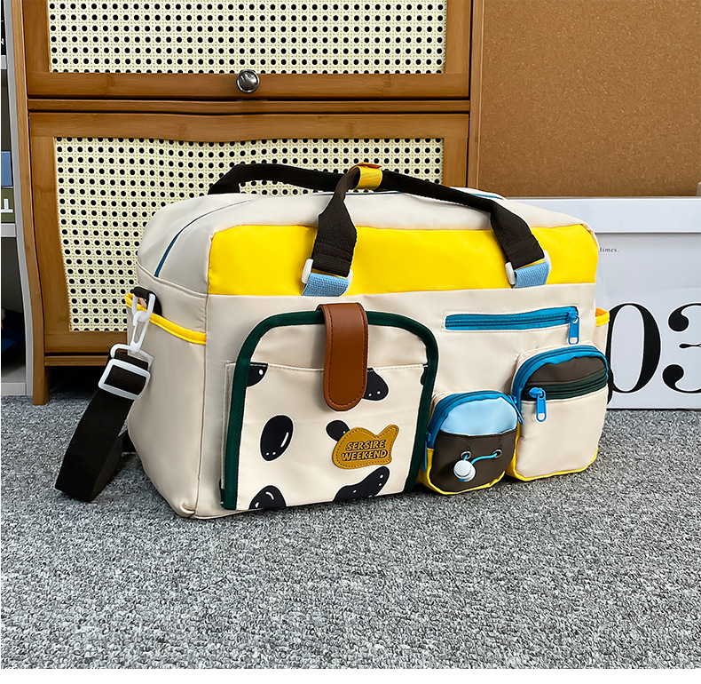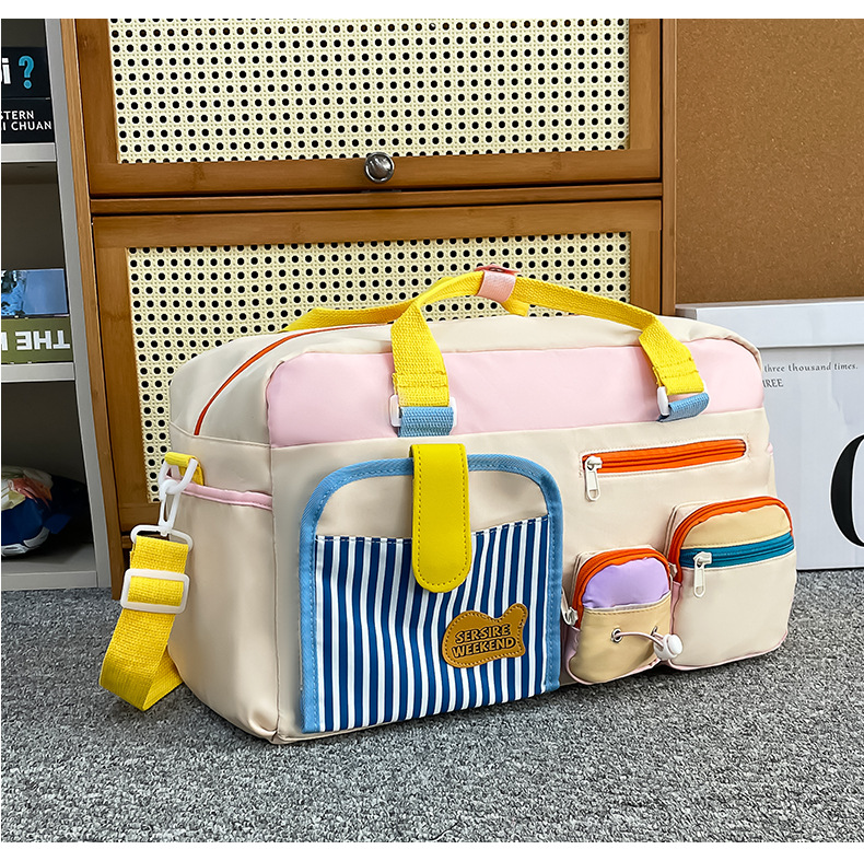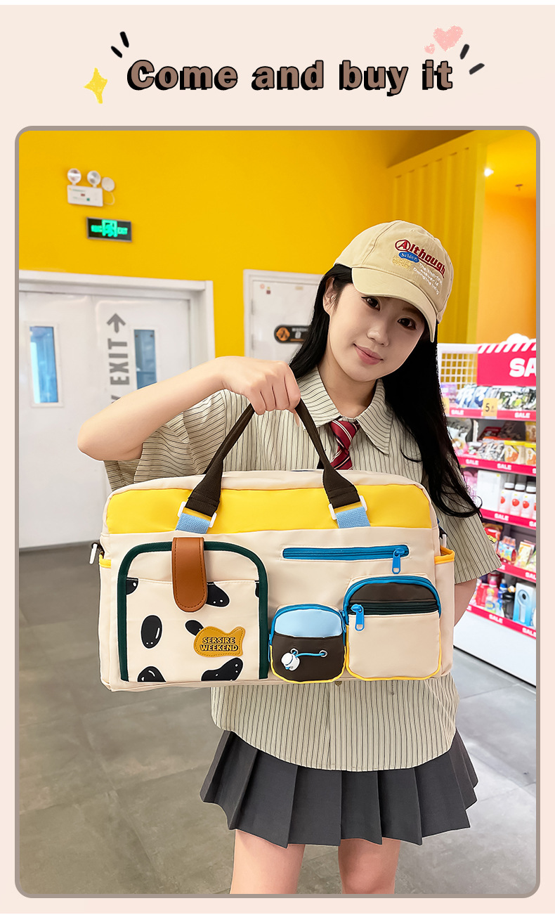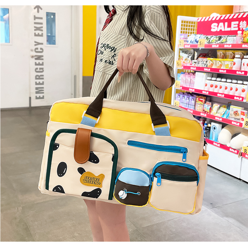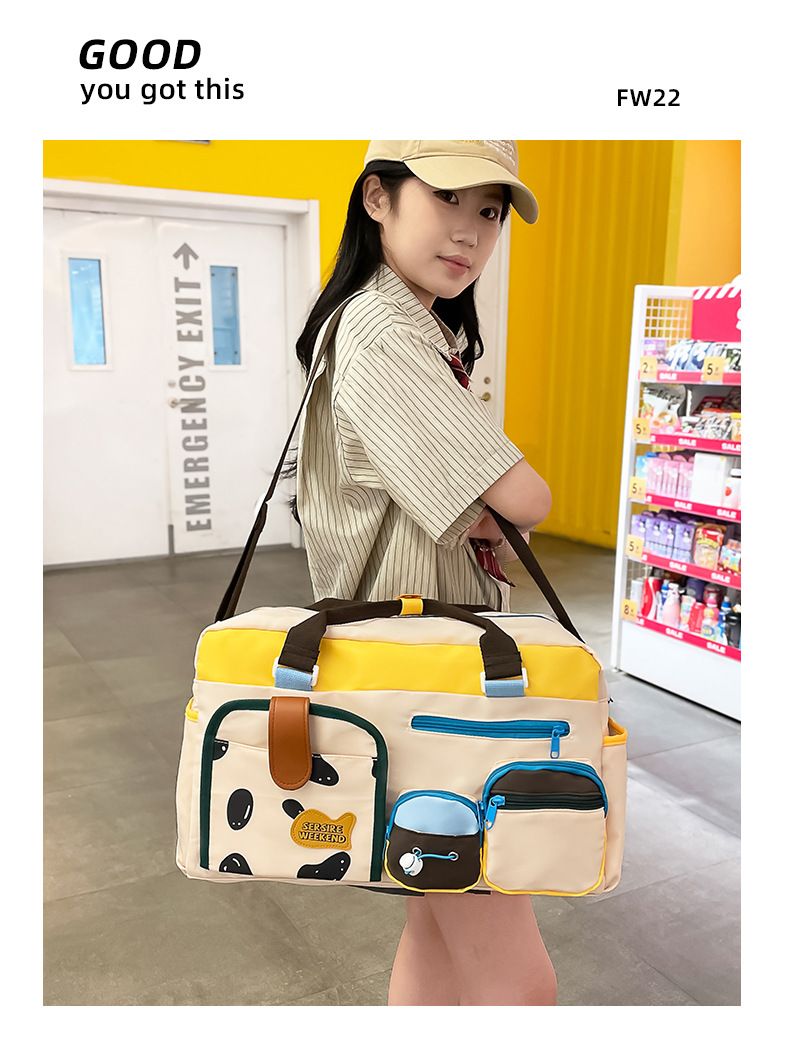 패셔너블한 대비색 여행가방, 대용량, 귀여운 피트니스 가방, 야외 스포츠 가방, 생방송 인기 도파민 출산 가방스토어 가기