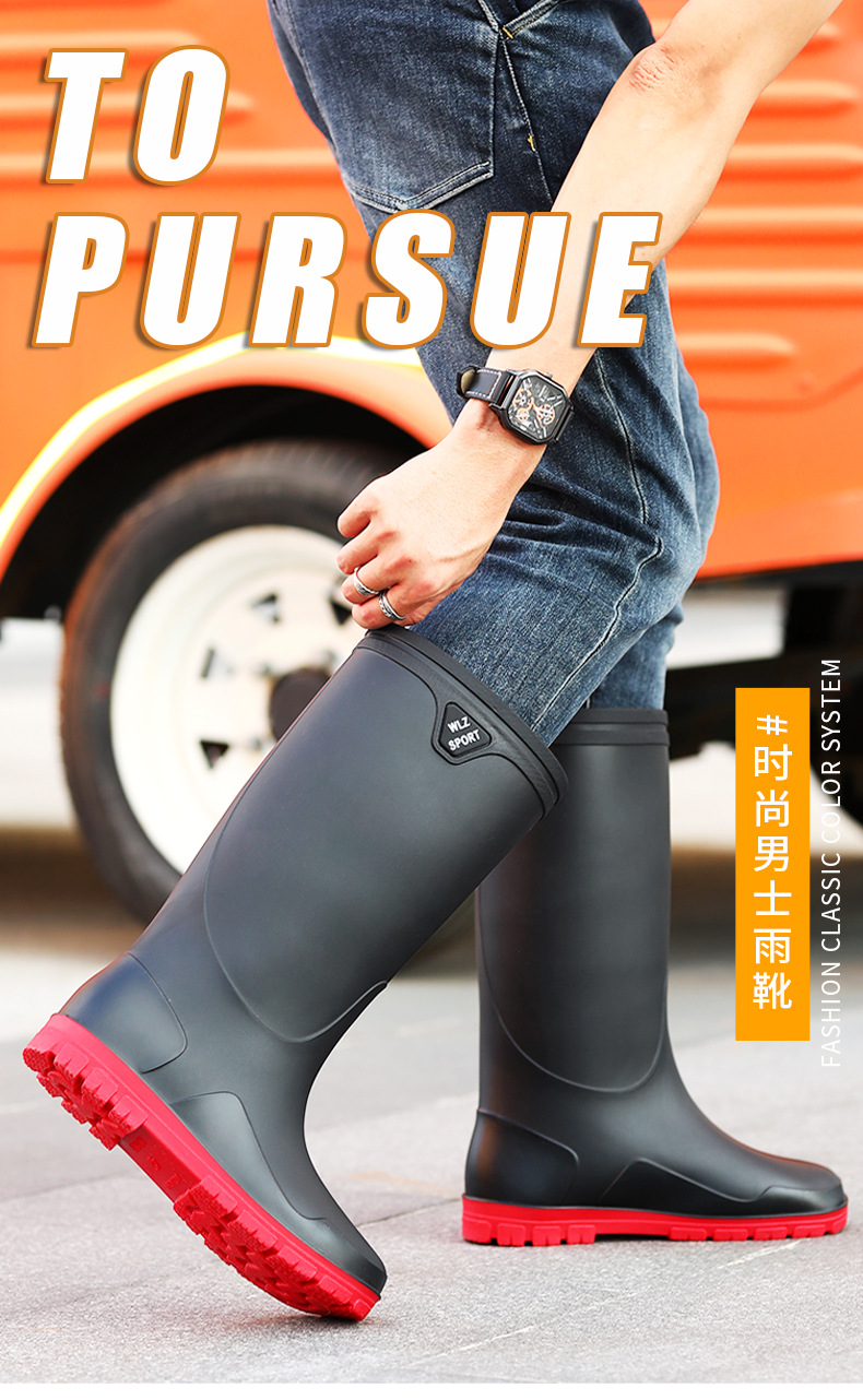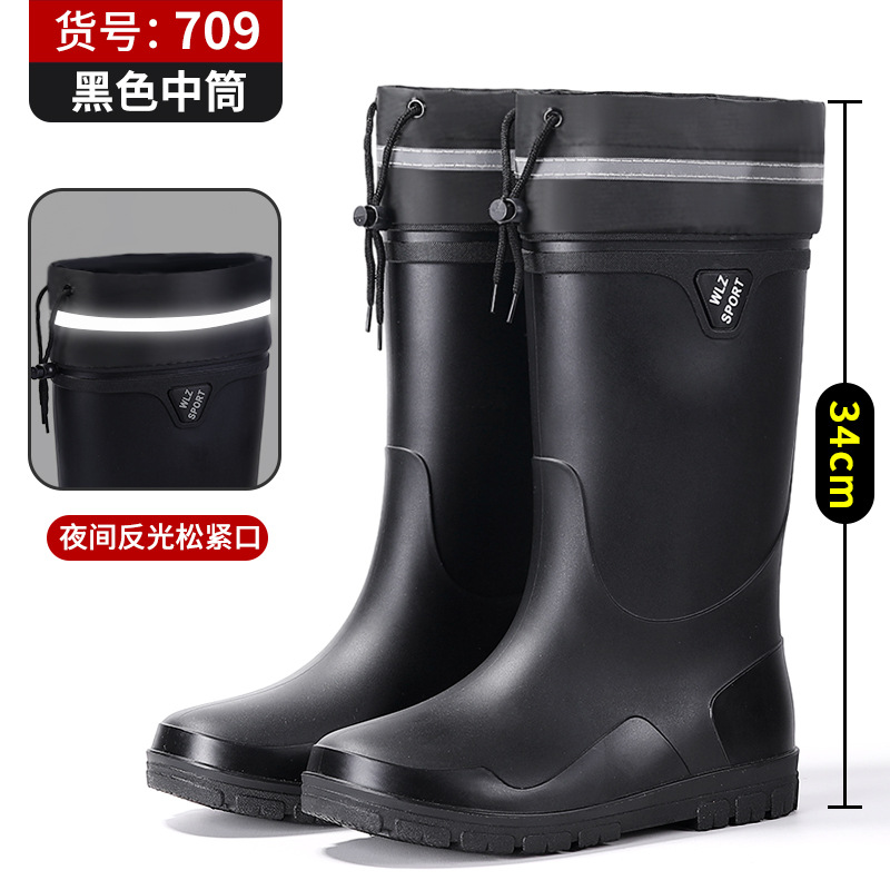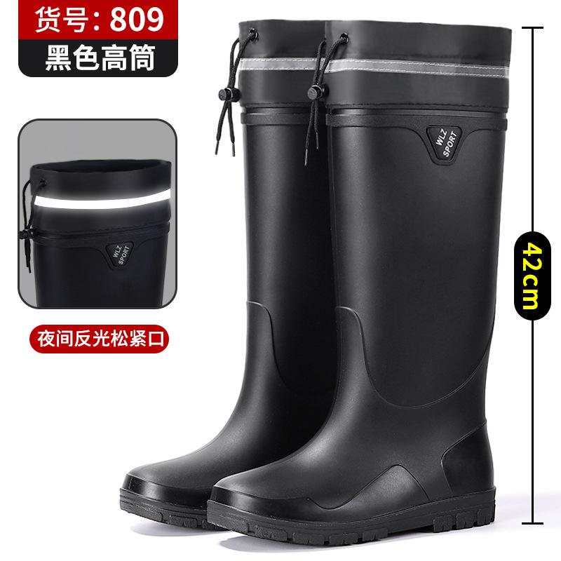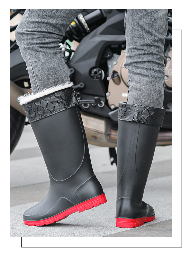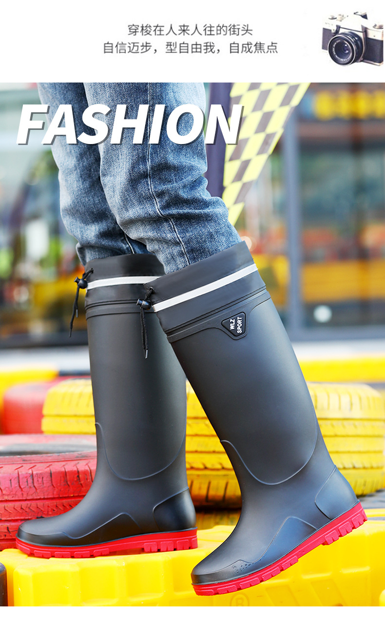 대외 무역 새로운 스타일의 하이탑 남성용 스트링 부츠, 중간 길이의 야외 방수 및 미끄럼 방지 긴 튜브 따뜻하고 두꺼운 낚시 고무 신발