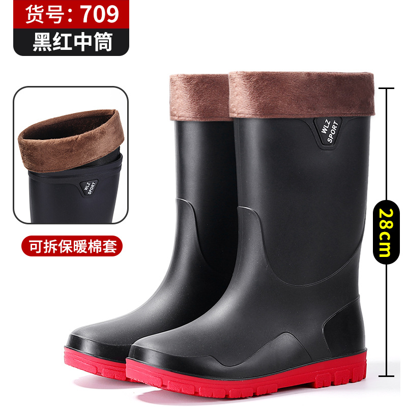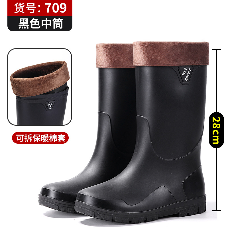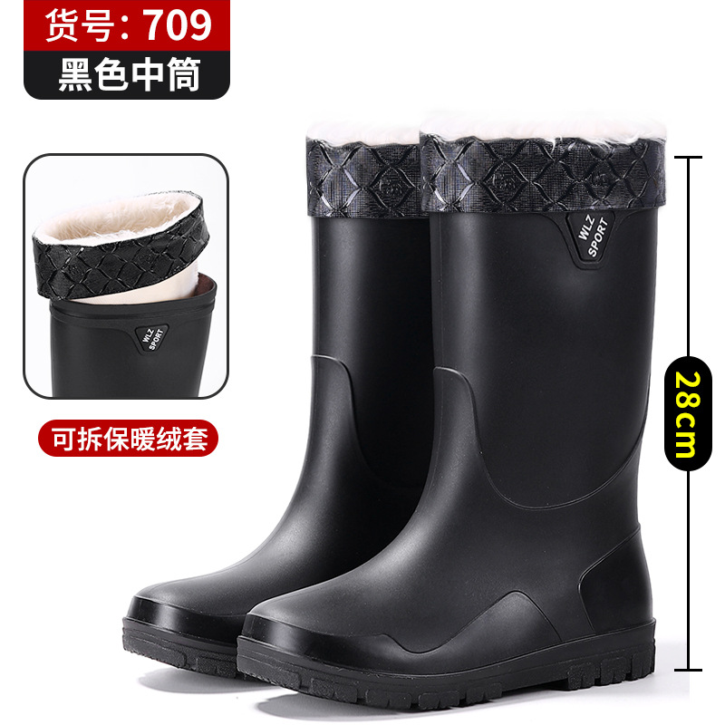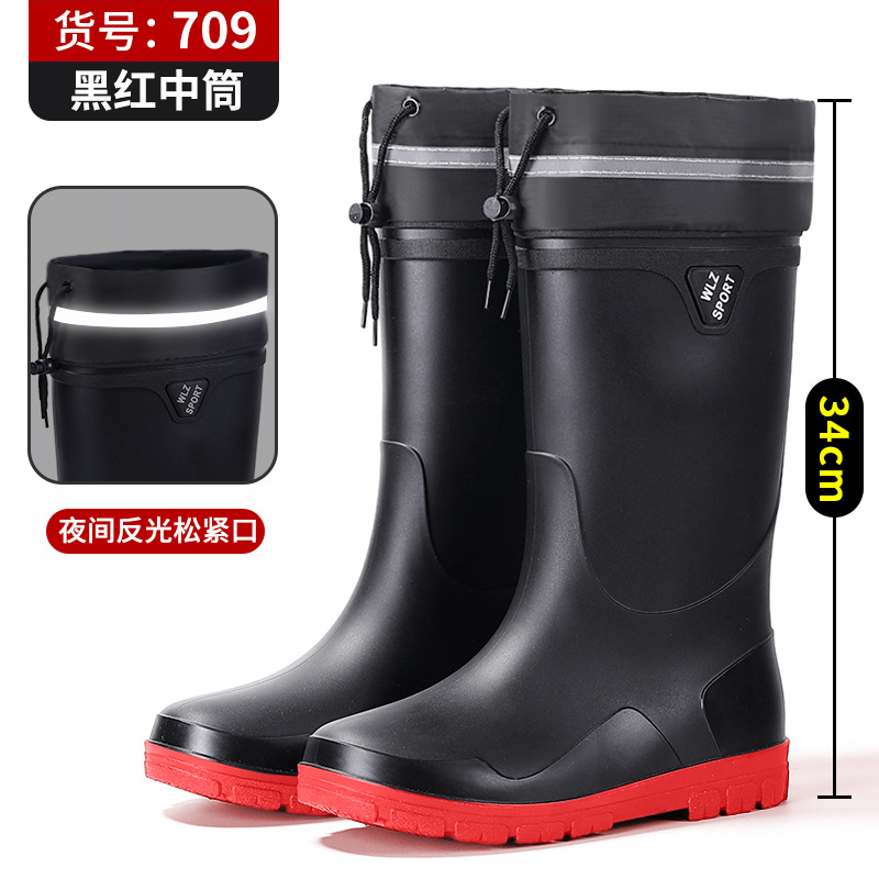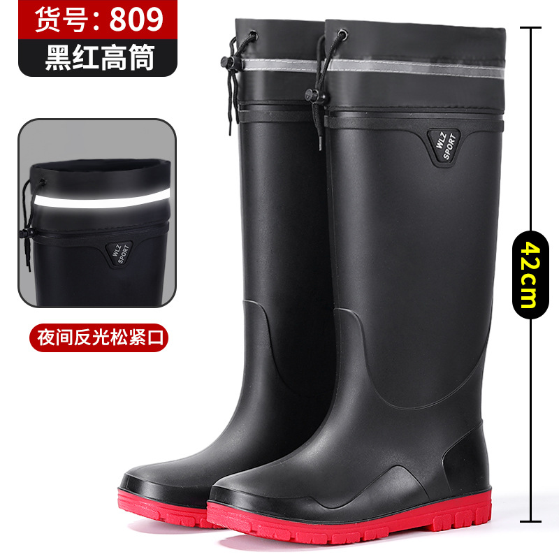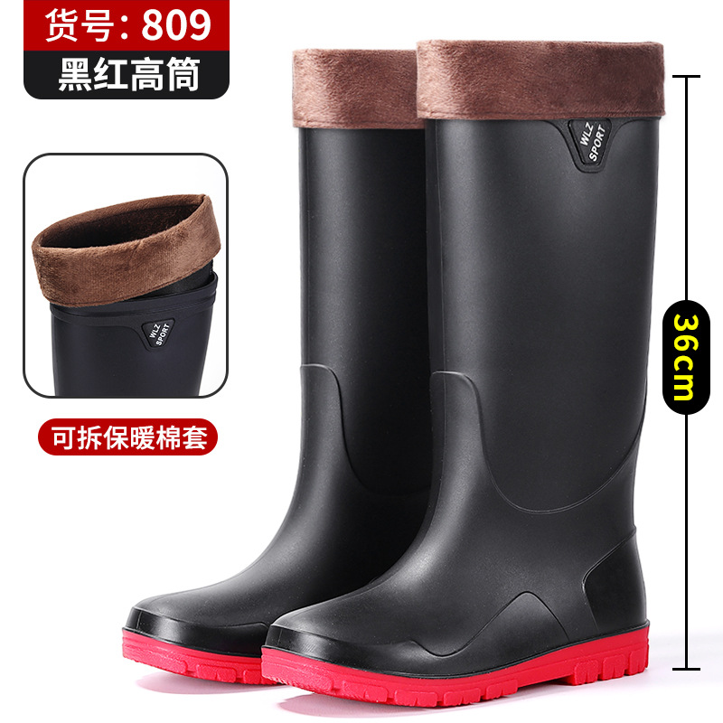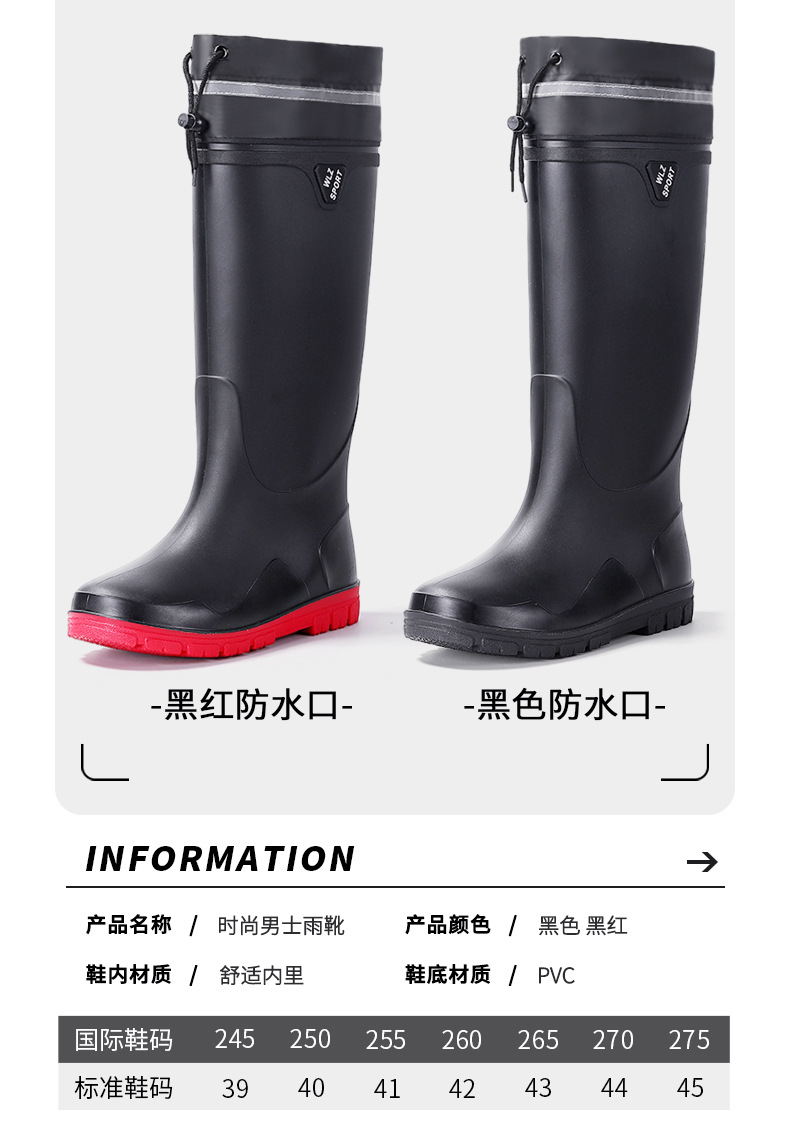 대외 무역 새로운 스타일의 하이탑 남성용 스트링 부츠, 중간 길이의 야외 방수 및 미끄럼 방지 긴 튜브 따뜻하고 두꺼운 낚시 고무 신발