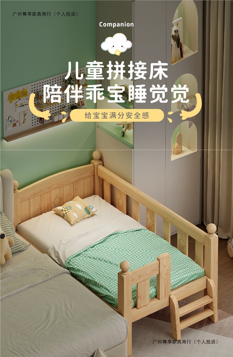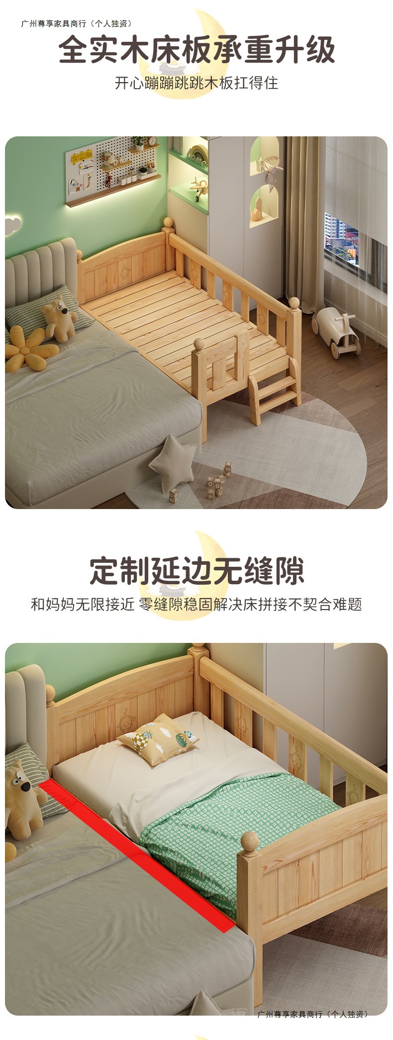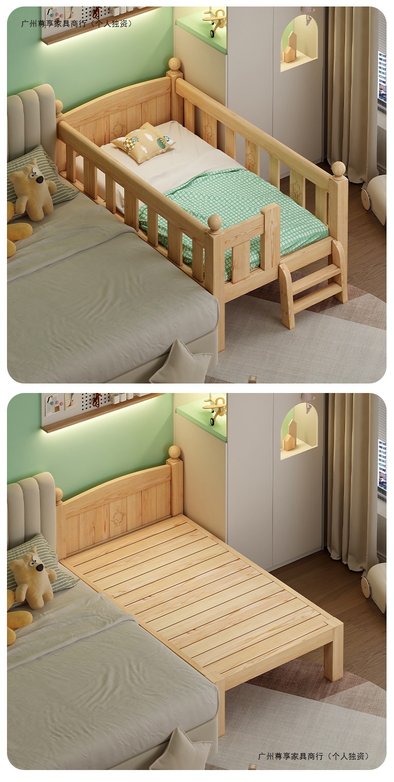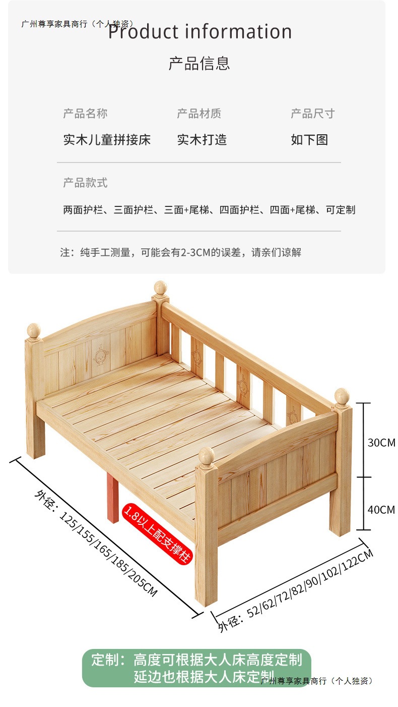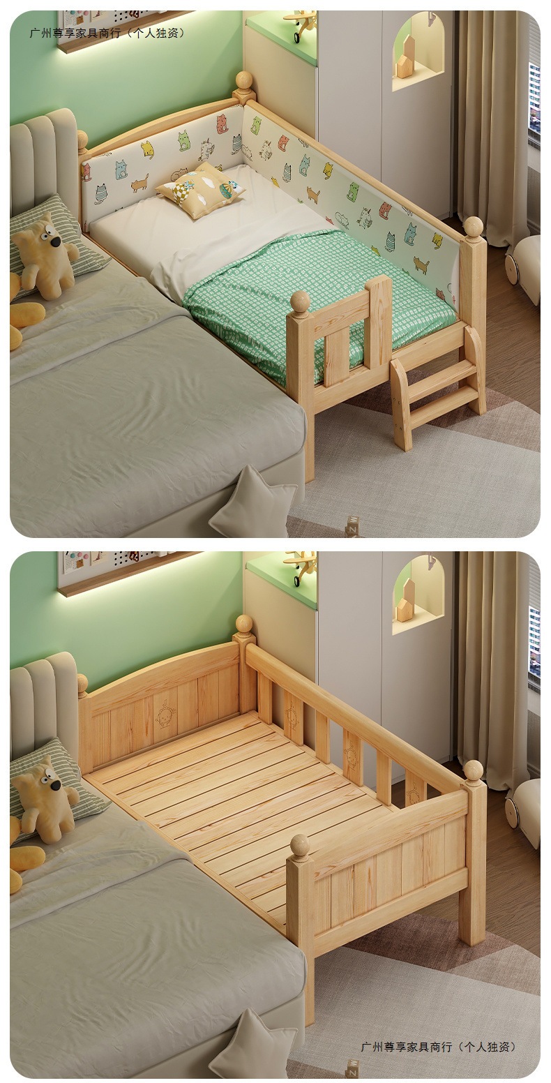 z% 어린이 접합 침대 확장 단단한 나무 침대 작은 침대 싱글 침대 울타리 침대 옆 유아용 침대 소년 소녀 접합 대형스토어 가기