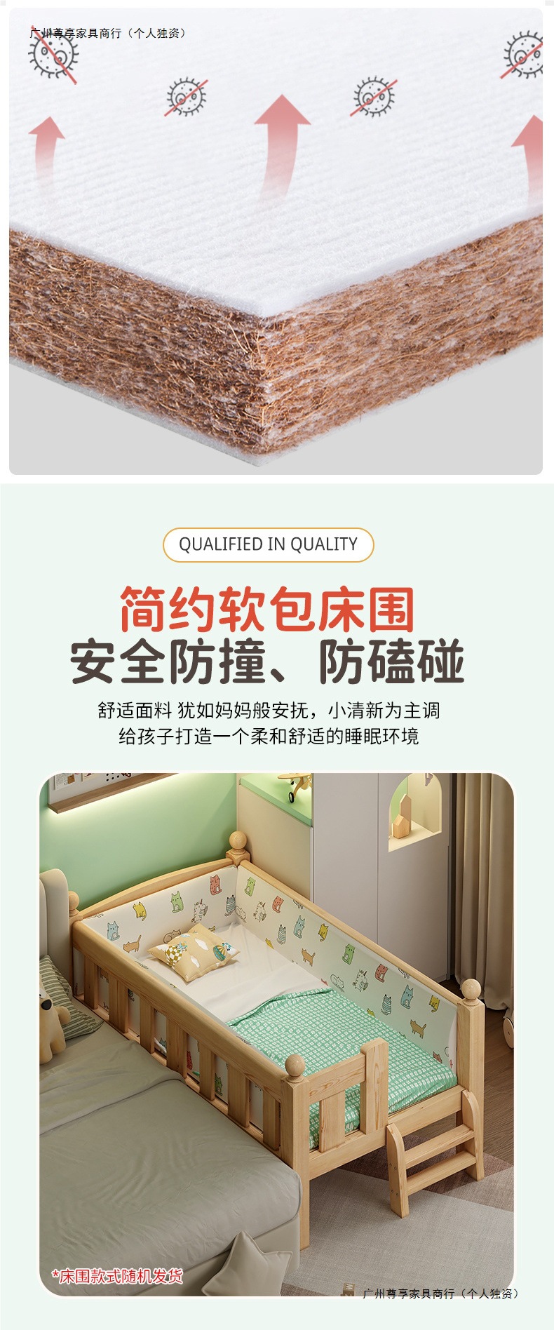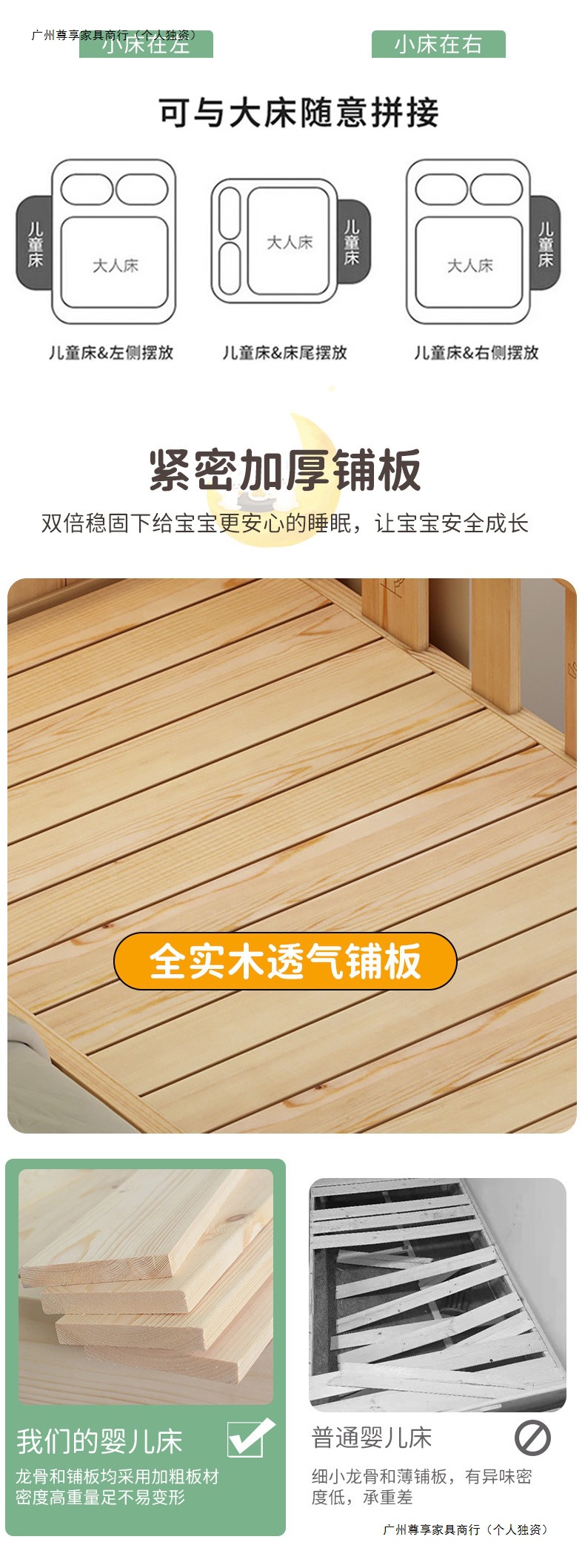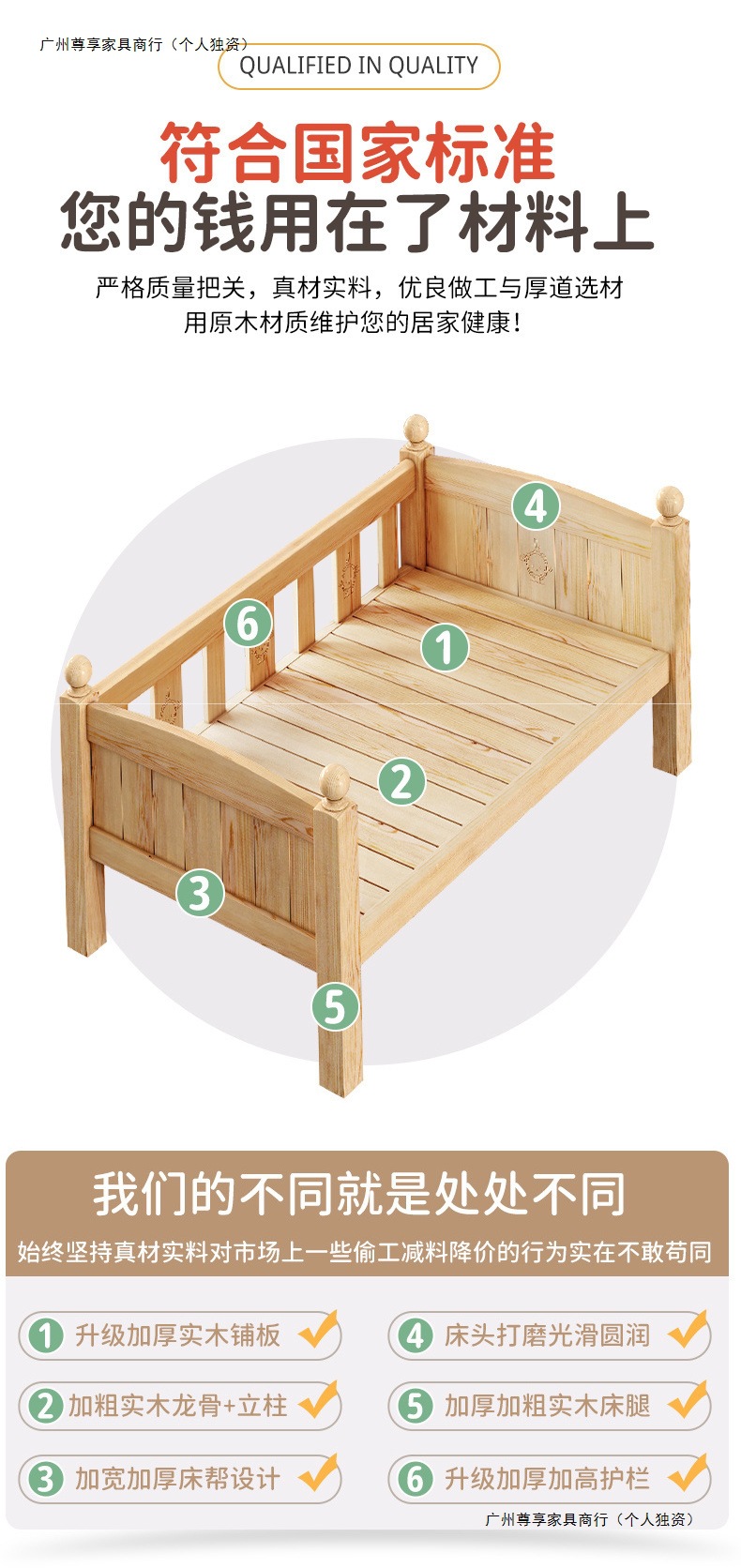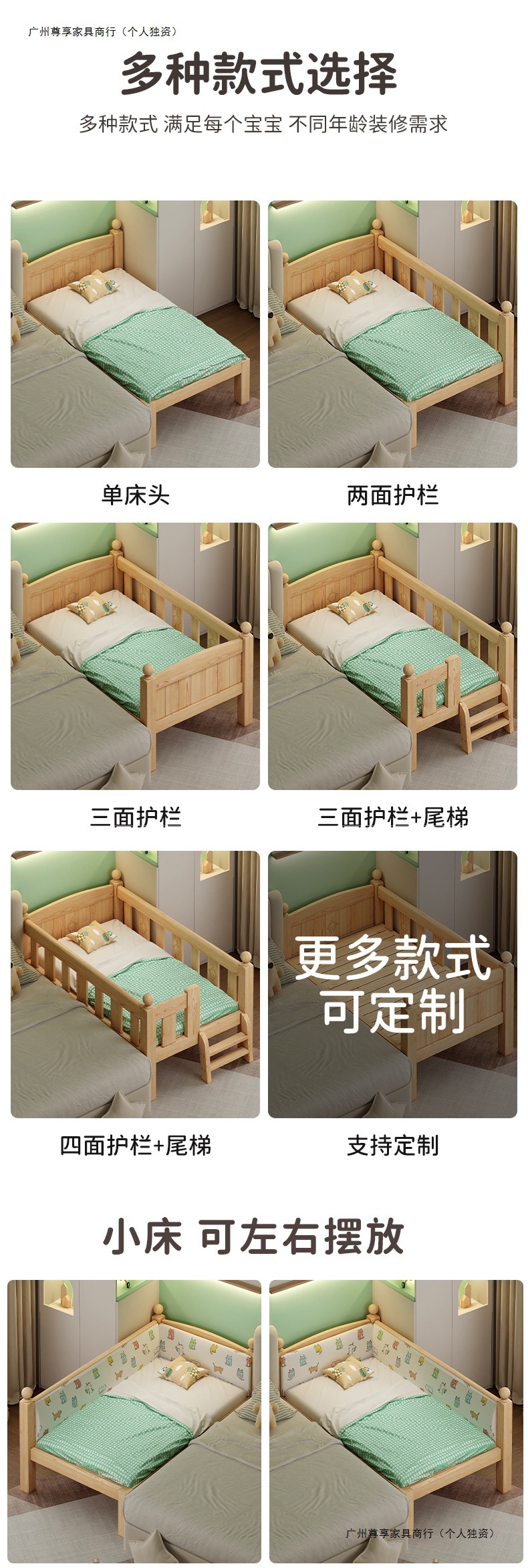 z% 어린이 접합 침대 확장 단단한 나무 침대 작은 침대 싱글 침대 울타리 침대 옆 유아용 침대 소년 소녀 접합 대형스토어 가기