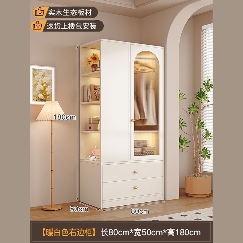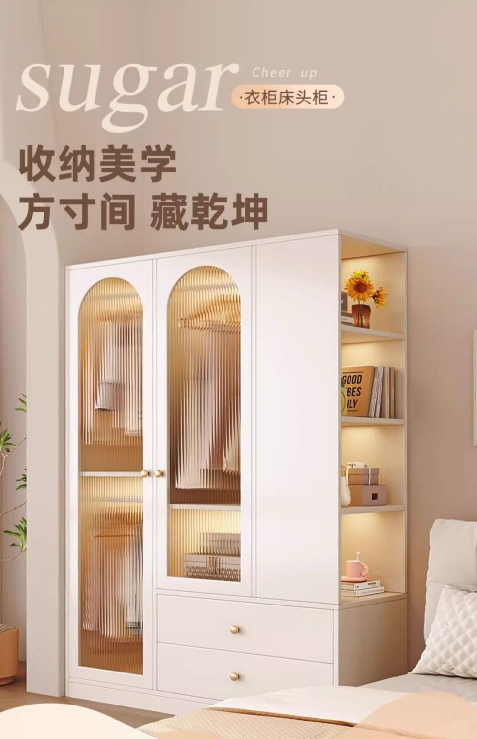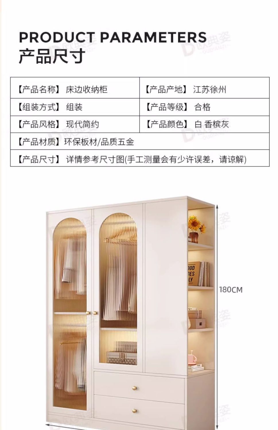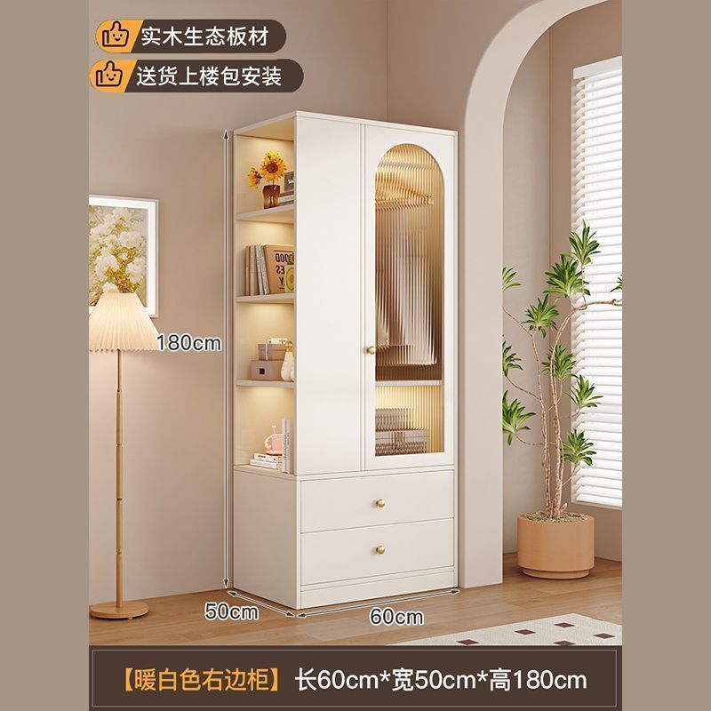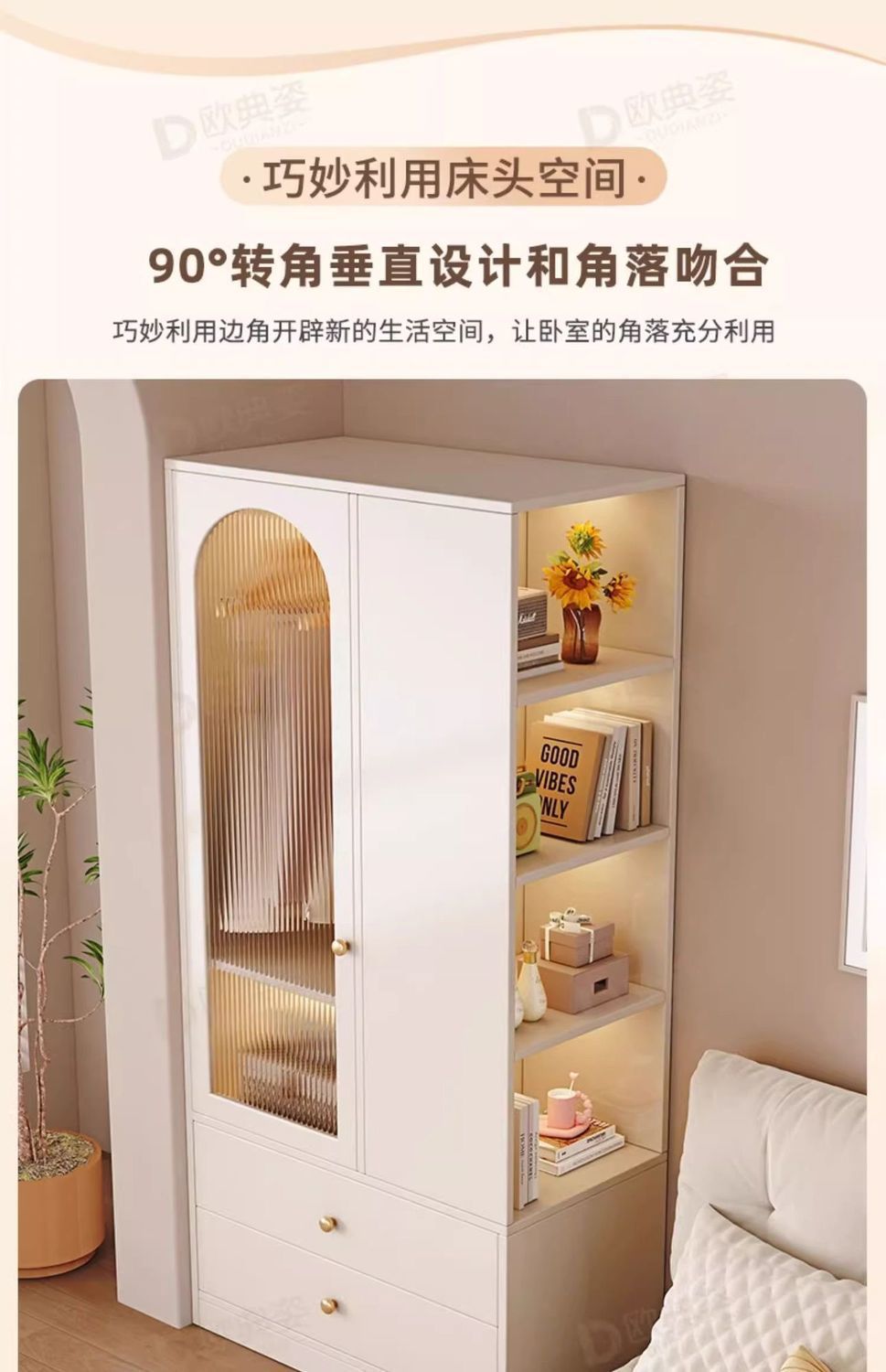 단단한 나무 옷장과 침대 옆 탁자 일체형 간단한 크림 스타일 작은 아파트 침실 홈 옷장 침대 옆 수납 캐비닛