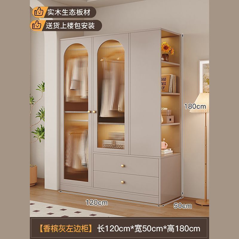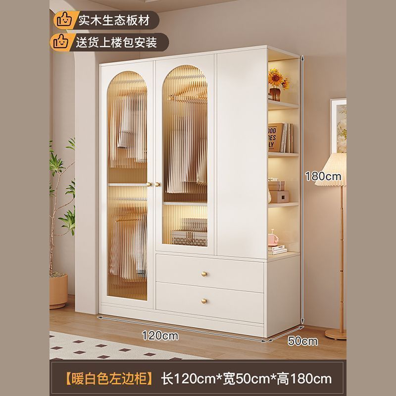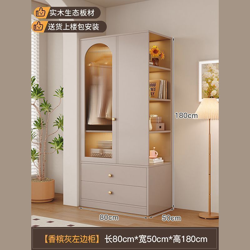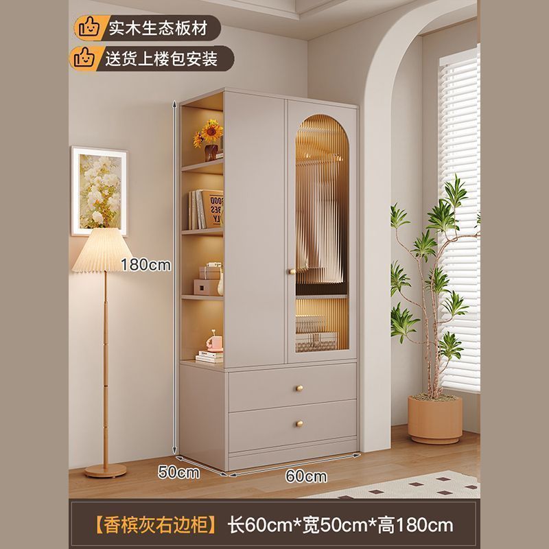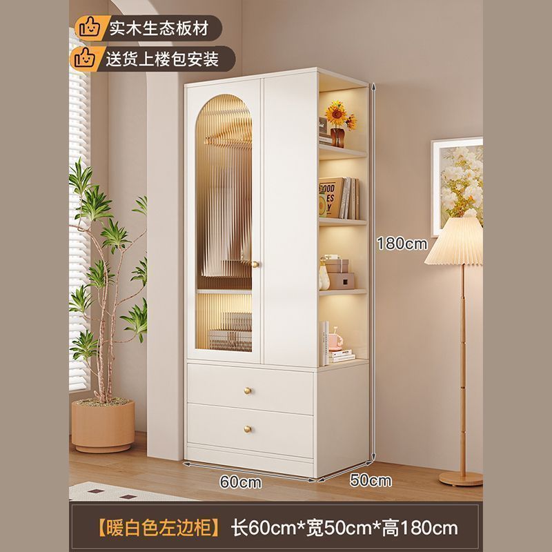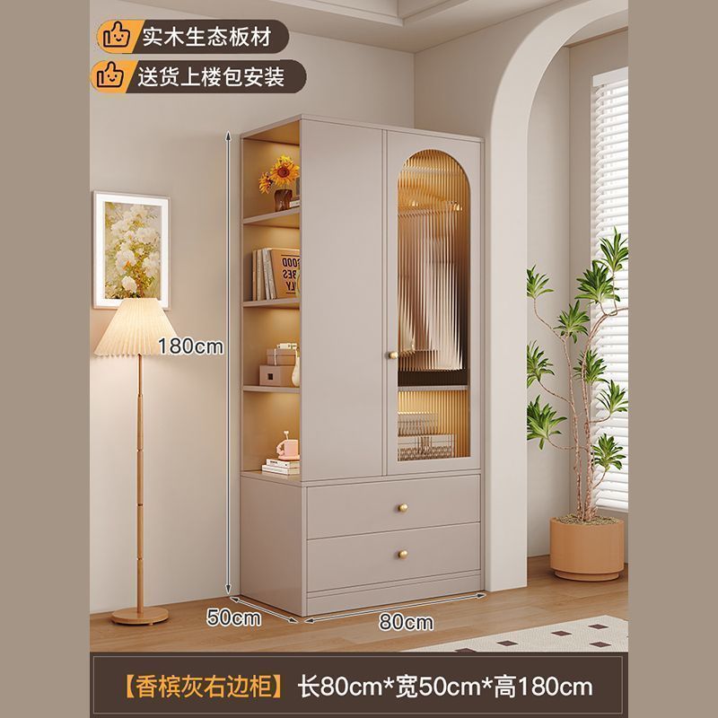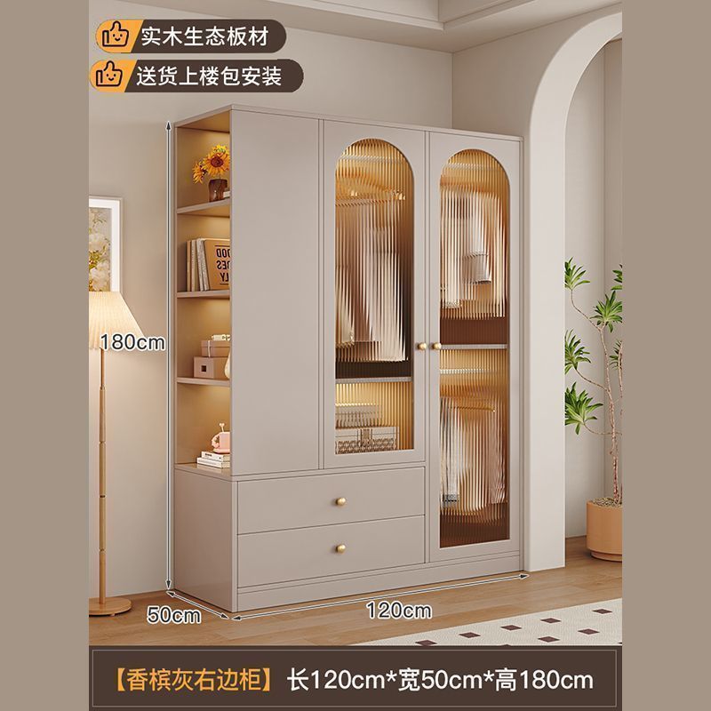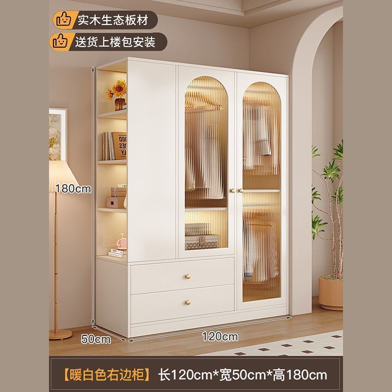 단단한 나무 옷장과 침대 옆 탁자 일체형 간단한 크림 스타일 작은 아파트 침실 홈 옷장 침대 옆 수납 캐비닛