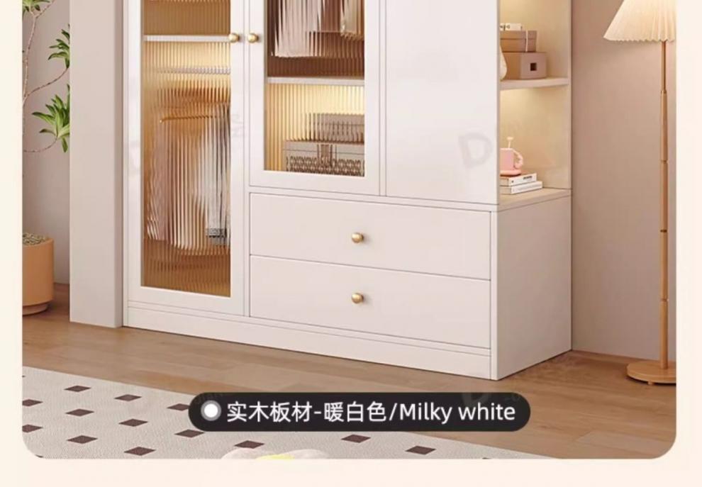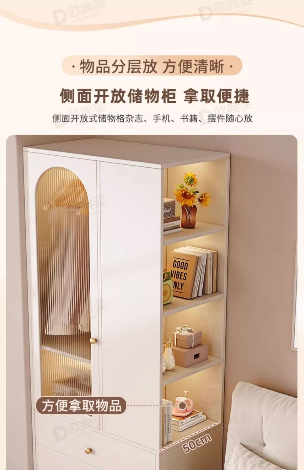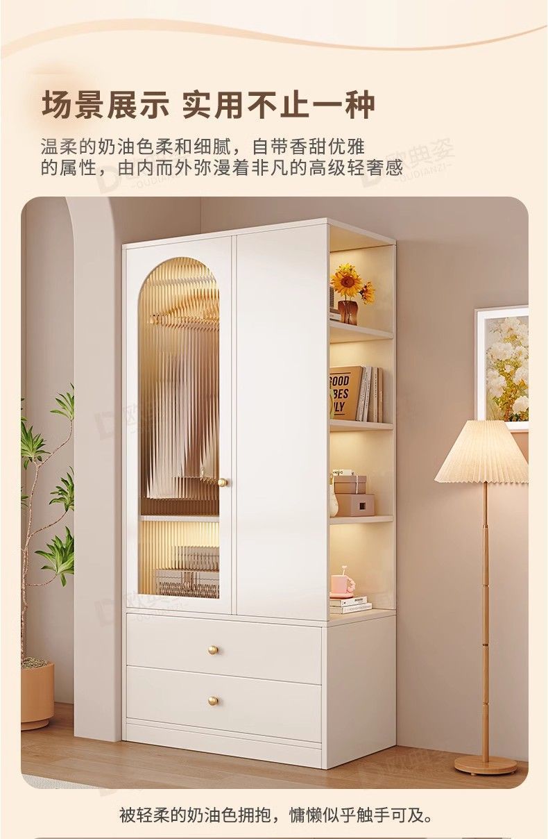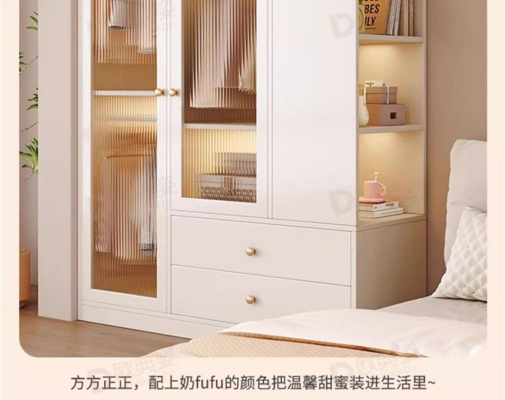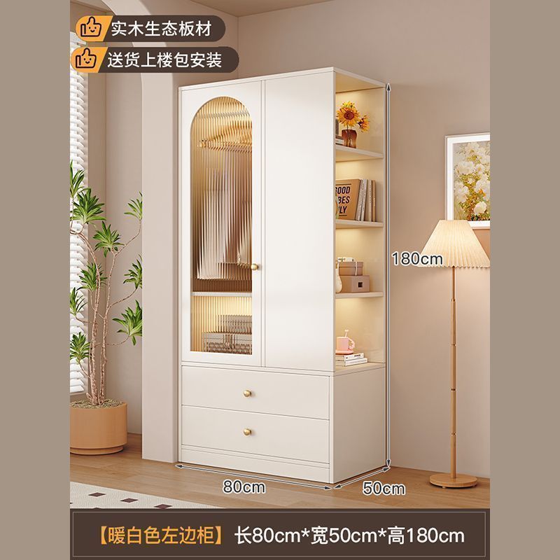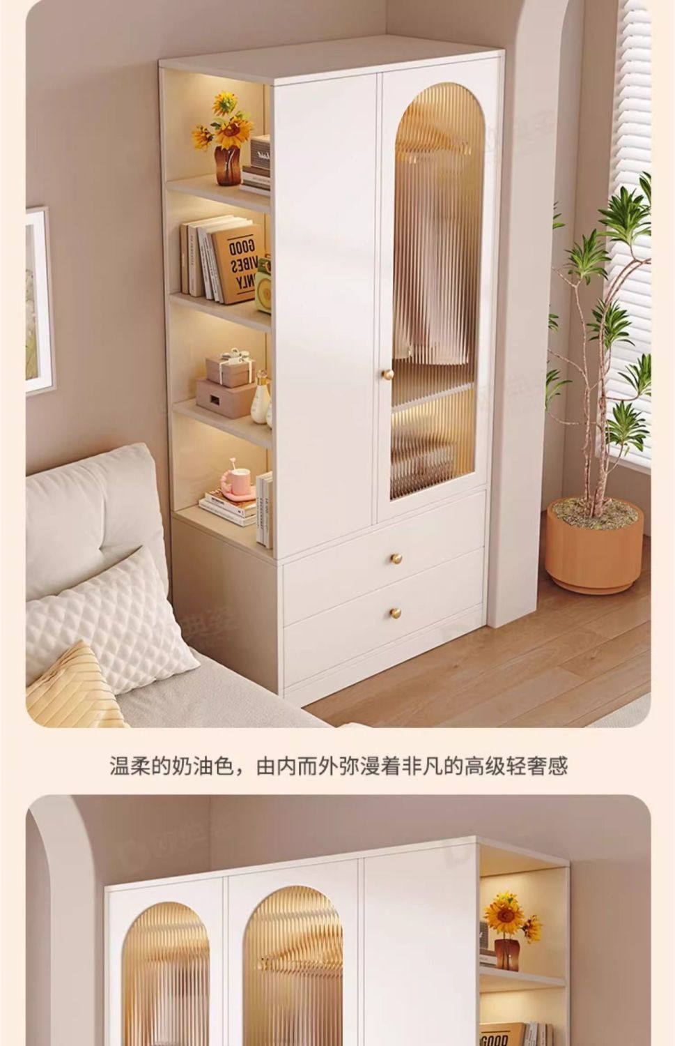 단단한 나무 옷장과 침대 옆 탁자 일체형 간단한 크림 스타일 작은 아파트 침실 홈 옷장 침대 옆 수납 캐비닛