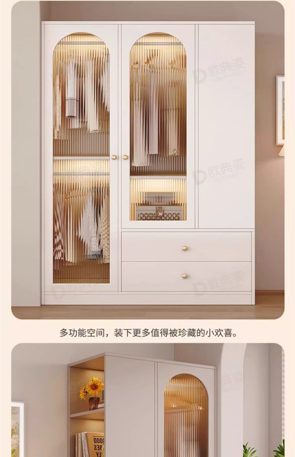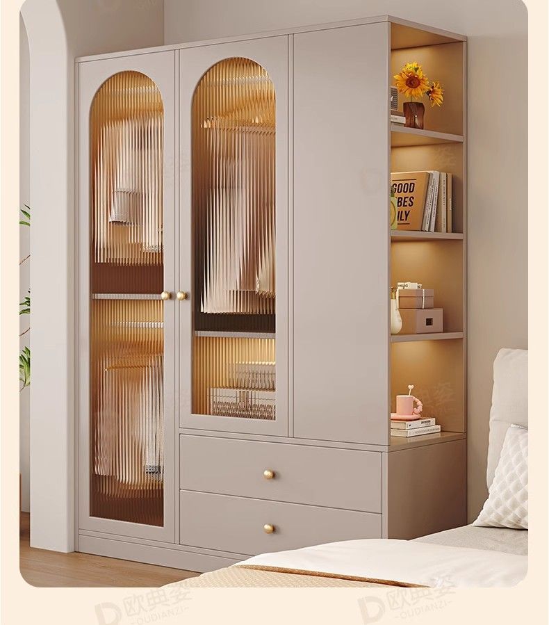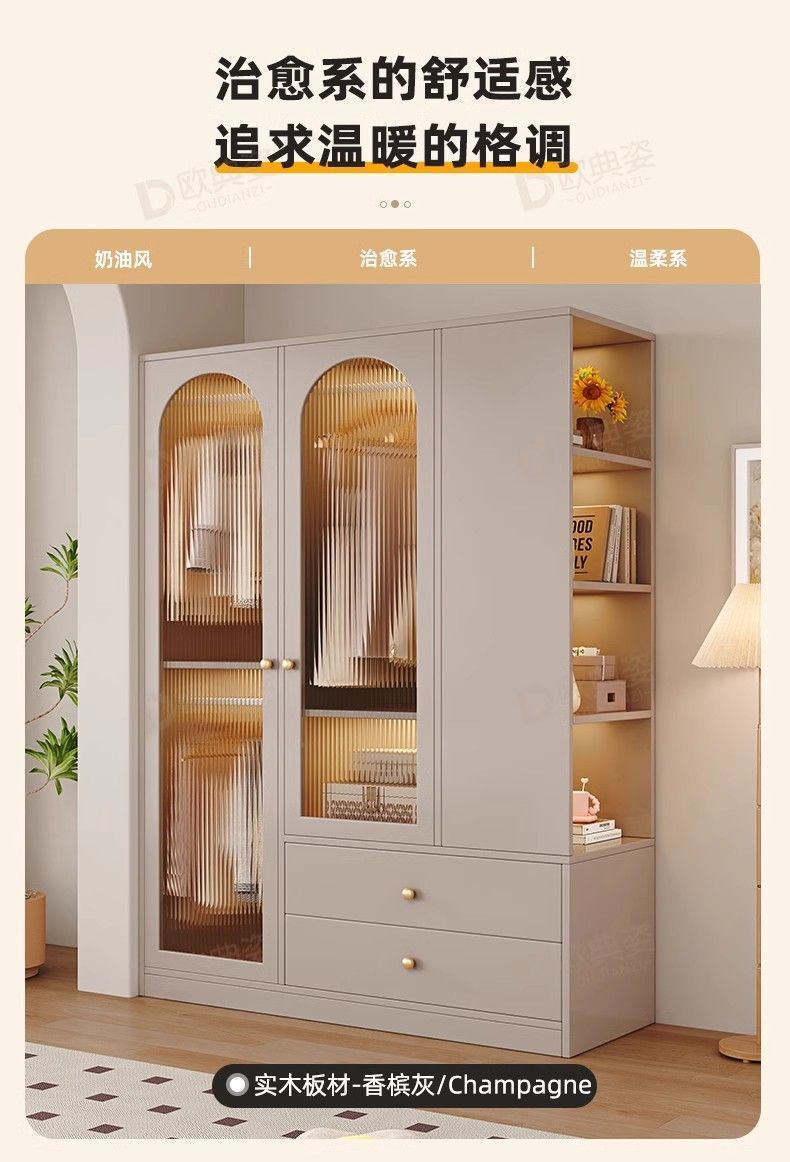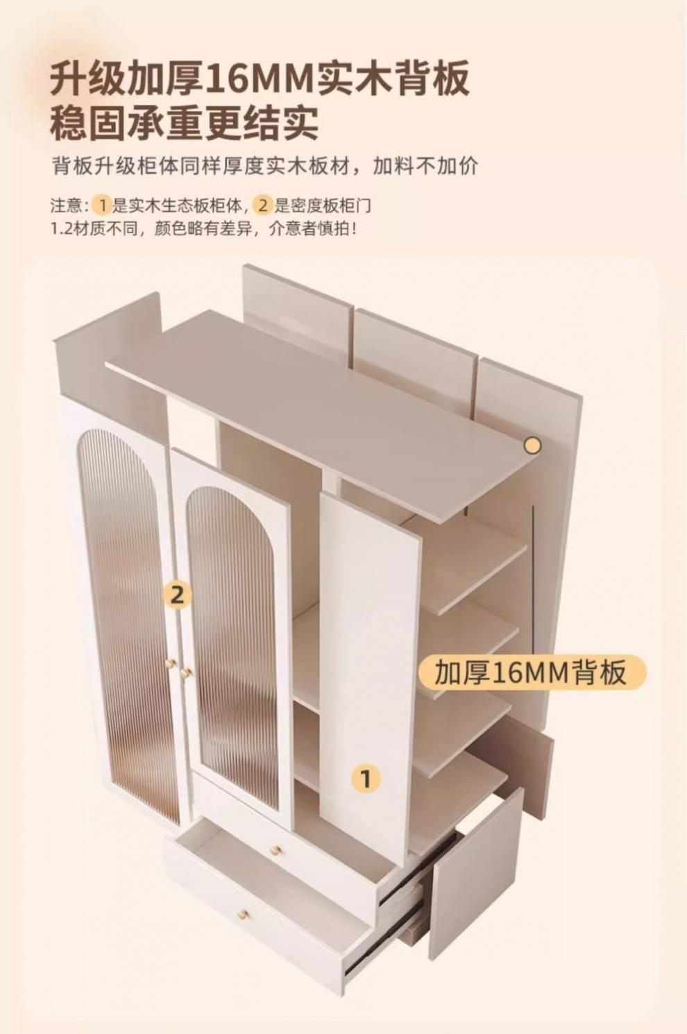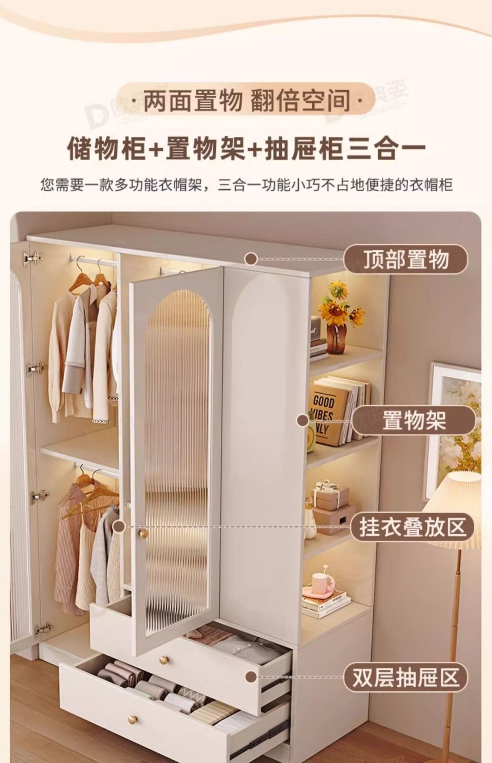 단단한 나무 옷장과 침대 옆 탁자 일체형 간단한 크림 스타일 작은 아파트 침실 홈 옷장 침대 옆 수납 캐비닛