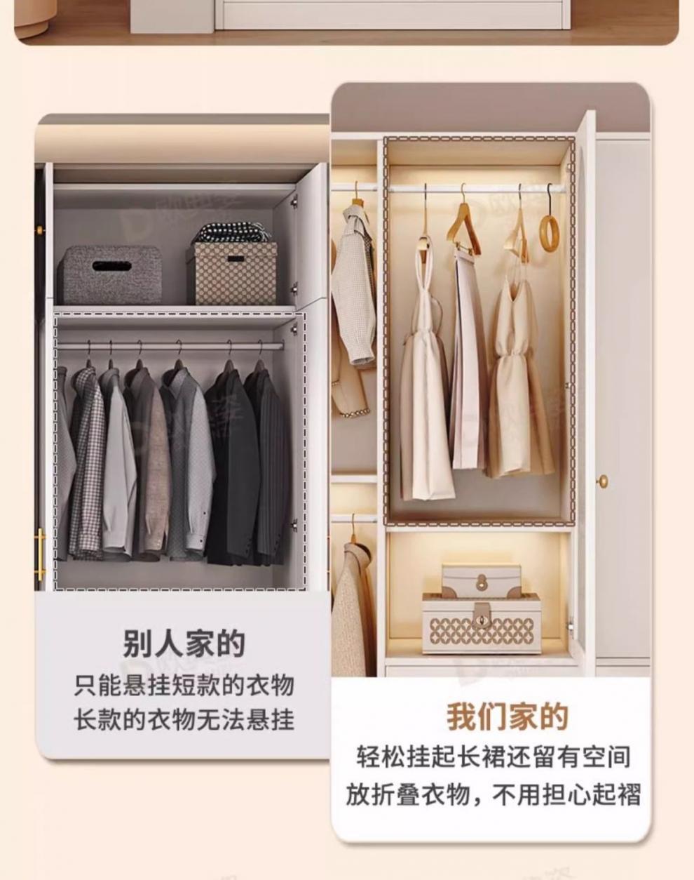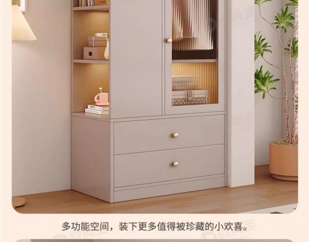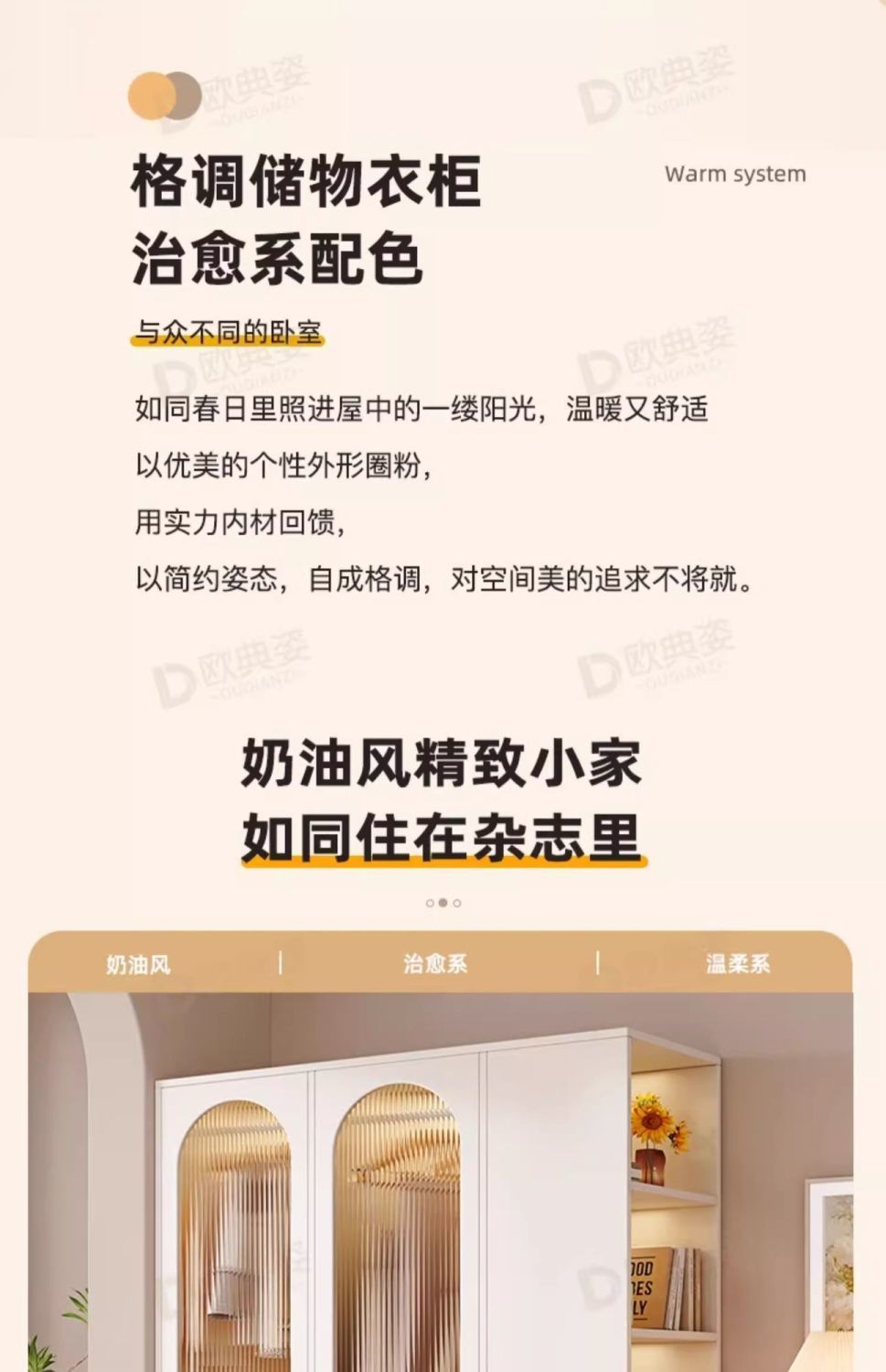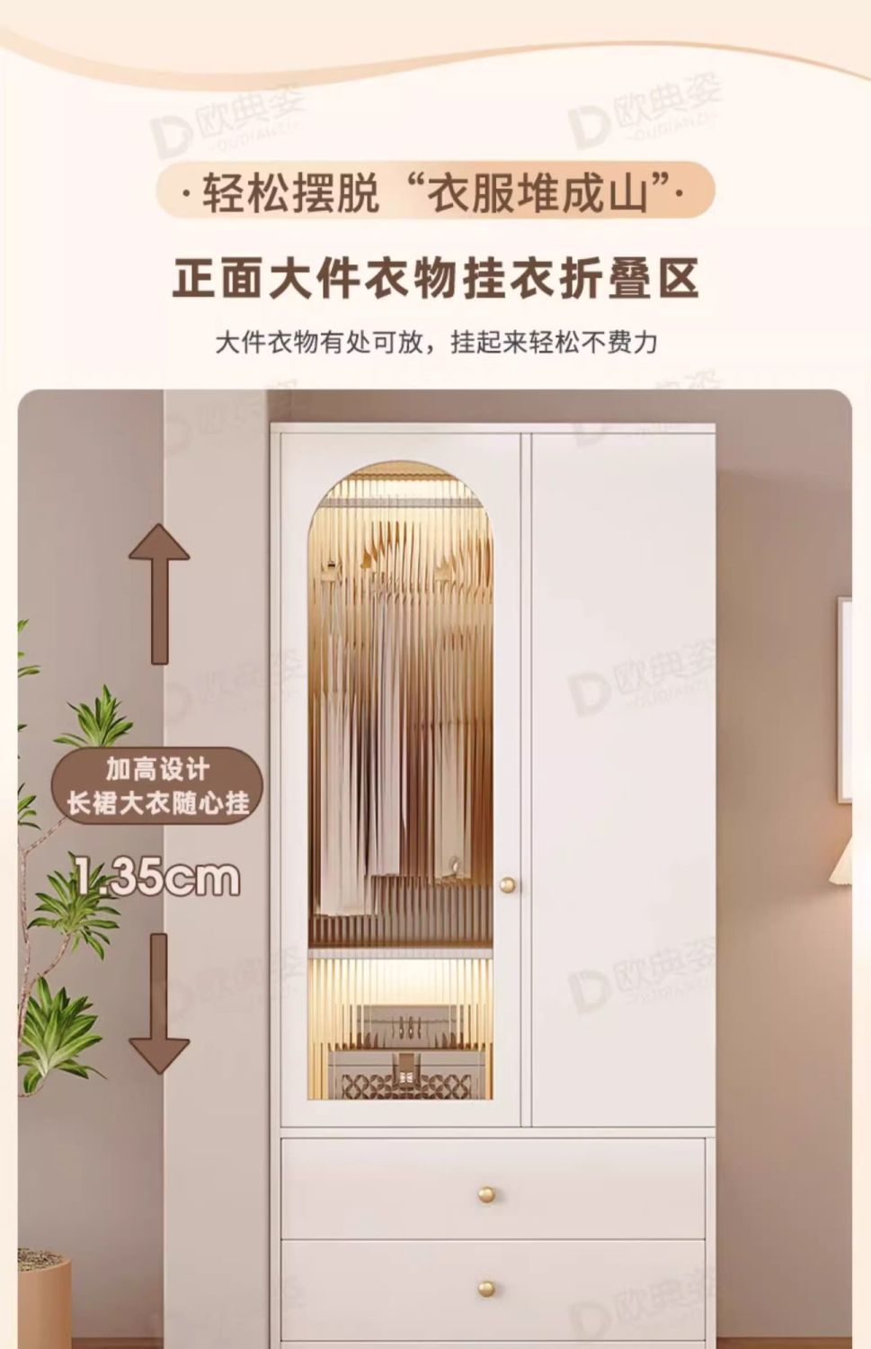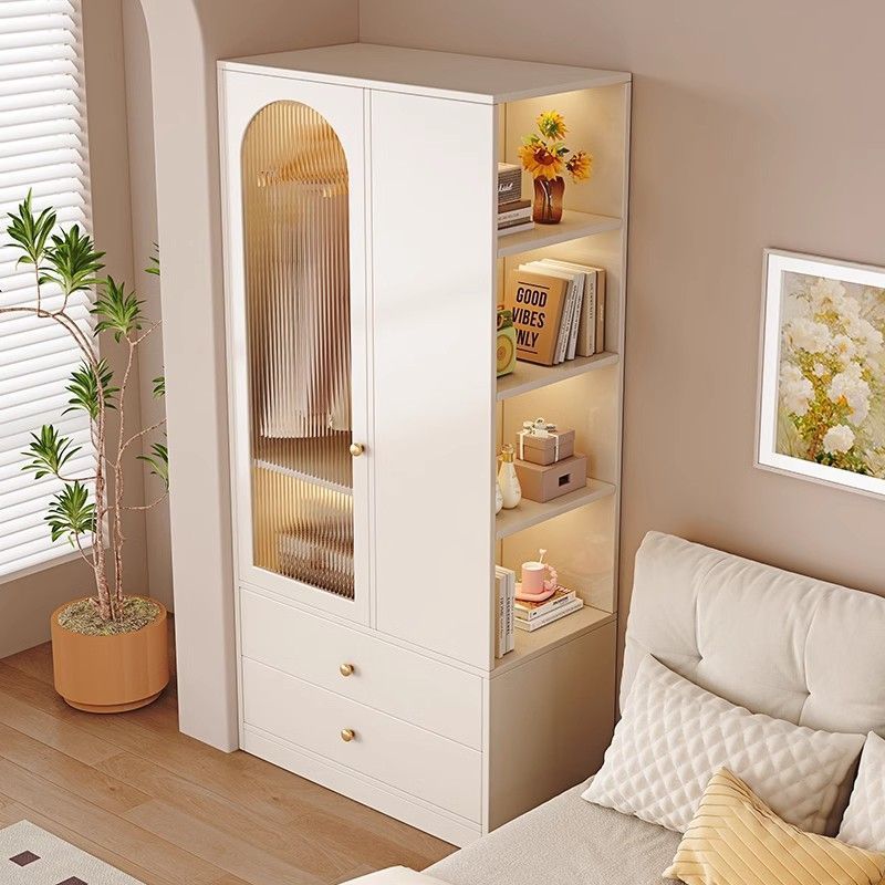 단단한 나무 옷장과 침대 옆 탁자 일체형 간단한 크림 스타일 작은 아파트 침실 홈 옷장 침대 옆 수납 캐비닛