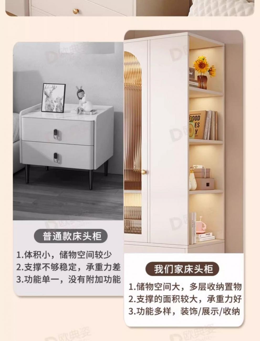 단단한 나무 옷장과 침대 옆 탁자 일체형 간단한 크림 스타일 작은 아파트 침실 홈 옷장 침대 옆 수납 캐비닛스토어 가기
