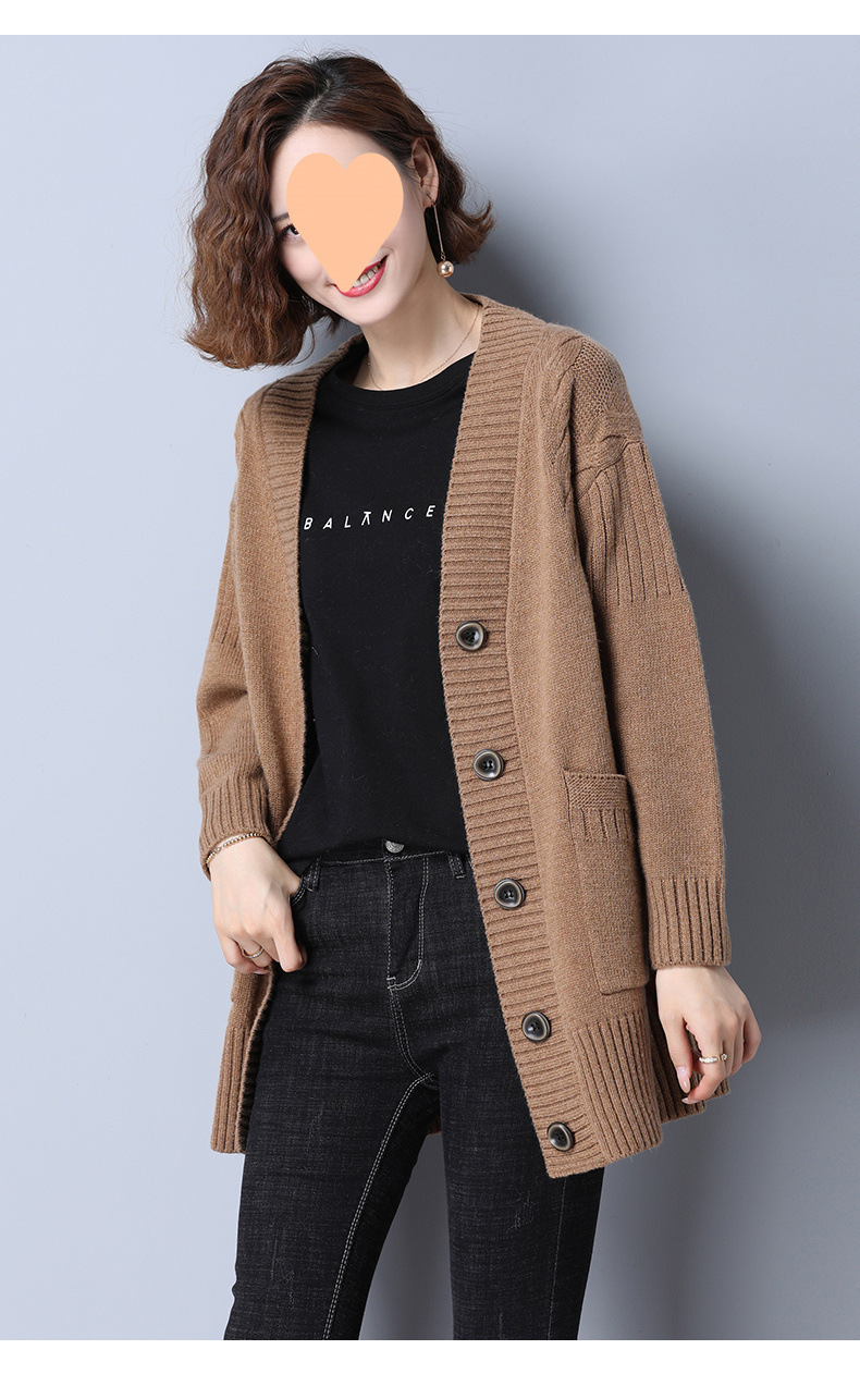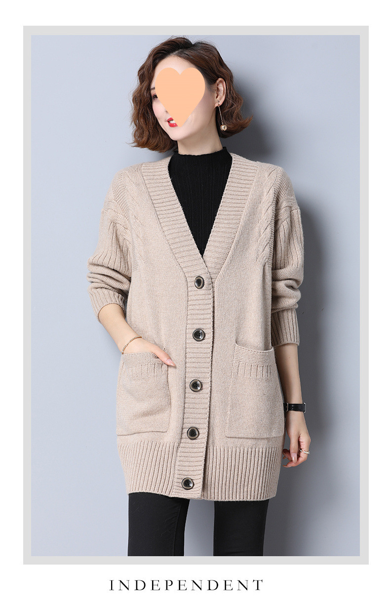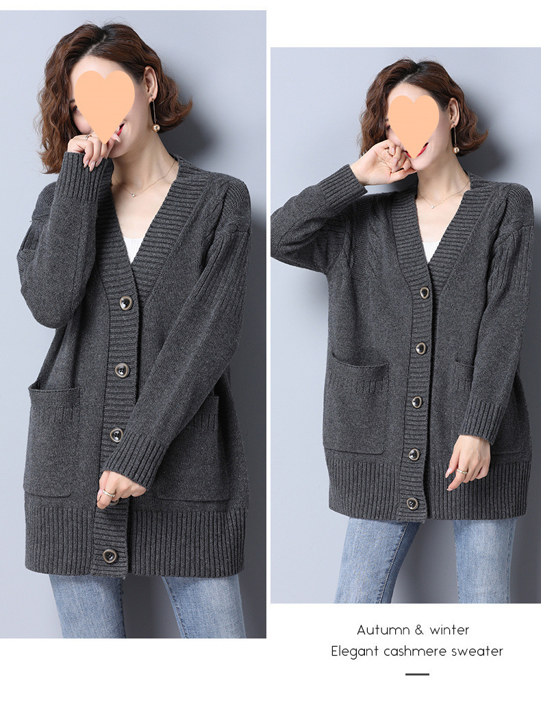 중간 길이 한국 스타일 니트 가디건 2025 여성 봄, 가을 느슨한 디자인 v 넥 스웨터 여성 가을, 겨울 코트