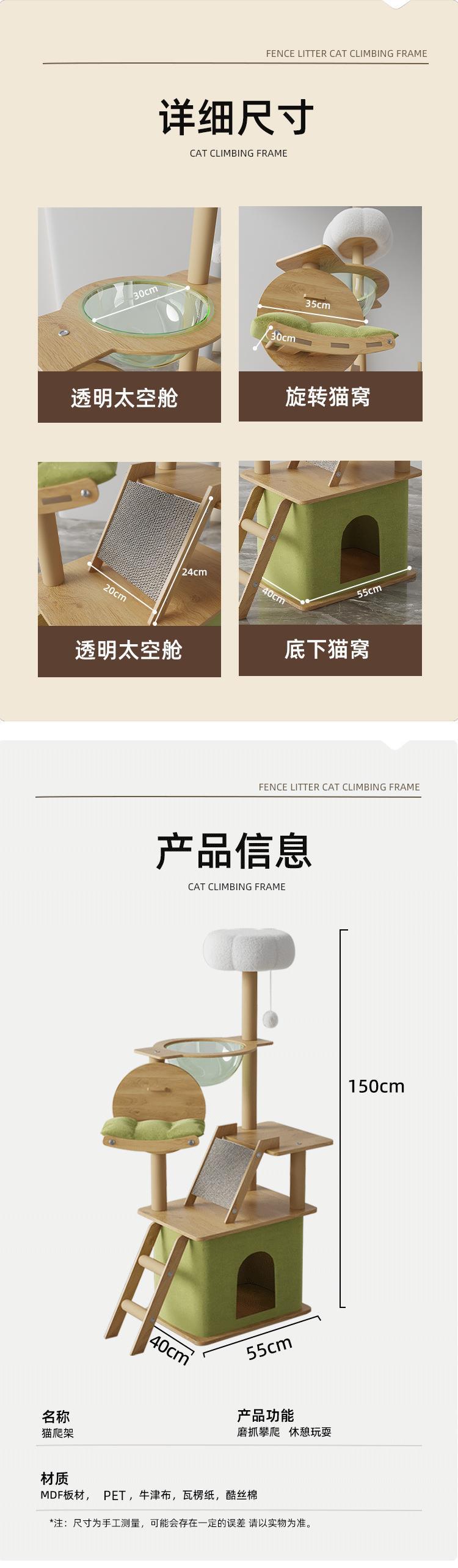 고양이 클라이밍 프레임, 캣타워, 일체형 대형 목재 캣프레임, 하우스 스크래치 컬럼, 부동산 점유 공간 없음, 스페이스 캡슐 캣프레임 도매