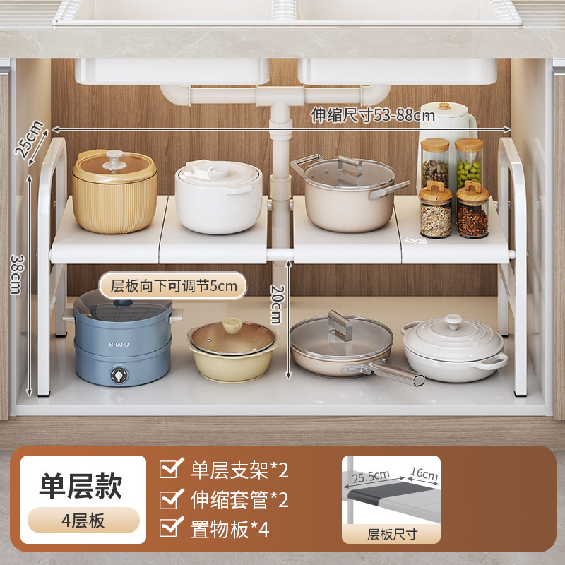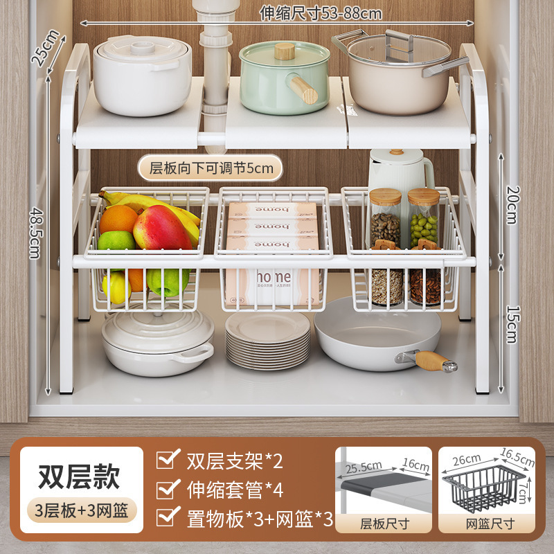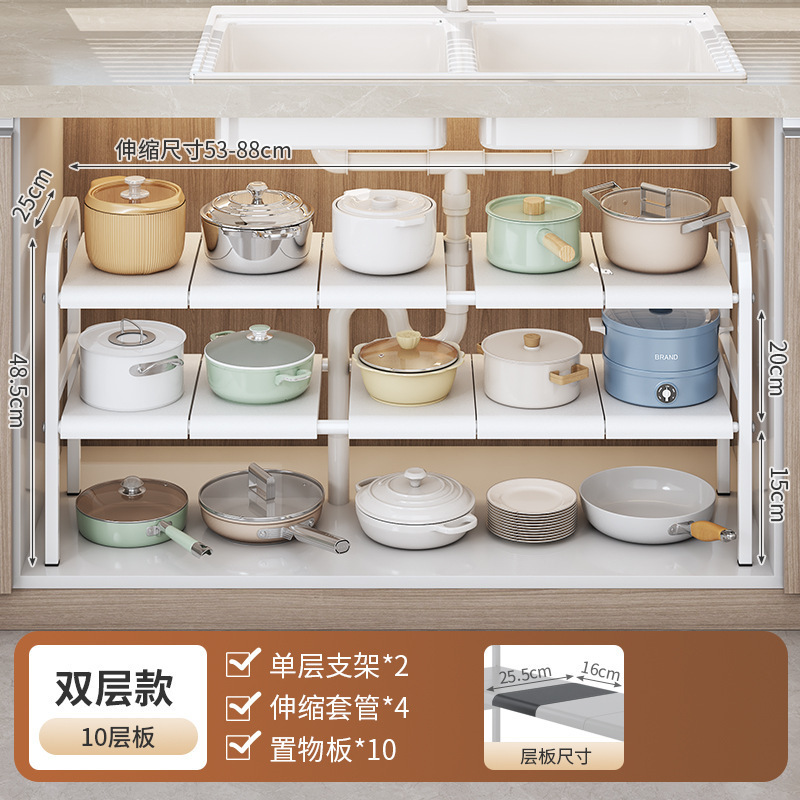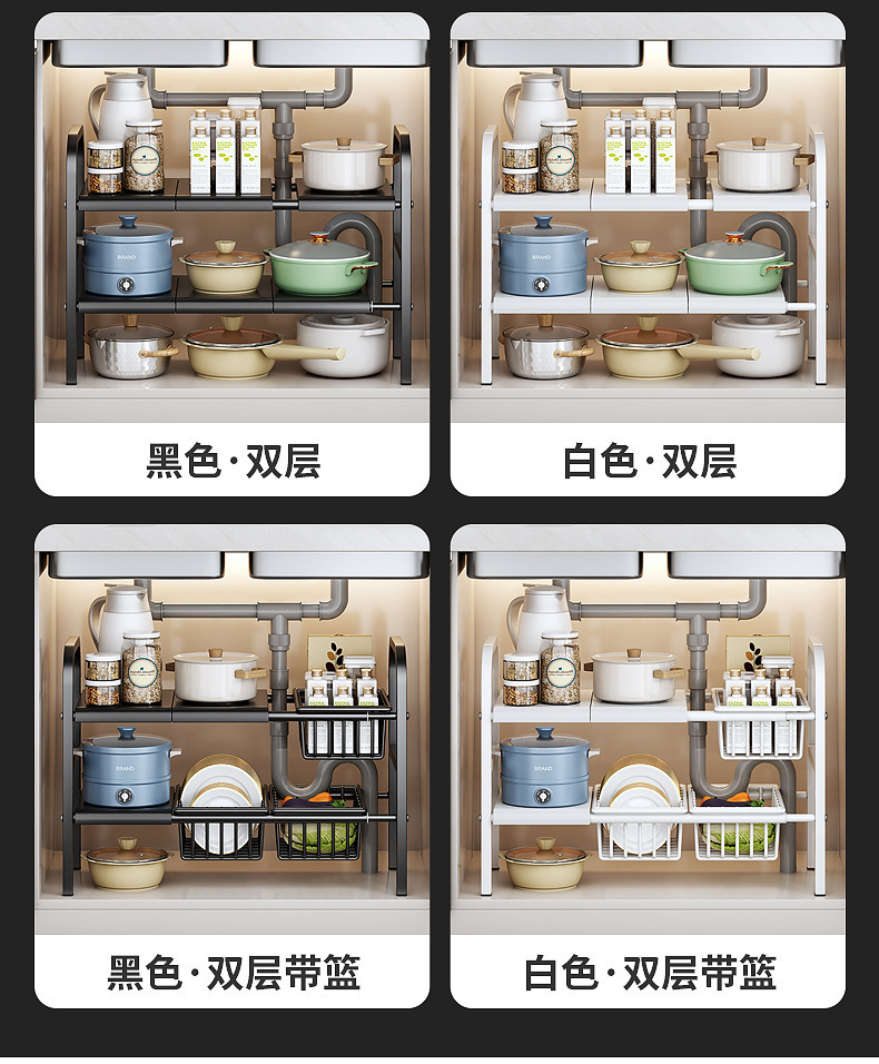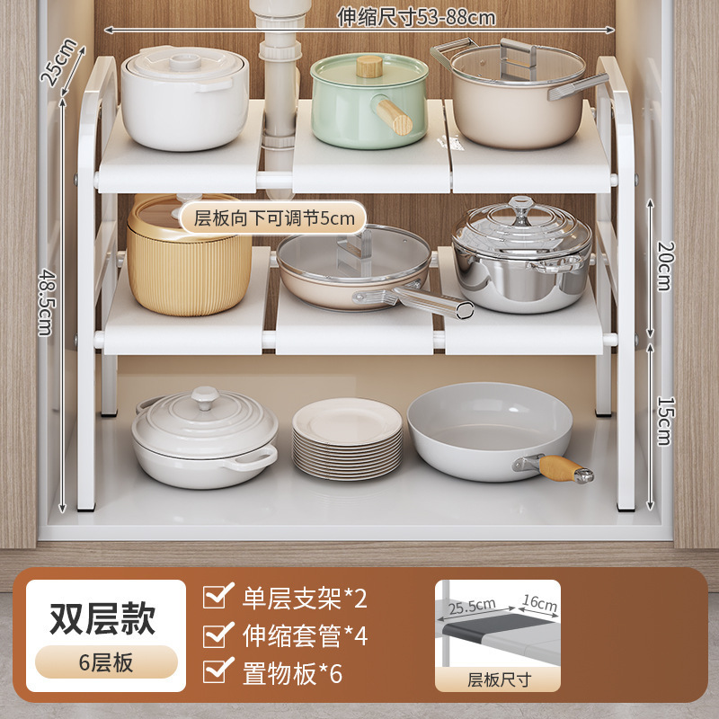 싱크대 아래 주방 수납 선반, 캐비닛 내부 계층형 선반, 가정용 다기능 접이식 용품 수납 선반