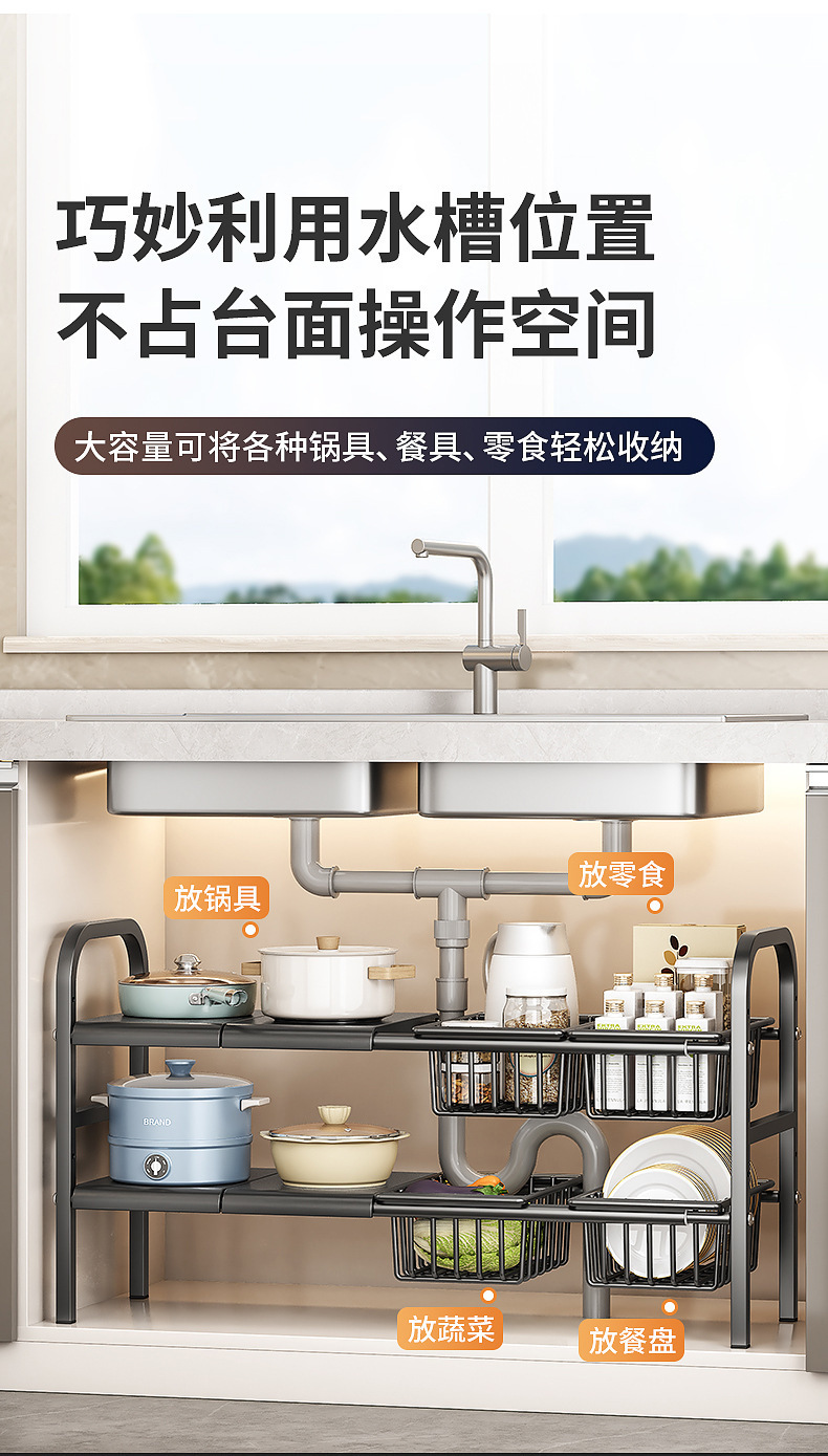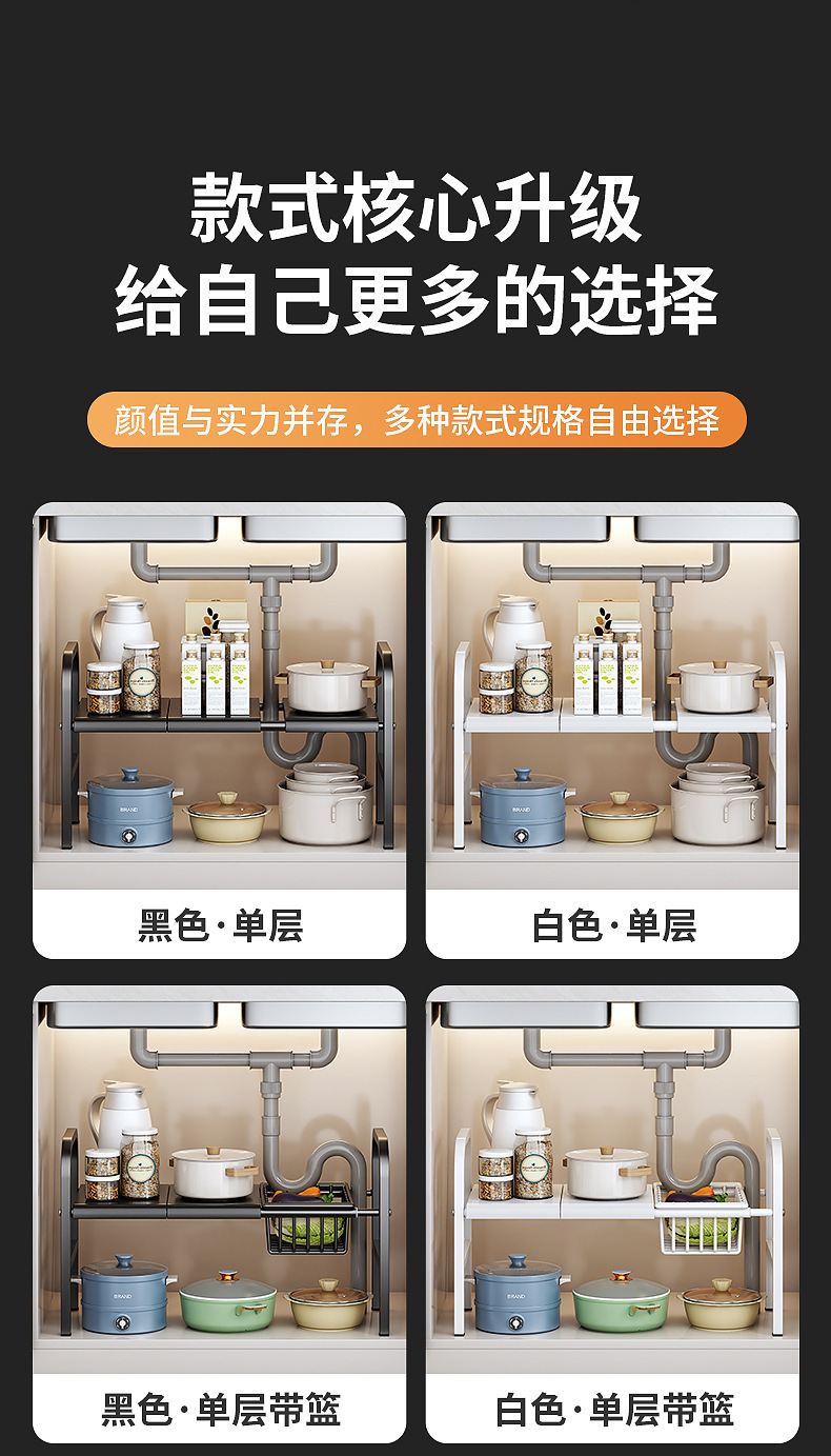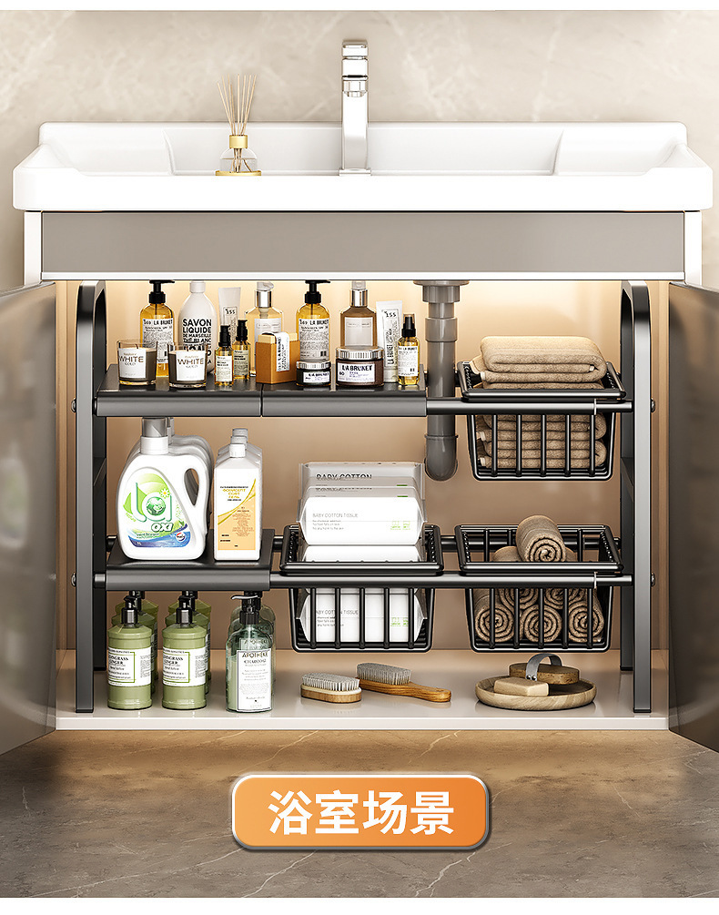 싱크대 아래 주방 수납 선반, 캐비닛 내부 계층형 선반, 가정용 다기능 접이식 용품 수납 선반