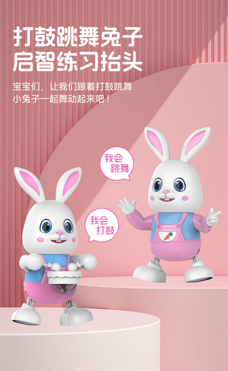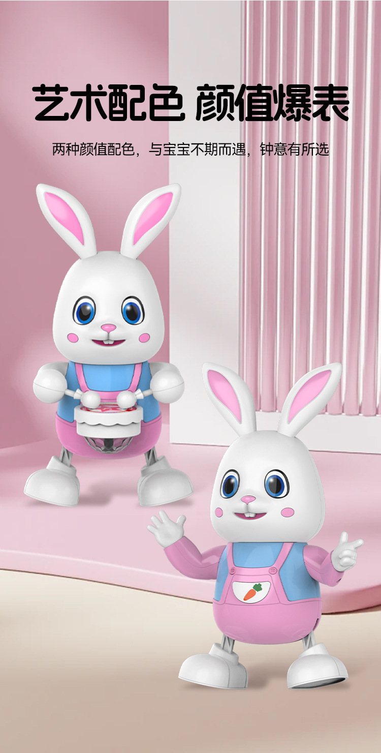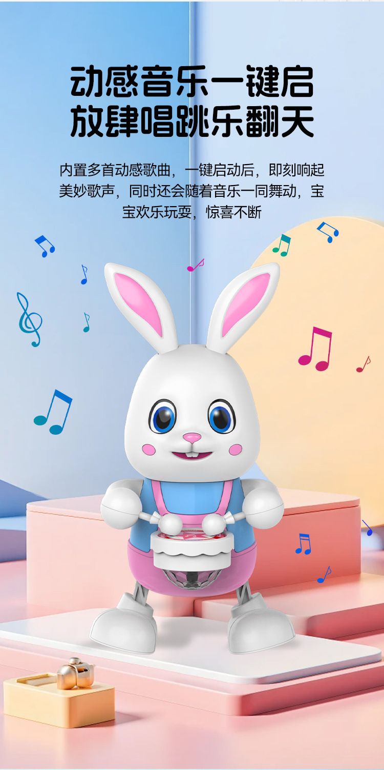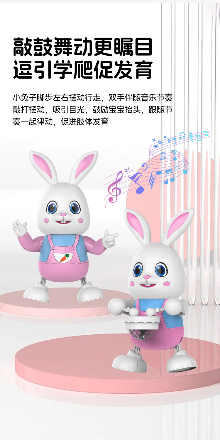 국경 간 전기 춤 로봇 팬더 장난감 아기 아기 걷기 조기 교육 장난감 드럼 스윙 토끼