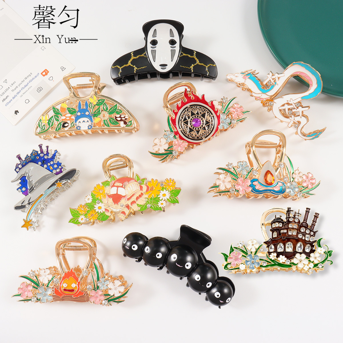 국경 간 만화 머리핀, 고급 그립 클립, 애니메이션 주변 헤어 액세서리, 토토로 작은 불꽃, 흰색 용 머리 발톱, 상어 클립스토어 가기