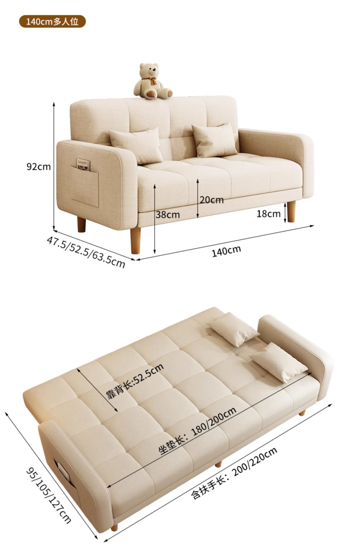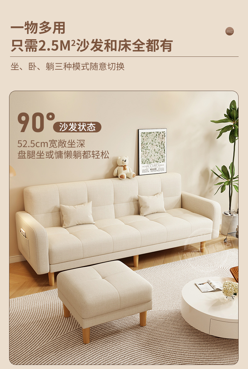 소형 거실용 소파 2025 새로운 스타일의 심플하고 모던한 3인용 임대실 패브릭 접이식 소파 베드 rω