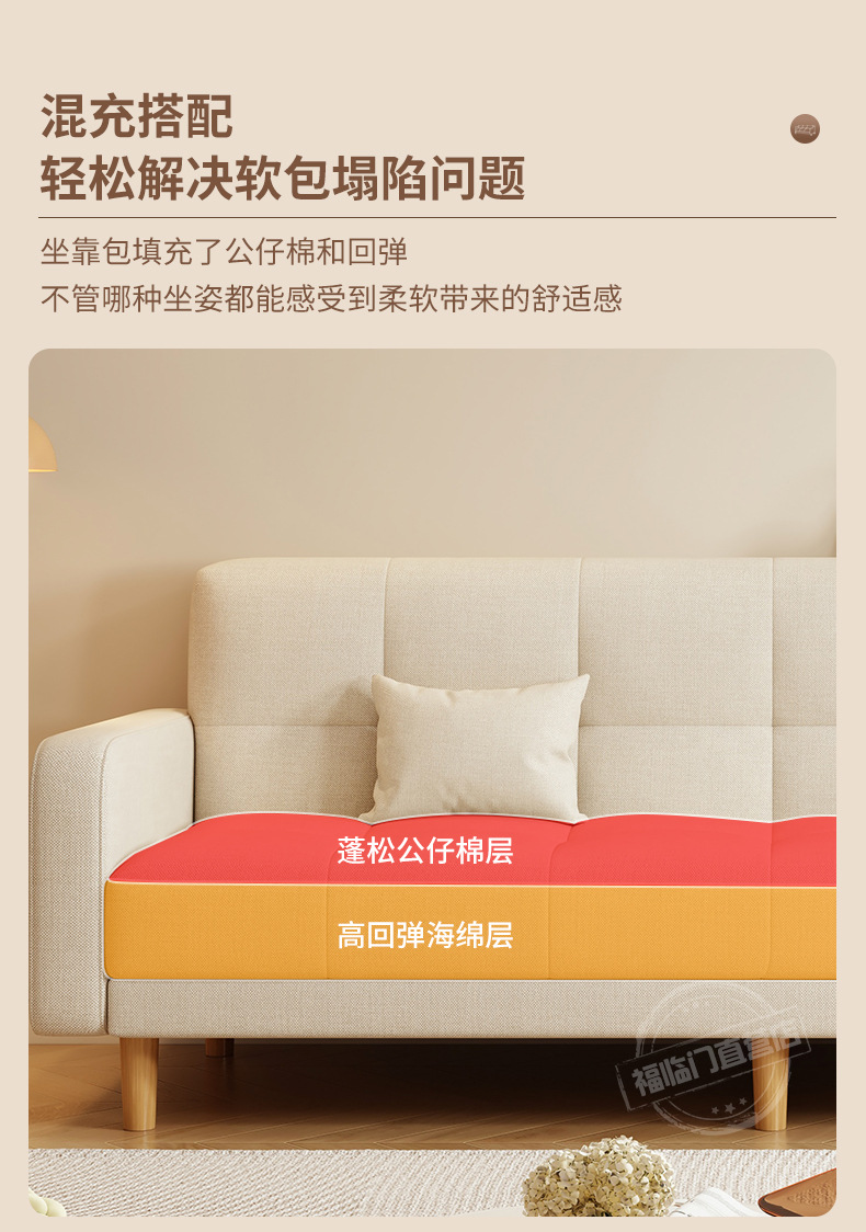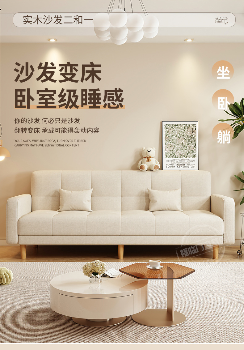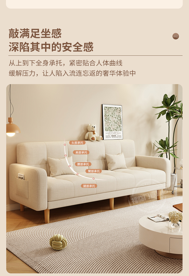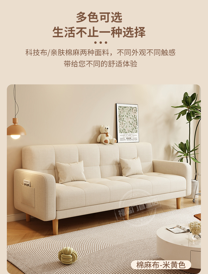 소형 거실용 소파 2025 새로운 스타일의 심플하고 모던한 3인용 임대실 패브릭 접이식 소파 베드 rω스토어 가기
