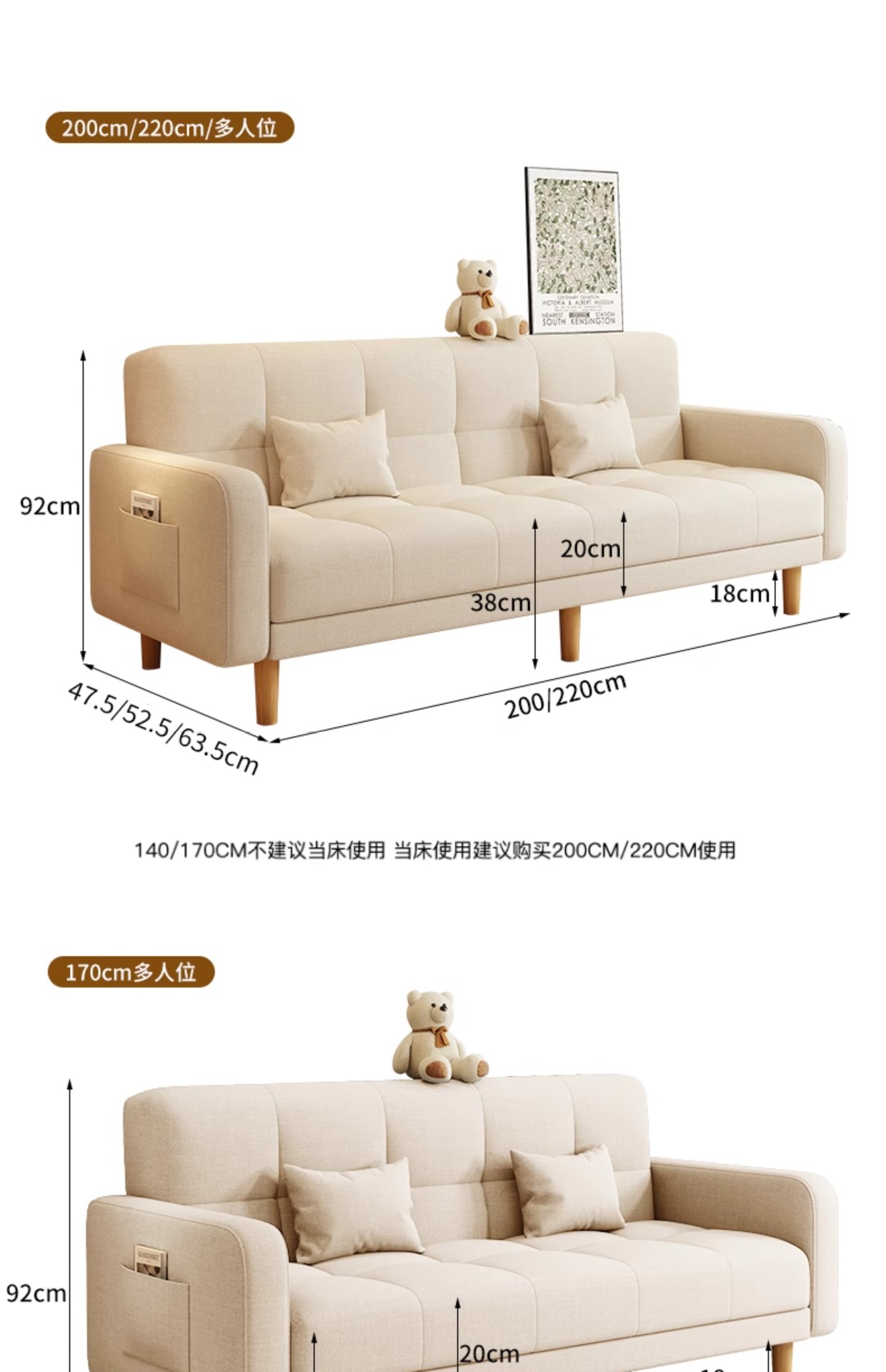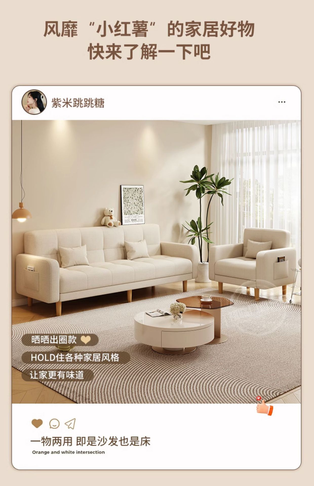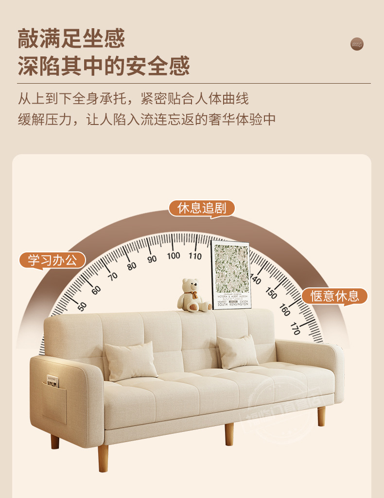 소형 거실용 소파 2025 새로운 스타일의 심플하고 모던한 3인용 임대실 패브릭 접이식 소파 베드 rω스토어 가기